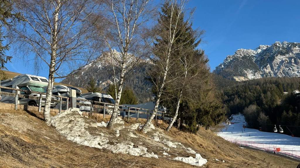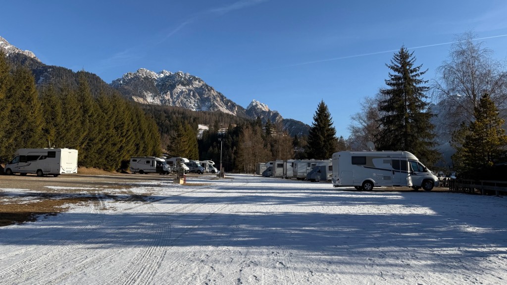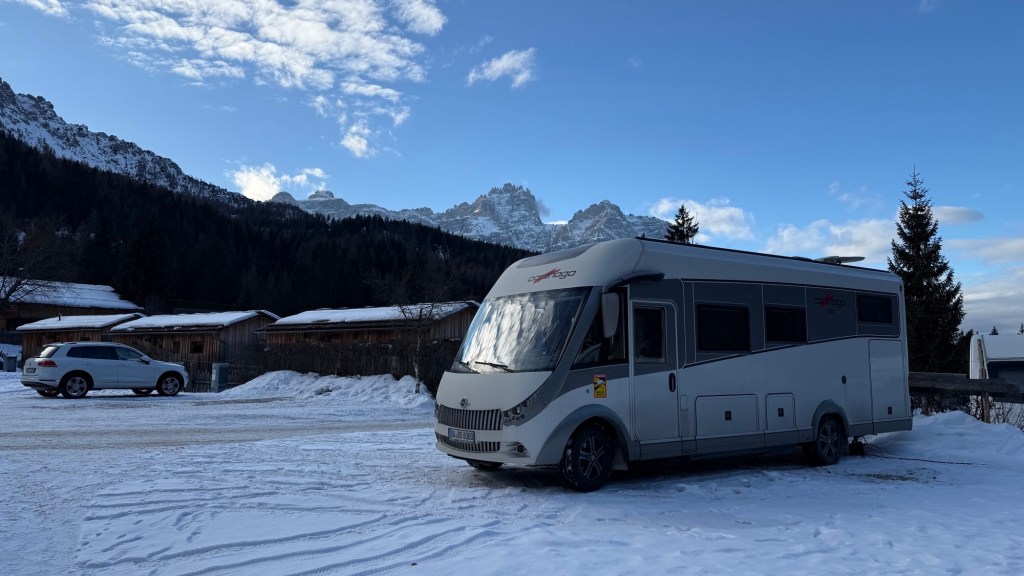 14.1.2026 Auf dem Weg nach Südtirol machen wir ein Mal mehr Halt an der Therme Erding. Es ist nicht viel los, und wir genießen das schöne Bad, die Saunen und die Poolbar.15.1.2026 Über die Felbertauern fahren wir die 300 km von Erding nach Südtirol ohne Probleme. Auf dem Caravanpark Sexten wartet auf uns ein großzügig angelegter Stellplatz in sehr schöner Winterlandschaft.16.1.2026 In sonniger Winterlandschaft laufen wir insgesamt gut 14 km auf einer wunderbaren Runde, die uns im Wesentlichen von Outdoor Active vorgeschlagen wurde. Wir kehren mittags in der Hütte Alpe Nemes ein und erreichen gut geschafft erst gegen 16:30 wieder unser Wohnmobil. Am Abend werden wir noch mit einem wunderbaren Menü im Restaurant hier am Platz belohnt.17.1.2026 Am Morgen können wir hier auf dem Platz eine unserer deutschen Gasflaschen tauschen, wobei sie uns auch noch voll komfortabel ans Wohnmobil gebracht wird. Noch etwas erschöpft vom gestrigen Wandern starten wir erst gegen Mittag unseren Ausflug mit dem Bus nach Toblach. Etwa eine Stunde später erkunden wir den Ort und seine schöne barocke Kirche. Nach einem genussvollen Besuch der Pizzeria Hans sehen wir uns noch eine Käserei an. Es gibt dort ein kleines Käsemuseum und man könnte – wenn nicht Wochenende wäre – bei der Käseproduktion zusehen. Nach einem kleinen Käseeinkauf machen wir uns auf den Rückweg.18.1.2026 Wir starten den Tag mit einem sehr guten Frühstück im hiesigen Restaurant und bleiben den ganzen Tag auf dem Platz. Am Nachmittag absolvieren wir einen weiteren Teil unseres gebuchten „Genusspakets“ und besuchen den Schwimmbad- und Saunakomplex des Platzes. Es gefällt uns sehr gut, und es wird schon klar: Hier kommen wir wieder her!19.1.2026 Wir checken beim Camperpark Sexten aus und fahren eine gute Stunde durch Südtirol. Unser Ziel ist Sankt Vigil am Kronplatz, und wir steuern dort den Stellplatz „Ritterkeller“ an, auf dem wir schon einige Male gewesen sind. Wir bekommen auch wieder einen Platz in der ersten Reihe mit Blick über den Ort und auf die Skipiste, wo morgen der FIS World Cup der Damen im Riesenslalom gefahren wird. Beim gemütlichen Mittagessen im Wohnmobil genießen wir die Aussicht, anschließend machen wir noch eine kleine Erkundungstour im Ort und kaufen ein paar Genussmittel ein (Speck, Kren, Lagrein, …). Zum Abschluss des Tages gibt es leckere Pizza im hiesigen Restaurant „Ritterkeller“.20.1.2026 Vormittags blicken wir beim Frühstücken vom Wohnmobil aus aus das Skirennen am gegenüber liegenden Berg und sehen uns dazu die Live-Ergebnisse auf dem Tablet an. Anschließend laufen wir etwa 10 km durch Sankt Vigil und dann in die schöne Winterlandschaft hinein. Auf dem Rückweg mischen wir uns noch in einem Cafe unter das Weltcup-Publikum, anschließend werfen wir einen Blick in die hübsche Barockkirche von St. Vigil. Es ist am Nachmittag noch sehr trubelig im Ort, am Abend ist dann aber alles vorbei.21.1.2026 Bei Kaiserwetter wagt sich Manfred heute (ganz allein) auf die Skipiste. Für 65 € gibt es einen Tagespass für Senioren. Miara, Marchner, Olang 1+2, Herrnegg, Silvesterabfahrt: das ganze Skigebiet ist wohl vertraut. Die Pisten sind in sehr gutem Zustand, vor allem auch nicht zu voll. Ein kleiner Imbiss auf der Herzlalm, noch ein paar Abfahrten, und dann ist der schöne Skitag mit etwas wackligen Beinen auch schon vorbei. Zur Ernüchterung in dieser schönen Welt hören wir uns dann noch live die Rede von Herrn Trump in Davos an … unfassbar!22.1.2025 Wir treten die Heimreise an und wählen dafür die Route über den Brenner. Trotz Großbaustelle kommen wir dort gut durch und fahren dann ein Mal mehr zu unserer Lieblingstherme in Erding.23.1.2026 Es war sehr kalt in der Nacht, und so fahren wir am Morgen erst einmal durch hübsch vereiste Winterlandschaft. Über die A8 steuern wir bei viel Verkehr die WoMo-Waschanlage in Mannheim-Friedrichsfeld an … unser Carthago hat eine Reinigung ziemlich nötig! Anschließend geht es blitzblank nach Hause, wo wir den Rest des Tages damit beschäftigt sind, auszupacken und das Wohnmobil winterfest zu machen. Wir hatten auf dieser Reise nach Südtirol wieder eine sehr schöne Zeit!