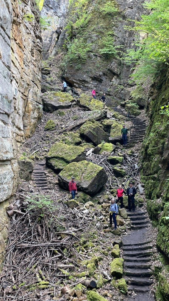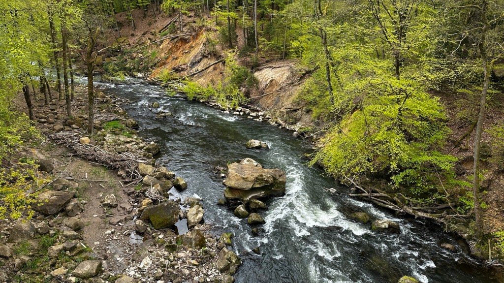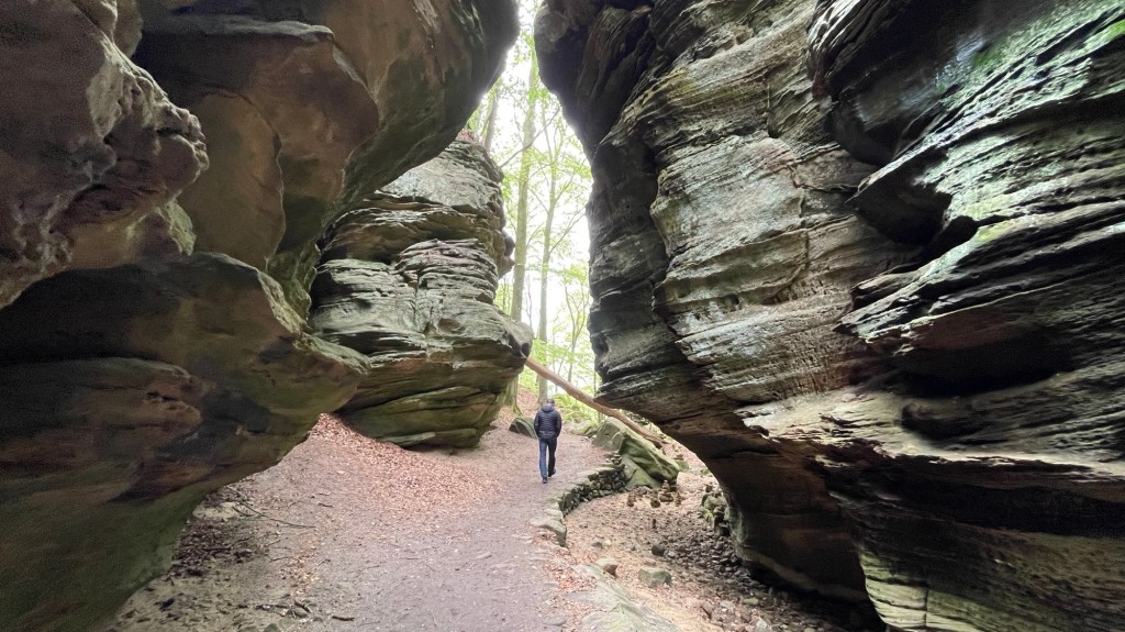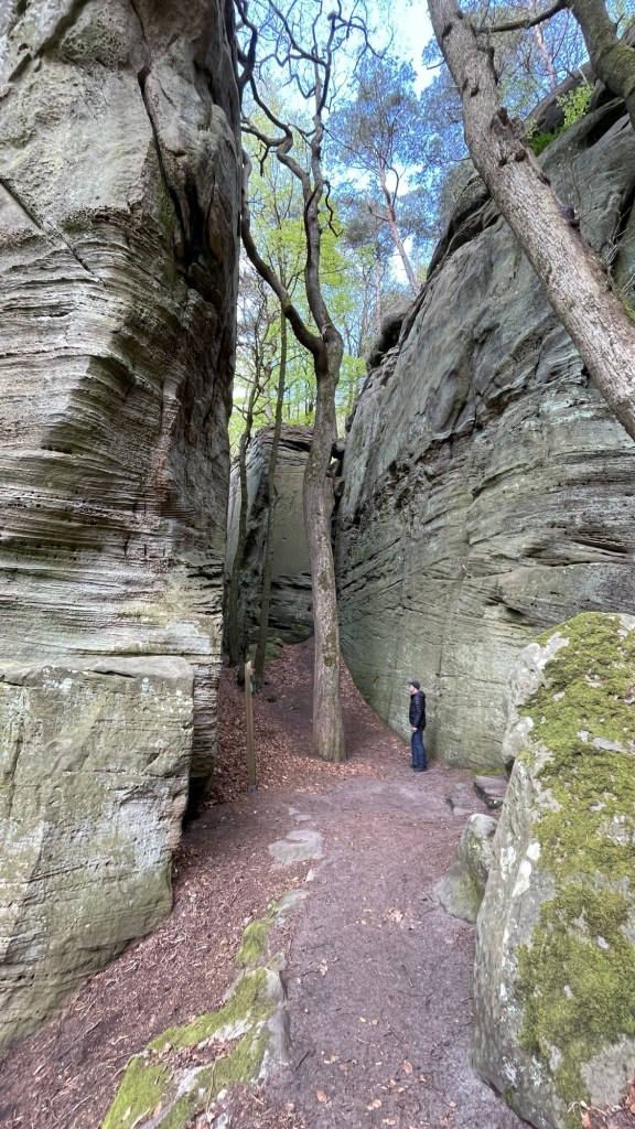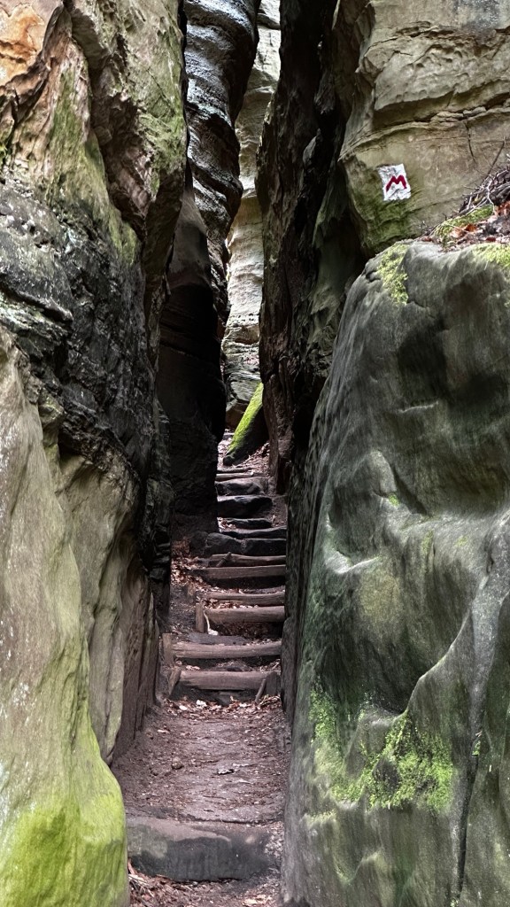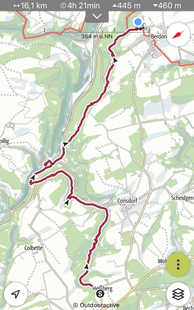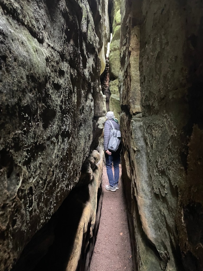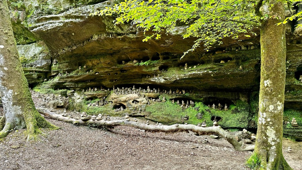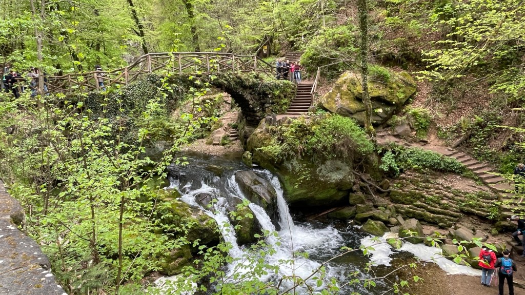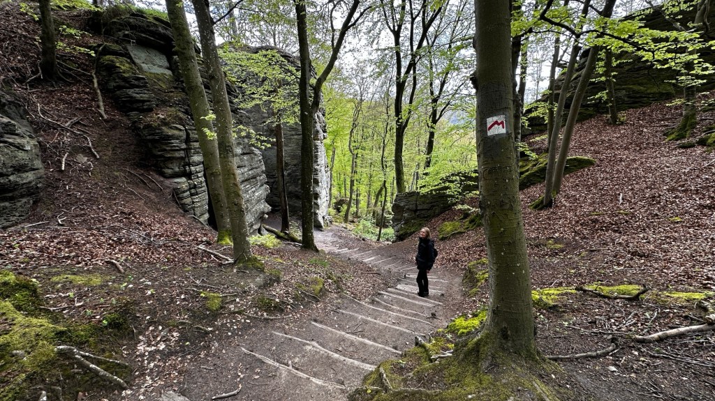23.4.2024 Diese Reise geht nach Luxemburg, ins schöne Müllerthal. Nach 250 km Fahrt erreichen wir schon vor 13 h den Camping Martbusch in Berdorf. Nach dem Mittagessen geht es gleich los mit den Entdeckungen: Wir erkunden auf dem Wanderweg B2 fantastische Felsformationen ganz nah am Campingplatz, mit Höhlen, Leitern, vielen Steilwänden und Kletternden … Für nur 6 km Wanderweg brauchen wir fast 2 Stunden, aber es ist wirklich eine spektakuläre Landschaft hier mit sooo vielen Wanderwegen! Wir freuen uns auf die nächsten Tage!24.4.2024 Heute folgen wir dem lokalen Wanderweg B5. Es geht wieder durch beeindruckende Felsen und mit Abstechern in Höhlen zum „Predigtstuhl“. Das intensive Grün der Moose gibt dem ganzen Wald ein märchenhaftes Aussehen. Nach dem späten Mittagessen im Wohnmobil machen wir uns noch einmal auf, um den gut 50 m hohen, recht neuen Wasserturm von Berdorf zu besichtigen. Von der Aussichtsterrasse hat man einen guten Blick über Berdorf, und wir sehen uns auch die Ausstellung im Turm zum Thema Wasserwirtschaft an.25.4.2024 Heute fahren wir mit unseren Fahrrädern insgesamt gut 50 km über die Grenze nach Deutschland zu den Irreler Wasserfällen nebst Hängebrücke. Der Radweg, den Outdoor Active dafür vorschlägt, ist perfekt, aber es ist mit 6 bis 8 Grad (zum Glück über Null ❄️💨) so kalt, dass wir mit Mütze unterm Helm und Handschuhen fahren. Auf dem Rückweg machen wir Halt in Echternach, besichtigen dort die romanische Basilika und genießen zum Aufwärmen ein Törtchen in einem Cafe. 26.4.2024 Heute werden die ersten Karlsruher Freunde eintreffen, mit denen wir uns hier verabredet haben. Am Vormittag lassen wir es ruhig angehen. Mittags testen wir dann sorgfältig eine Pizzeria im Ort Berdorf (mit positivem Ergebnis) und reservieren vorsorglich einen Tisch für Samstagabend. Am Nachmittag laufen wir mit Nobs und Monika nochmal die Runde B2 … es gibt wieder viel zu entdecken. Schließlich kommen auch Jutta und Ingo an, und wir verbringen einen schönen Abend zusammen.27.4.2024 Zu sechst machen wir uns auf die Wanderung nach Echternach (Route E1). Es gibt unterwegs wieder viele schöne Eindrücke. Insgesamt kommen aber immerhin 19,5 km zusammen, und wir sind dann doch leicht erschöpft. Am Abend in der Pizzeria vervollständigt sich unsere Gruppe dann auf 10 Personen.28.4.2024 Das Programm für heute ist eine Müllerthal-Highlight-Tour. Mit dem (in Luxemburg kostenlosen) Linienbus fahren wir zu zehnt nach Hersberg und starten dort die Wanderung. Kohlscheuer, Rittergang, Eulenburg, Schiessentümpel, Heringer Millen sind die Namen einiger Highlights entlang der Strecke. Es gilt, enge Felsspalten und finstere Höhlen zu durchqueren. Auch heute sind wir wieder gut 16 km gelaufen und haben uns das Abendessen echt verdient!Schön war‘s! Wir brechen gegen 10 Uhr auf und sind mittags schon wieder zuhause.