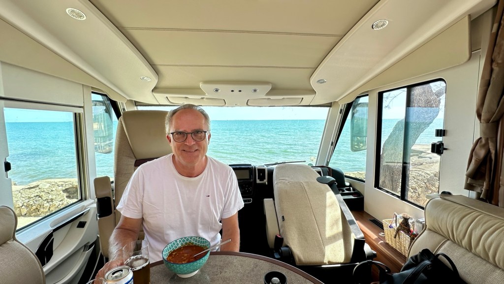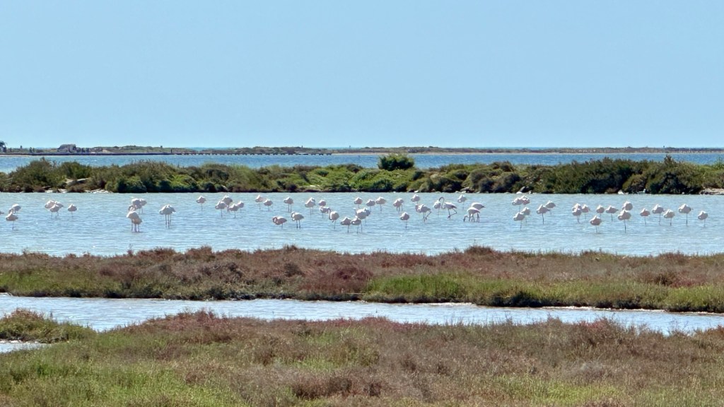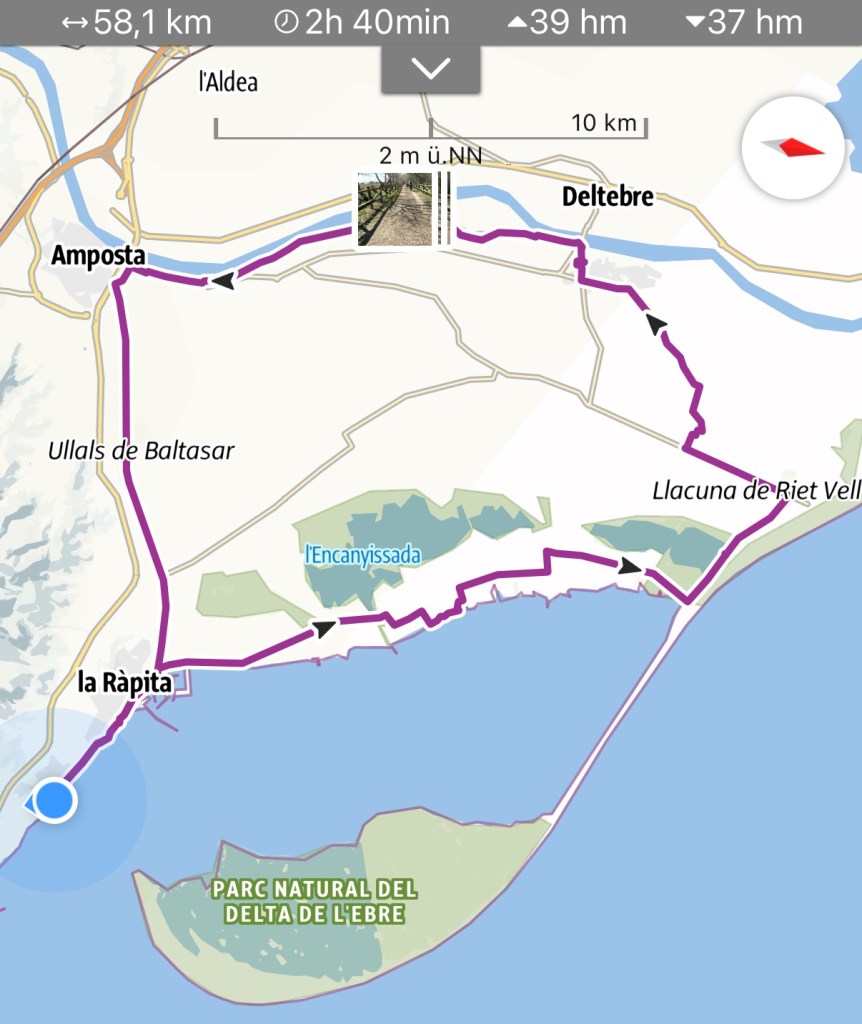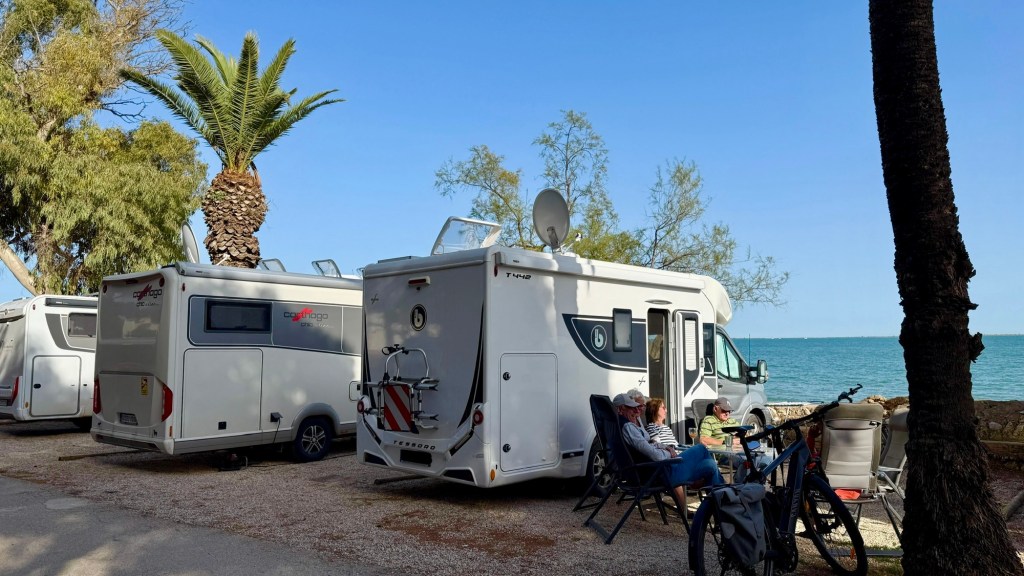 3.4.2025 Vom schönen Stellplatz mit Gibraltar-Blick in La Linea fahren wir gut 300 km nach Almerimar. Wir nutzen dort den Stellplatz an der Marina, den wir auf früheren Reisen bei unseren Radtouren nach Almerimar gesehen hatten. Es gibt Tapas in „Marios Bar“, und wir gehen Einkaufen zum Mercadona. Ansonsten ist Erholung angesagt.4.4.2025 Durch die Foliengewächshauslandschaft geht es 380 km weiter in Richtung Heimat. Die heutige Fahrt endet auf dem Stellplatz „El Torres“ bei Villajoyosa, wo wir im Frühjahr 2022 schon mal waren. Wir beschließen, einen Tag Fahrpause zu machen und hier zwei Nächte zu bleiben.5.4.2025 Bei 25 Grad und Sonnenschein laufen wir etwa 4 km an der schönen Küste der Costa Blanca entlang nach Villajoyosa, immer mit Blick auf das heute richtig blaue Meer. In Villajoyosa erleben wir ein buntes Treiben mit vielen Spaniern, die an diesem Samstag mit den Touristen den Strand und die Restaurants bevölkern. Den Rest des Tages verbringen wir am Wohnmobil und genießen diesen Sommertag!6.4.2025 Gut 300 km sind es bis zum „Camping Yelloh Village Alfacs“ in der Nähe des Ebro-Deltas. Nicht ganz zufällig trifft sich hier die in Marokko etablierte Sechserrunde. Wir stehen unmittelbar am Meer, genießen das gute Wetter, besuchen eine Tapas-Bar und verarbeiten bei etwas spanischem Vermouth, Wein und Bier gemeinsam unsere Reiseerlebnisse.7.4.2025 Zusammen mit Sigrid und Gerd machen wir eine Radtour durchs Ebro-Delta. Wir erleben eine flache, recht unspektakuläre Landschaft, deren Höhepunkte ein paar Flamingos und Reisfelder darstellen. Nach einem Mittagessen in Sant Jaume d‘Enveja radeln wir auf einem recht schönen Radweg am Ebro entlang nach Amposta und dann zurück zum Campingplatz. Dort erwarten Angelika und Andreas uns mit einer selbst angesetzten Sangria, und wir können noch einmal gemeinsam den Sonnenschein hier am Meer genießen.8.4.2025 Wir fahren noch gut 300 km durch Spanien bis zur Grenze. In Frankreich geht es danach etwas flotter voran (110 km/h) als in Spanien, wo wir nur 90 km/h fahren dürfen. Schließlich übernachten wir nach insgesamt 500 km auf dem Stellplatz in Mèze, wo wir schon öfter waren.9.4.2025 Bei Nieselregen starten wir unsere Fahrt zunächst am Étang de Thau entlang, danach geht es flott weiter über die Autobahn. Irgendwo vor Lyon bricht die Sonne durch, was das Fahren viel angenehmer macht. Nach zwei Kaffeepausen und wiederum 500 km quartieren wir uns in Seurre an der Saône ein. Ein bisschen bangt uns vor den Krähen in den hohen Bäumen, die unser Wohnmobil hier beim letzten Mal nicht gut behandelt haben … aber der Platz ist jetzt in der Frühlingssonne sehr schön, und auch die Umgebung gefällt uns gut. (… und das WoMo braucht ohnehin eine Komplettreinigung!)10.4.2025 Die Krähen in den Bäumen auf dem Stellplatz machen schon früh morgens viel Lärm, haben dieses Mal aber zum Glück unser Wohnmobil nicht mit ihren Hinterlassenschaften zugekleckst. Von Seurre aus machen wir uns an die letzten 500 km unseres Heimwegs. Bei unserer Abfahrt sind die Küchenschubladen durch die elektrische Verriegelung blockiert, aber wir können das nach dem Prinzip „Sicherung raus, Sicherung rein“ erfolgreich lösen. Wir entscheiden uns (auch als Dankeschön an unser „Expeditionsfahrzeug“), die Wohnmobil-Waschanlage in Mannheim-Friedrichsfeld zu nutzen. Blitzblank parken wir gegen 16:30 h vor unserem Haus in Trautheim ein und freuen uns sehr, nach 50 Tagen und 8.700 km wohlbehalten zurück zu sein. Es war in jeder Hinsicht eine wunderbare Reise!