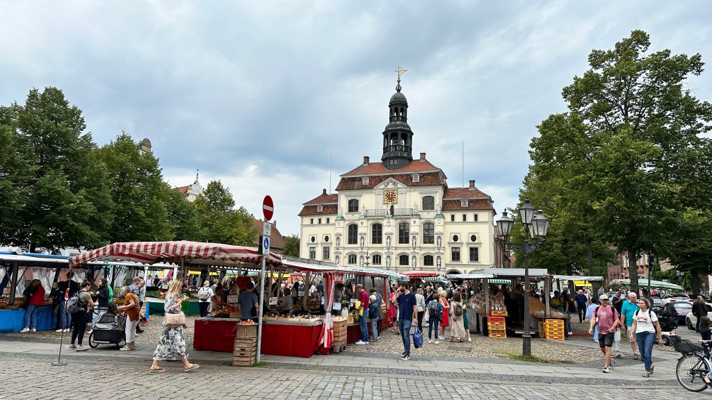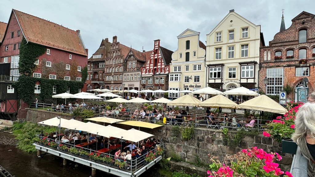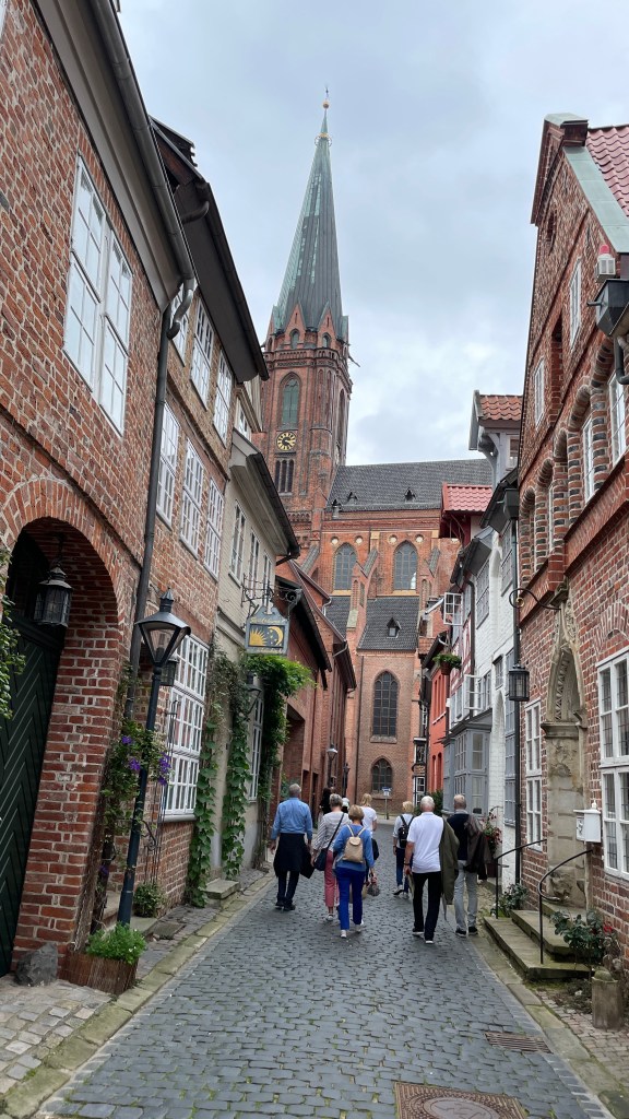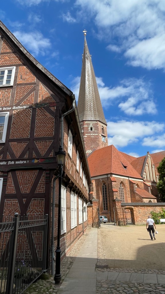 L. Feininger: Stiller Tag am Meer 1 (1926)03.08.2023 Ein Besuch bei Alfred, eine Feier in Berlin und ein Treffen der Familie Wagner sind Anlass für diese Reise. Unsere erste Etappe bringt uns nach gut 6 Stunden mühsamer Fahrt nach Quedlinburg. Wir bekommen einen zentral gelegenen Stellplatz auf dem Schlossparkplatz und besichtigen als erstes das Museum Lyonel Feininger. Dieser deutsch-amerikanische Bauhaus-Lehrer beeindruckt mit seinen kubistisch anmutenden Bildern der klassischen Moderne und hat auch als Karikaturist gearbeitet. Anschließend genießen wir den Blick vom Schlossberg und die wunderbar erhaltene Altstadt von Quedlinburg.04.08.2023 gegen 13 Uhr erreichen wir den vorreservierten Stellplatz in der „Wohnmobil Oase Berlin“ am Gesundbrunnen. Am Nachmittag besuchen wir Alfred und Gerti. Das Café des Pflegeheims bietet jetzt auch selbstgemachtes Eis an … sehr gut! Abends streunen wir dann noch etwas durch die Straßen um den Gesundbrunnen und bestaunen das sehr internationale, leicht türkisch dominierte Flair des Viertels. Zum Abendessen gibt es dann bei einem anatolischen Imbiss Manti, sozusagen türkische Mini-Tortellini.Foto: osmanstoechter.de05.08.2023 Heute sind wir von Gabi und Klaus zu einem Multi-Anlass-Brunch eingeladen. In der Schankhalle Pfefferberg feiern wir die beiden Jubilare in sehr schöner Atmosphäre und freuen uns an den guten Gesprächen mit vielen netten Menschen. Anschließend gibt es einen kleinen Spaziergang durch Alt und Neu in Berlin. Mit einer Führung besichtigen wir die Zionskirche, die weniger durch ihren Bau beeindruckt als durch ihre wichtige Rolle in der Bürgerrechtsbewegung der DDR. Am Abend folgen wir dann einer Restaurantempfehlung und besuchen „Osmans Töchter“. Es gibt Meze vom Feinsten!06.08.2023 Heute ist ein regnerischer Museums-Sonntag. Wir besuchen das Nikolaiviertel, ein Stückchen altes Berlin. Die Nikolaikirche zeigt uns ein Modell der Doppelstadt Berlin/Cölln um 1440, das 1937 angefertigt wurde. Zum Mittagessen genießt Manfred den Waldmeistergeschmack einer Berliner Weisse und zwei Currywürste – das ist Berlin! Nächste Station ist die von Schinkel entworfene Werdersche Kirche, die nun als Museum genutzt wird. Uns gefällt eine Gipsskulptur der zwei Kronprinzessinen Luise und Frederike von Preußen, 1795 von J.G. Schadow gestaltet. Letzte Station für heute ist die Wohnung von Max Liebermann, der unmittelbar neben dem Brandenburger Tor gewohnt und gearbeitet hat. Die alte Einrichtung der Wohnung kann man dort zwar nicht besichtigen, aber dafür gibt es eine sehr gut gemachte virtuelle Tour durch die Wohnung in den frühen 30er Jahren.07.08.2023 Das weiterhin regnerische Wetter bringt uns dazu, die Kristall-Therme in Ludwigsfelde anzusteuern. Es gibt einen großen Parkplatz, auf dem wir mit „Sondergenehmigung“ auch über Nacht stehen dürfen. Die Therme gefällt uns gut … sie ist schon ein bisschen in die Jahre gekommen, aber die Solebecken haben bis zu 36 Grad, teilweise auch 12 % Salzgehalt, so dass man im Wasser schwebt.08.08.2023 Wir brauchen nur eine knappe Stunde ins Havelland., zuletzt über wirklich schöne Landstraßen. Quartier für die nächsten Tage beziehen wir auf dem Campingplatz an der Havel in Ketzin. Trotz zu erwartender Regenschauer und zeitweise starkem Wind gehen wir auf Radtour nach Werder. Schauer 1 nutzen wir für ein Mittagessen im Gasthaus an der Fähre Ketzin, dann geht es mit der Fähre auf die andere Seite der Havel und über den Havel-Radweg. Unser Ziel ist die hübsche Insel von Werder, wo wir uns in einer Kaffeerösterei die Zeit des Regenschauers 2 vertreiben. Auf dem Rückweg wird es immer windiger, und direkt vor der Fähre gibt es dann Schauer 3, diesmal in einer Art Wartehäuschen. Insgesamt aber alles gut … und ab morgen soll das Wetter besser werden!09.08.2023 Heute besuchen wir den Herrn von Ribbeck auf Ribbeck im Havelland. Birnen sind dabei natürlich allgegenwärtig … auch im Kuchen, den wir in einer alten Wäscherei genießen. Das Schloss Ribbeck beherbergt eine interessante Ausstellung über Theodor Fontanes Leben und seine Reisen durch die Mark Brandenburg. Es ist eine schöne Radtour über 60 km, heute mal ohne Regen.10.08.2023 Das Schloss Paretz war eine Sommerfrische der königlichen Häupter aus Berlin. Es gibt alte Kutschen zu bestaunen und im ansonsten recht schlichten Schloss vor allem wunderschöne Tapeten. Am Nachmittag treibt es uns nochmal auf den Havel-Radweg, wo wir in Deetz auch ein paar Störche sehen. Anschließend genießen wir noch etwas Sonne am Stellplatz.11.08.2023 Wir fahren nach Holdenstedt bei Uelzen, um am Familientreffen der Familie Wagner teilzunehmen. Salzwedel ist ein Zwischenstopp, der Ort, der angeblich in Deutschland am weitesten von irgendeiner Autobahn entfernt ist. Backsteingotik und Baumkuchen sind hier das Thema. Bei Brigitte und Jürgen wartet dann eine ziemlich enge Einfahrt auf unser Wohnmobil, aber wir werden mit einem sehr schönen Stellplatz auf dem Grundstück belohnt und von unseren Gastgebern bei Kuchen und Grillabend bestens verwöhnt.12.08.2023 Brigitte und Jürgen haben für heute einen Ausflug mit der Bahn nach Lüneburg organisiert. Bei der zweistündigen Stadtführung beeindruckt uns die sehr schöne Stadt, die vor allem durch Salzgewinnung zu Reichtum gekommen ist. Am Abend gibt es dann noch ein gemeinsames Essen.