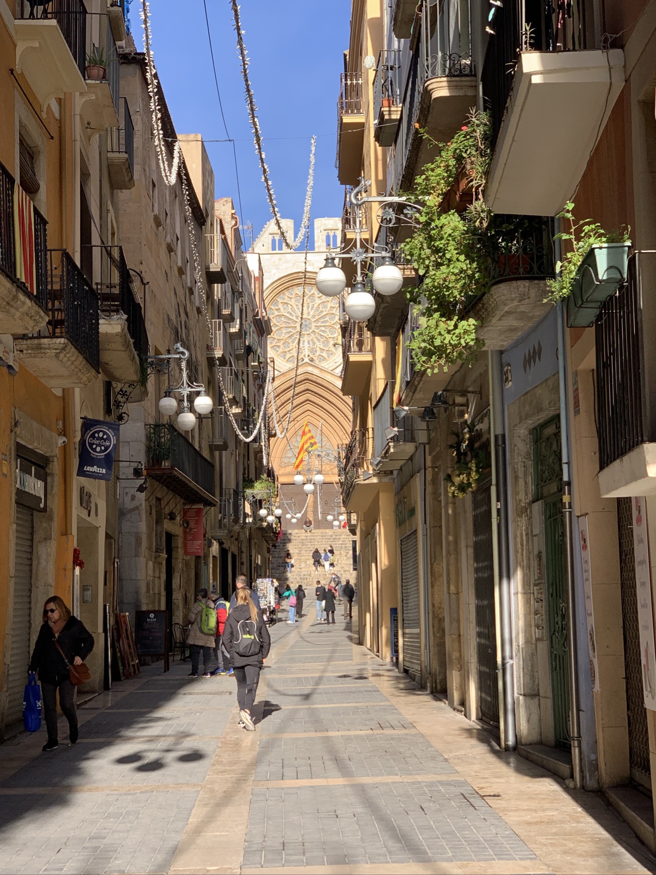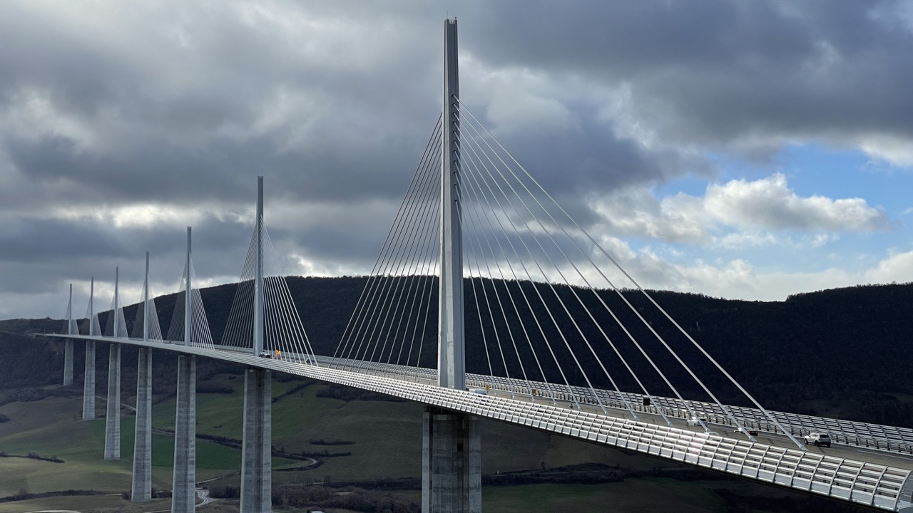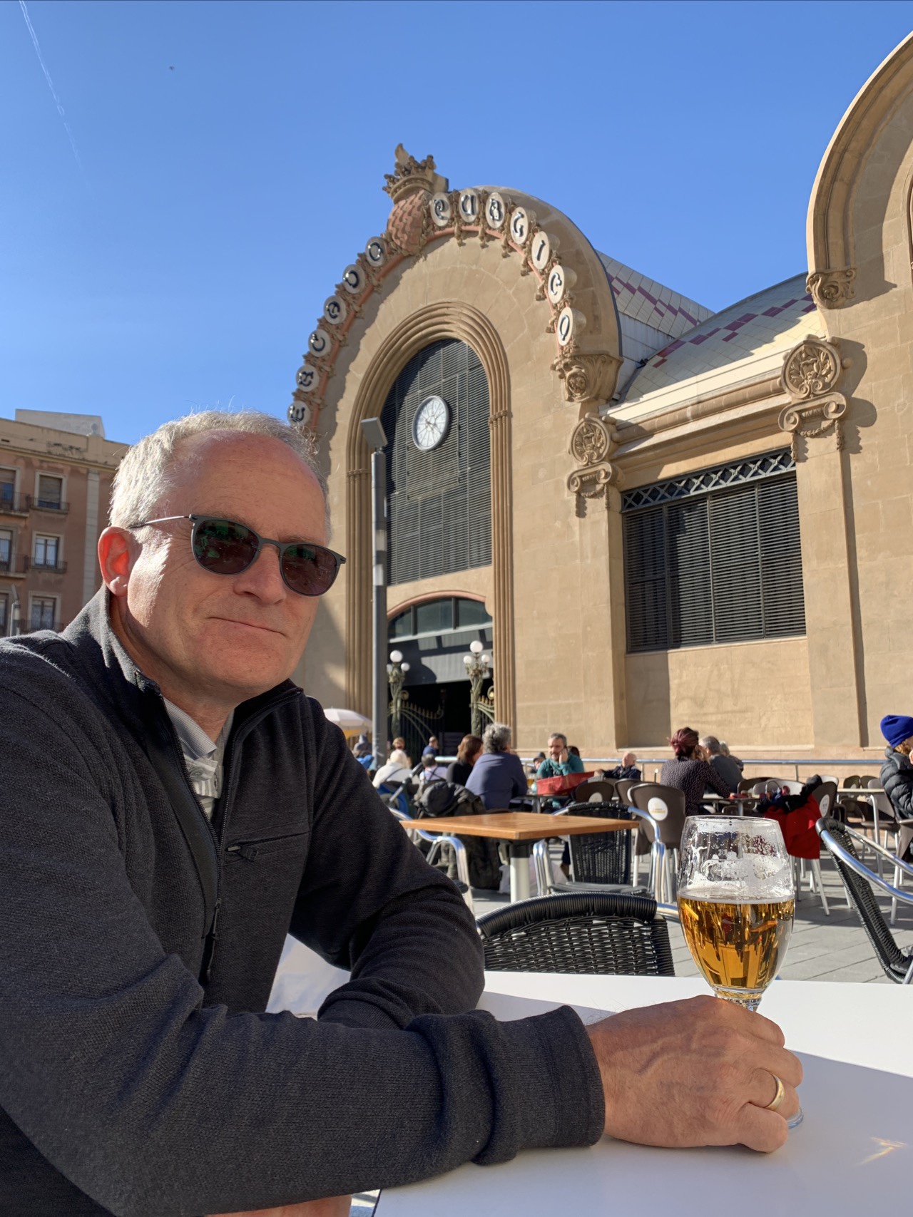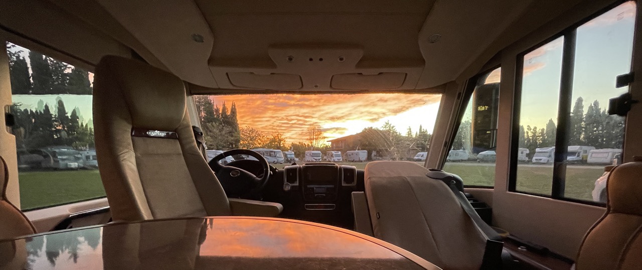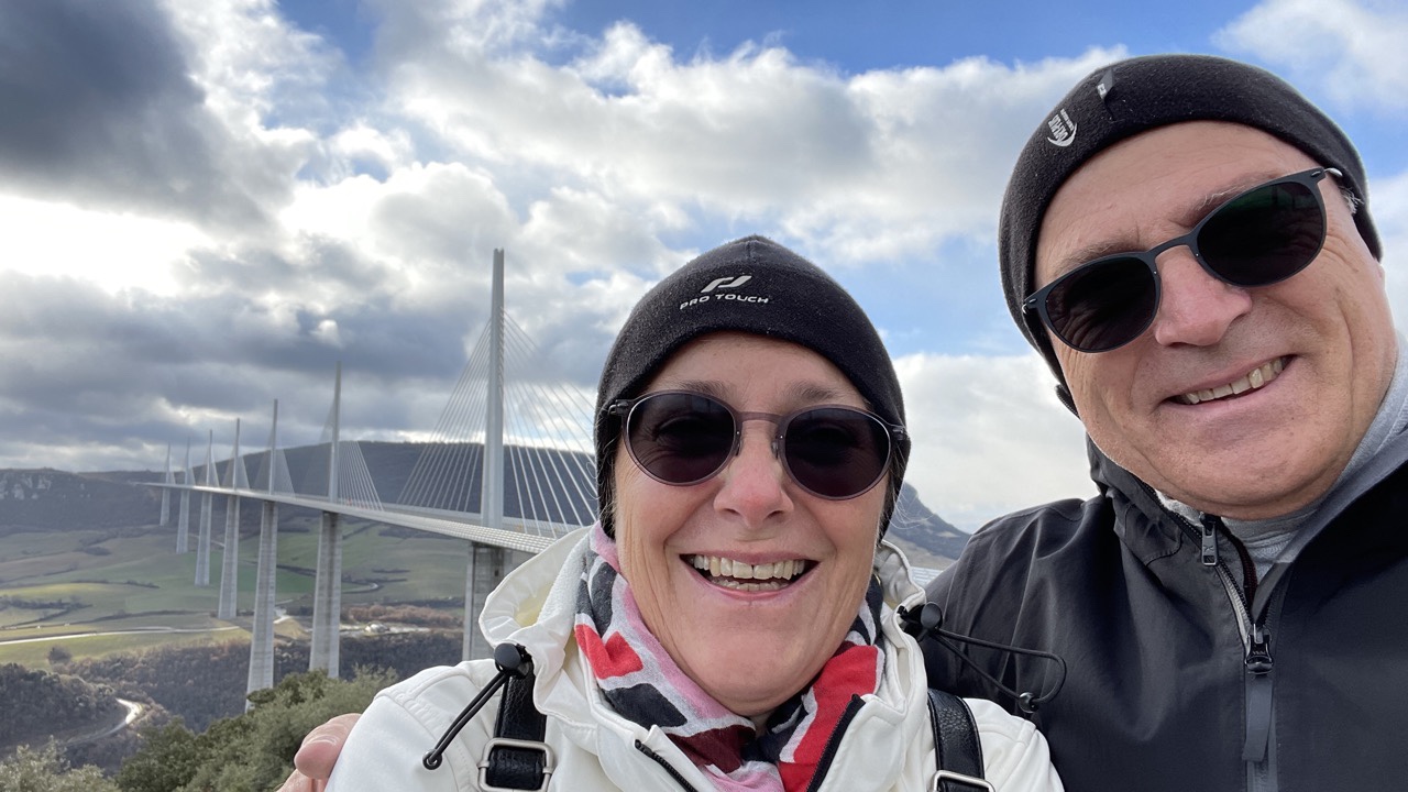 01.12.2021 Wir fahren 450 km weiter und hatten uns vorab für einen Stellplatz an der Bodega2020, 30 km vor Valencia, angekündigt. Wir stehen inmitten von Plantagen für Orangen, Mandarinen und Kaki. Der Kaki-Anbau nutzt hier allerdings eine Menge Chemie, um die Bäume durch Entlauben in einen Alarmzustand zu versetzen, der die Früchte schnell reifen lässt. Am Abend gibt es eine sehr persönliche Weinprobe und die besten Tapas.02.12.2021 Bei Sonne und heftigem Wind fahren wir 270 km bis Cambrils, kurz vor Tarragona. Am Strand gibt es hier viele Palmen und Sittiche.03.12.2021 Wir trotzen mit unseren eBikes dem starken Wind und fahren 23 km nach Tarragona, zuerst auf super Radwegen an der Küste entlang, dann aber wegen eines undurchdringlichen Hafen- und Industriegebiets auf einer Schnellstraße und im engen Stadtverkehr. Tarragona bietet uns einen sonnigen Tag mit Amphietheater, einem Denkmal für die katalanische Tradition der Menschentürme (Castells), einer schönen Markthalle, hübschen Straßen und Plätzen und natürlich einer Kathedrale.04.12.2021 Nach einer um Barcelona herum staugeplagten Fahrt über 270 km machen wir kurz vor der französischen Grenze Halt in Figueres, dem Geburtsort von Salvador Dalí. Das von ihm selbst entworfene Museum auf den Resten des im Bürgerkrieg zerstörten Theaters von Figueres ist ein Publikumsmagnet. Unser Stellplatz für die Nacht verwöhnt uns noch mit einem prachtvollen Sonnenuntergang.05.12.2021 Wir verlassen Spanien und fahren nach Norden in Richtung Millau, durch Regenbogen und Schnee. Die Autobahnbrücke von Millau wurde von Michel Virlogeux entworfen und von Norman Foster gestalterisch ausgearbeitet (sagt Wikipedia). Sie ist fast 2,5 km lang, hat eine lichte Höhe von 270 m und ist insgesamt bis zu 343 m hoch. Millau ist eine hübsche Stadt mit morbidem Charme am Fluss Tarn.06.12.2021 Für das Viadukt von Millau finden wir noch den perfekten „Kodak Point“, bevor wir zunächst der A75 weiter nach Norden folgen und nach gut 400 km in Villefranche-sur-Saône Halt machen. Entlang der sehr bergigen Strecke sehen wir noch viele andere schöne Brücken. Die Straße führt uns bis auf gut 1100 m Höhe … wir werden auf Winter eingestimmt.202119912021199107.12.2021 Unsere vorletzte Etappe führt zunächst nach Ronchamp. Die dortige Kapelle Notre-Dame-du-Haut wurde von Le Corbusier entworfen. Wir hatten sie 1991 schon einmal zusammen besucht. Beim anschließenden Einkauf im Supermarkt stresst uns die Käseauswahl etwas … Wir finden dann einen Stellplatz im hübschen Städtchen Luxeuil-les-Bains. Nur zum Vergleich ist auch das Foto von unserem Campingplatz vor 30 Jahren eingefügt.08.12.2021 Wir sind wieder zuhause! Nach 66 Tagen (quasi 9 1/2 Wochen 😊) und 6.700 km können wir auf eine wunderbare Zeit zurückblicken.
