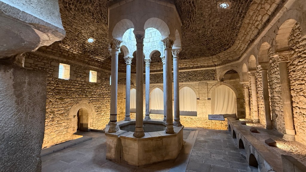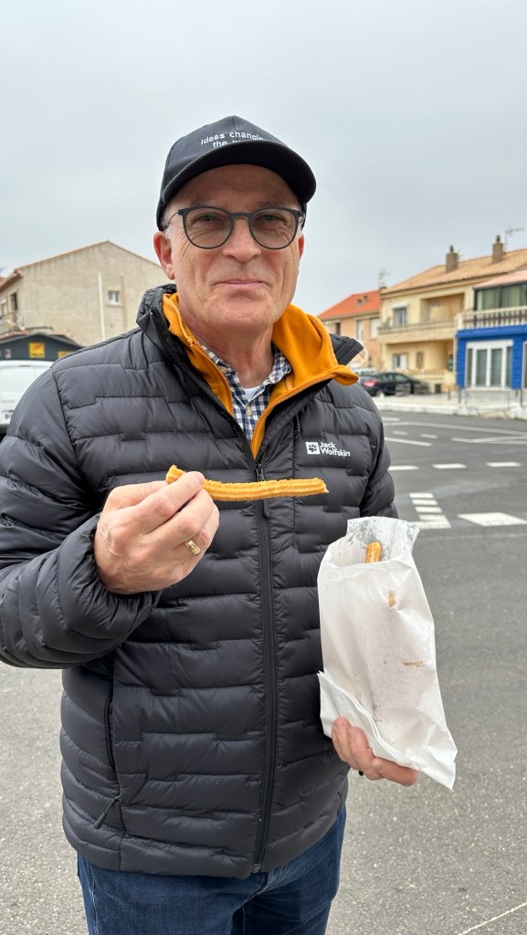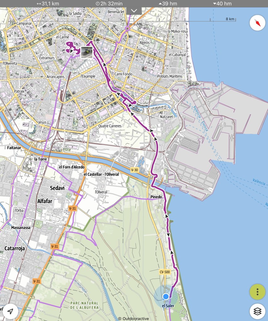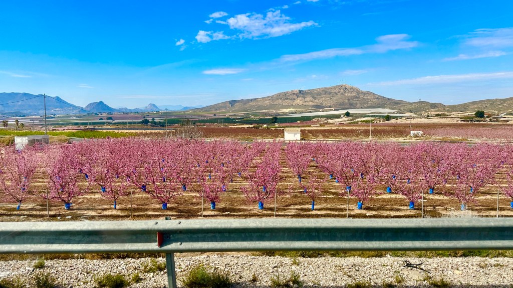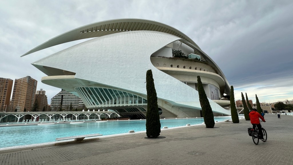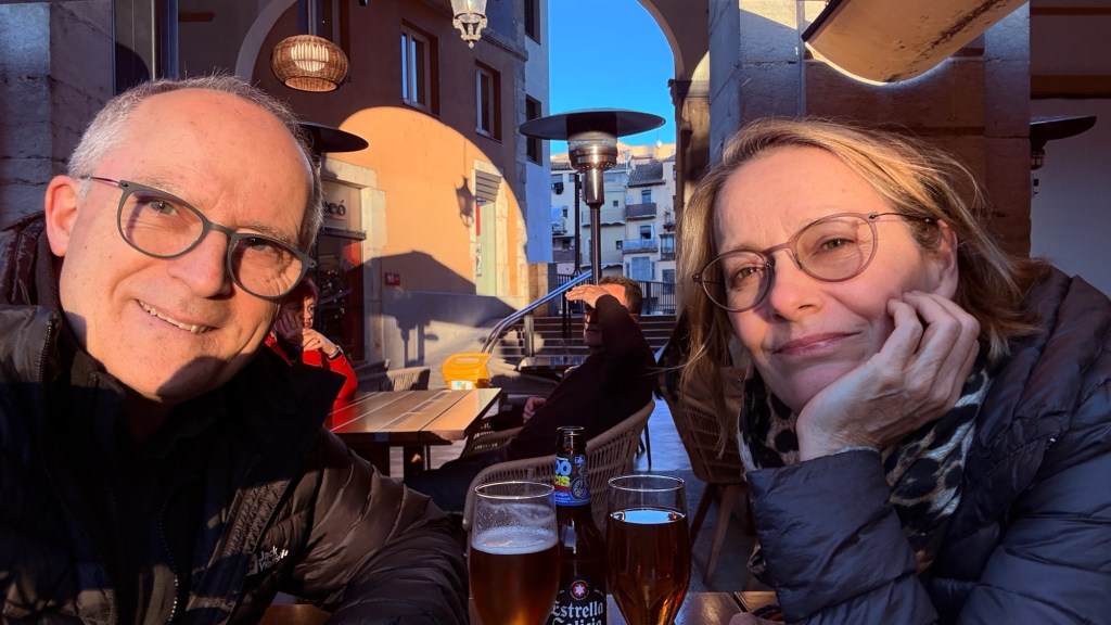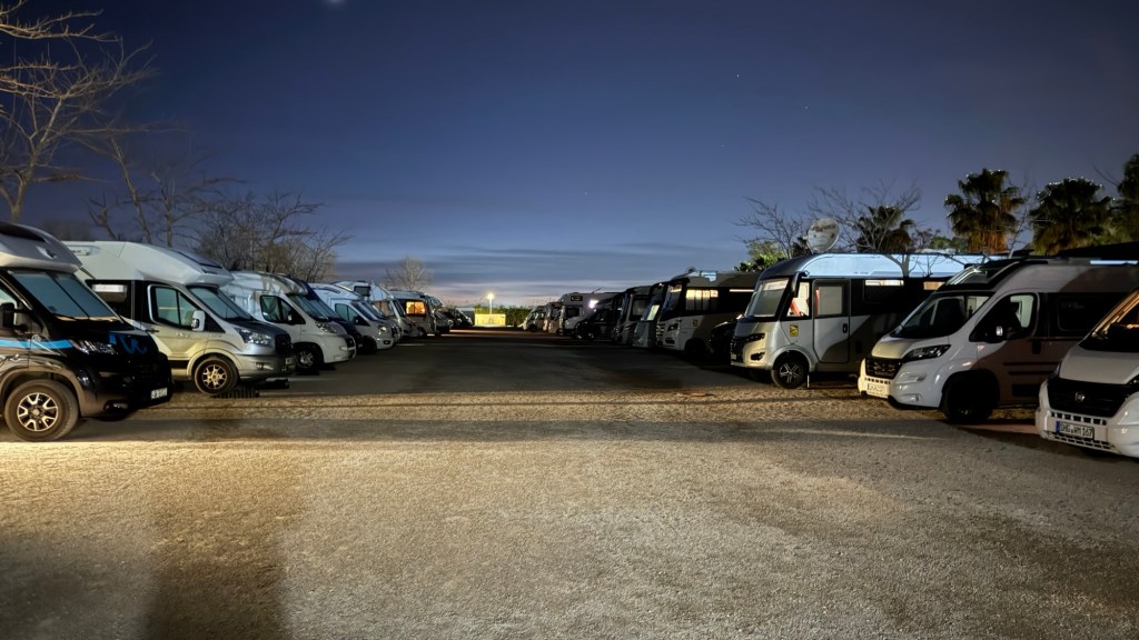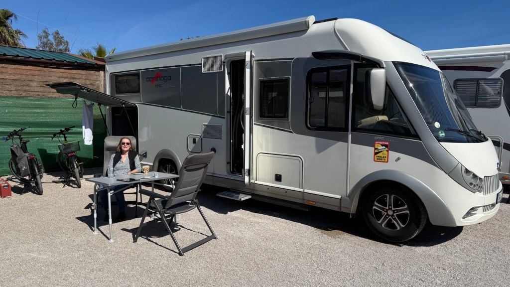 20.2.2025 Gegen 10:30 h haben wir alles gepackt und am Haus alles gerichtet, so dass wir starten können. Gut beladen fahren wir mit zwei Pausen über 600 km. Unser Quartier ist ein Stellplatz kurz vor Lyon, in Villefranche sur Saône, auf dem wir schon mehrmals übernachtet haben. Da es schon fast 18 h ist, reicht es nur noch für einen kurzen Rundgang am Fluss entlang … danach erholen wir uns im Wohnmobil.21.2.2025 Noch ein Fahrtag, dieses Mal 400 km (und über 80 € Maut!). Gegen 15 h checken wir auf dem Stellplatz in Portiragnes ein und machen erst einmal einen Strandspaziergang. Der Ort wirkt ziemlich verlassen zu dieser Jahreszeit, aber ein einsamer Imbisswagen bietet leckere, bestimmt super ungesunde Churros an … und man kann sich gut vorstellen, was hier im Sommer los ist! Nicht weit von hier liegt übrigens Valras Plage, wo wir im Hitzesommer 2003 (neulich!) mit unseren Kindern im Zelt und ohne Schatten zwei Wochen gelitten hatten, bevor wir den Urlaub abbrachen. Heute ist hier von Hitze nichts zu spüren, aber es hat immerhin um die 15 Grad bei bedecktem Himmel.22.2.2025 Heute haben wir nur 200 km zu fahren, um über die Grenze nach Spanien und nach Girona zu gelangen. Wir haben uns einen pragmatischen Stellplatz (Parkplatz) ausgesucht, von dem aus wir in nur 10 Minuten in die Altstadt laufen können. Wir bestaunen dort die mittelalterliche Häuserfront am Riu Onvar, dann die 1877 vom Kollegen Eiffel konstruierte rote Eisenbrücke, ein Stück Tarte Lemon zum Nachtisch, die Reste eines arabischen Badehauses aus dem 12. Jh., die imposante Kathedrale von Girona, die auch als Kulisse in „Game of Thrones“ diente, und schließlich die Stadtmauer mit schönen Blicken auf die Altstadt. Nach all dem hat es sich schließlich doch so eingeregnet, dass wir unsere Erkundungstour abbrechen. Morgen soll die Sonne scheinen!23.2.2025 Ganz so schön wird das Wetter doch nicht, und wir starten unsere Radtour auf dem Bahntrassenradweg (Via verde) erst einmal kühl und mit leichtem Regen. Eine Bäckerei an der Radroute kommt uns gerade recht, und wir genießen die dort angebotenen Leckereien. Danach klart es dann doch auf. Wir fahren die 25 km bis Amer und dann zurück nach Girona. Zum Sonnenuntergang geht es noch zu Fuß auf einen der belebten Plätze der Altstadt, wo wir auch die ersten Ergebnisse der deutschen Bundestagswahl ansehen. Ein Familien-Skype mit unseren Kindern lässt den Tag sehr schön ausklingen.24.2.2025 Der Tag fängt nicht ganz so gut an: Unser WoMo hat Batterieprobleme, die beim Werkstatt-Check vor der Reise offenbar nicht aufgefallen sind. Manfred gelingt es nicht, den Motor zu starten, also muss ein Profi ran, der dank ADAC auch nach einer knappen Stunde schon da ist. Wir fahren dann direkt in eine Werkstatt, die nach etwas Hin und Her unser Problem auch mittels neuer Batterie vortrefflich löst. Etwas gestresst, aber auch erleichtert (auch um einige Euro), fahren wir dann noch die Etappe über gut 400 km nach Valencia. Wir kommen erst nach 18 Uhr auf dem gut gefüllten Stellplatz „Eco Area El Saler Camper Park“ an, wo auf uns aber noch ein sehr guter Platz wartet.25.2.2025 Wir radeln auf einem perfekten Radweg die 15 km vom Stellplatz in die Innenstadt von Valencia. Wir sehen sehr eindrucksvolle moderne Architektur und fahren durch den 9 km langen Park, der nach Umlenkung des Flusses ab 1986 im alten Flussbett entstanden ist und auch durch die vielen historischen Brücken einen besonderen Charakter bekommt. Nachdem wir die Fahrräder gut abgestellt haben, geht es an die Altstadtbesichtigung. Die Markthalle, die Kirche St. Nicolas de Bari, ein gutes Mittagessen in einem arabischen Restaurant und ein bestens sortiertes privates Museum für moderne Kunst machen den Tag äußerst kurzweilig. Und weil es uns auch auf dem Stellplatz gut gefällt, beschließen wir, einen Tag länger zu bleiben.Entwurf!26.2.2025 Den zusätzlichen Tag hier bei Valencia nutzen wir, um alle Systeme aufzufrischen. Dazu gehört auch, dass wir drei 6-Liter-Kanister Trinkwasser kaufen, weil das Wasser aus der Leitung gechlort und ziemlich ungenießbar ist. Es bleibt genug Zeit, bei gut 20 Grad die heute nun endlich prächtig scheinende Sonne zu genießen. Nachmittags machen wir eine kleine Radtour und bestaunen das Traktor-Gespann, mit dem hier der Sand gereinigt wird. Und schließlich freut sich Manfred darüber, dass der Verlag nun mit seinem Buch vorankommt und einen ersten Entwurf zum Buchdeckel geschickt hat.27.2.2025 Nach dem Volltanken und Tausch der spanischen Gasflasche rauschen wir 270 km durch teils blühende, teils karge Landschaft. Unser WoMo feiert unterwegs nach knapp 8 Jahren die 90.000 km auf dem Tacho. Der Stellplatz in Mazarron, den wir ansteuern, ist leider voll, aber wir finden eine gute Alternative nur 2 km weiter. Nur noch ein paar Lebensmitteleinkäufe am Nachmittag, ansonsten nix Berichtenswertes.28.2.2025 Gegen 13 Uhr haben wir die heutige Etappe geschafft (280 km). Wir nutzen den schön angelegten Stellplatz „Viña Castilla“, der bei Motril nicht weit von der Küstenautobahn AP-7 in den Bergen liegt. Die Landschaft ist hier durch Ramblas (trockenes Flussbett) und Plastikzelte zum Gemüseanbau geprägt. Bei unserem Rundgang entdecken wir aber auch einiges Grün in der steinigen Umgebung. Abends genießen wir das kleine Restaurant am Platz.