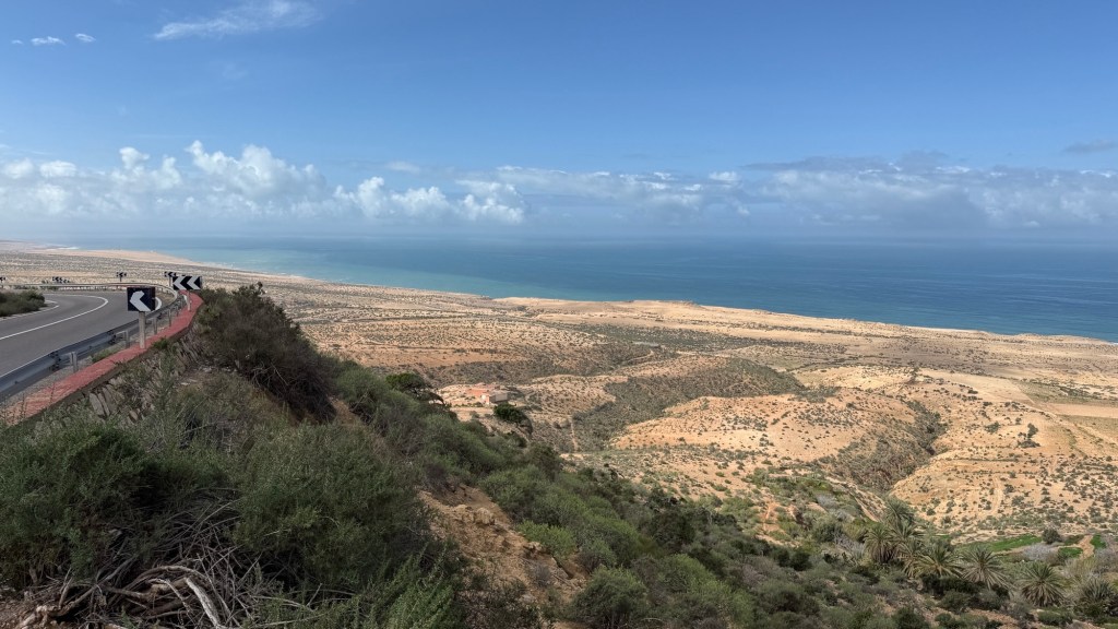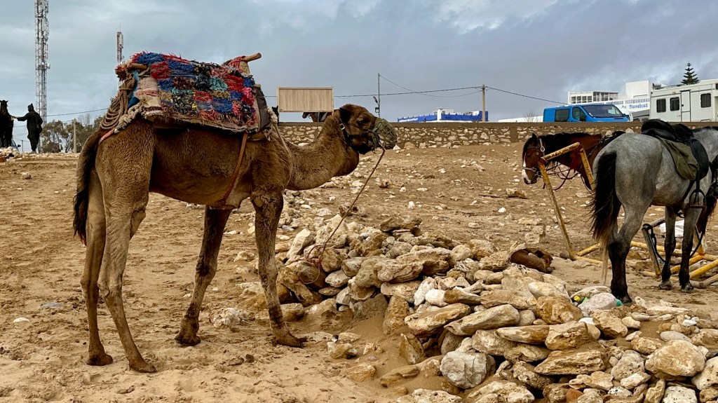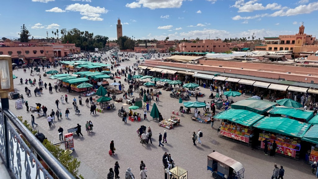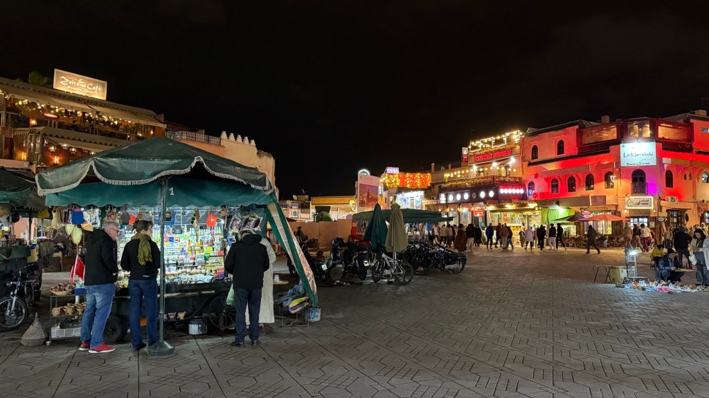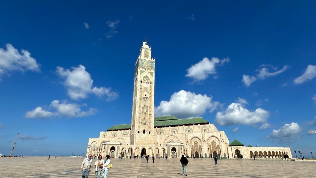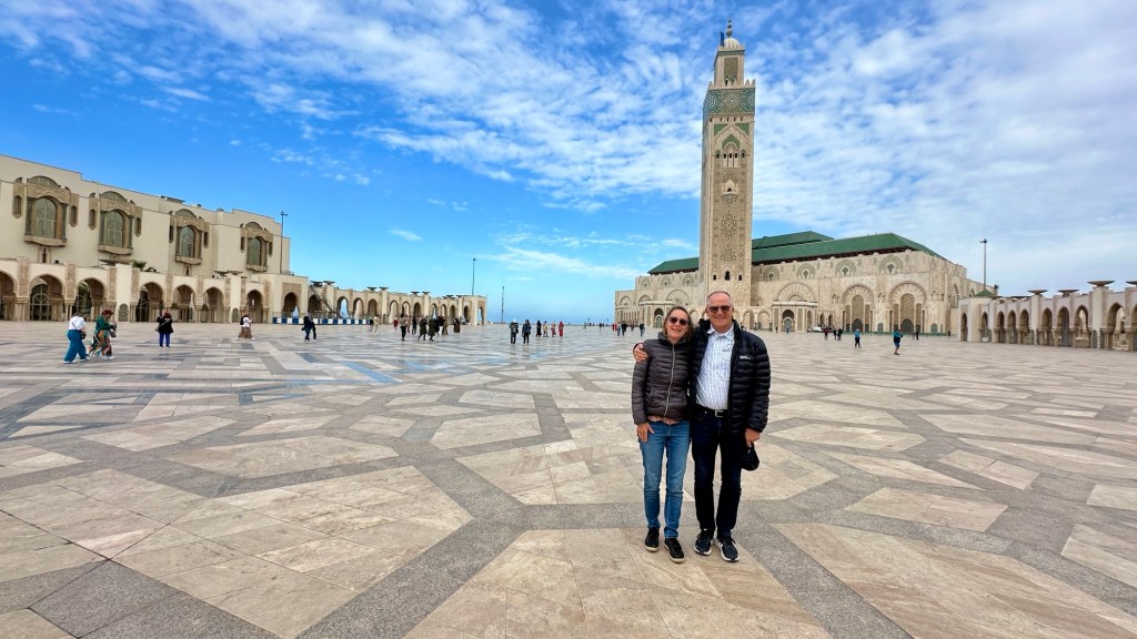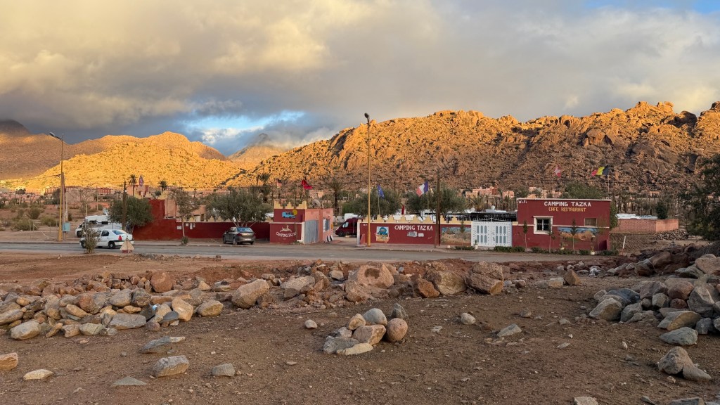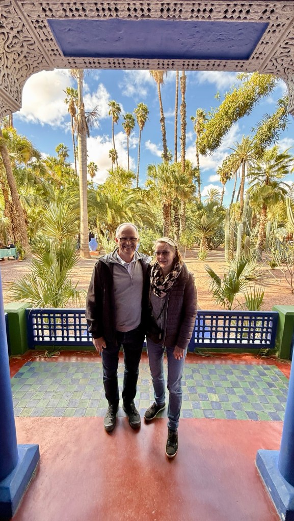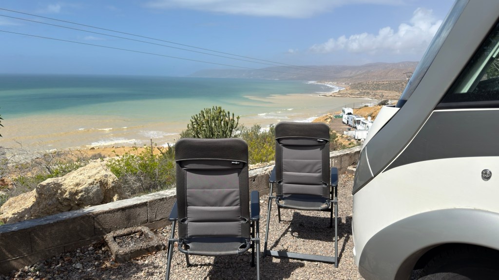 1.3.2025 Nach 300 km (und insgesamt gut 2.500 km) erreichen wir den Treffpunkt der Gruppe für die Marokko-Tour auf dem Campingplatz Valdevaqueros bei Tarifa. Die Stellplätze sind schön, aber durch den Regen der letzten Tage hier sehr matschig. Obwohl die Tour ja erst am nächsten Mittwoch losgeht, sind doch schon einige Teilnehmer hier, und wir hocken zum Kennenlernen schon mal ein paar Stunden vor der Bar des Campingplatzes zusammen. Anschließend machen wir noch einen Strandspaziergang mit Blick auf den afrikanischen Kontinent.2.3.2025 Nach einem ruhigen Vormittag und einer von Dagmar kreierten „Risoella“ (Risotto mit Paella-Reis) laufen wir am Nachmittag zur Duna de Valdevaqueros. Wir besuchen dort den „Hombre de Madera“ (Mann aus Holz), der dem ständigen Wind trotzt und die Aussicht über die Bucht mit vielen Kite-Surfern und den Blick nach Afrika genießt. Anschließend gibt es einen kleinen Umtrunk mit ein paar Mitgliedern der Reisegruppe in der Bar des Campingplatzes.3.3.2025 Angelika und Andreas nehmen uns in ihrem Wohnmobil mit ins 10 km entfernte Tarifa. Zu zweit erkunden wir die Stadt, die aber für uns nicht so viel zu bieten hat. Am besten gefällt uns ein Restaurant am Strand, von dem aus wir den Kite-Surfern bei ihrem spektakulären Treiben zusehen können. Wir gönnen uns für den Rückweg eine Taxifahrt und verbringen den größten Teil des Nachmittags mit der wachsenen Reisegruppe in der Bar des Campingplatzes.4.3.2025 Heute ist der erste Tag unserer gebuchten Marokko-Tour. Vormittags frischen wir alle Wohnmobilsysteme auf. Nachmittags treffen sich alle Teilnehmer, um sich von der Organisatorin Eva in die Tour einstimmen zu lassen. Nach vielen Informationen gibt es dann zur Belohnung Sangria und schließlich eine Riesen-Paella für die 30 Mitreisenden.5.3.2025 Der Wecker klingelt um 7 h, Abfahrt ist um 7:30 h. Wir fahren 45 min zum Hafen von Algeciras, wo wir das Ticket für die „10 h“-Fähre bekommen und uns anstellen. Um 11 h beginnt endlich das Verladen aufs Schiff, kurz nach 12 h fährt das Schiff ab. Nach 90 min, gegen 12:30 h Ortszeit, kommen wir in Tanger Med an und verbringen dann nochmal über 2 Stunden mit Passkontrolle, Zollkontolle und Geldwechsel. Highlight ist das Röntgen der kompletten Fahrzeuge! Nach kurzem Treffen mit der Reiseleitung fahren wir dann noch eine Stunde über die gute Autobahn nach Asilah. Um 16:30 h parken wir auf dem Stellplatz dicht an der Medina ein. Wir machen dort einen Rundgang in der Gruppe und sind schließlich auch beim gemeinsamen Abendessen dabei. Eine laute Sirene kündigt den Sonnenuntergang und das Fastenbrechen an.6.3.2025 Bei Regen brechen wir von Asilah in Richtung Mohammedia auf. Nach 3 Stunden Fahrt über eine moderne Autobahn durch schwer vermüllte Landschaft erreichen wir mittags den am Meer gelegenen Campingplatz „l’Océan Bleu“. Nachmittags erkunden wir ein wenig die Umgebung, abends gehen wir mit der Gruppe in ein Lokal zum „Fastenbrechen“. Ramadan wirkt sich tagsüber schon erheblich aus … viele Geschäfte sind geschlossen, und es ist insgesamt sicher weniger los.7.3.2024 Gegen 8:30 h werden wir abgeholt und mit dem Taxi nach Casablanca gefahren. In der viel zu großen Stadt wollen wir nur die Moschee Hassan II. ansehen 🕌. Sie wurde 1986 bis 1993 erbaut und ist eine der größten Moscheen der Welt, das Minarett ist ca. 200 m hoch. Besonderheit ist auch, dass eine Besichtigung für Nicht-Muslime möglich ist. Uns gefallen auch die vielen schönen Details sehr gut. Am Nachmittag machen wir noch einen kleinen Einkauf auf dem Markt, und am frühen Abend gibt es einen „Stuhlkreis“ der Reisegruppe, wo wir über die Weiterfahrt nach Marrakesch und den Aufenthalt dort informiert werden.8.3.2025 Bei sehr heftigem Regen machen wir uns auf den Weg über die Autobahn nach Marrakesch. Nach 280 km parken wir auf einem großen Parkplatz unmittelbar außerhalb der Stadtmauer ein. Es ist auch am Nachmittag regnerisch und mit gerade 15 Grad viel zu kühl für diese Stadt. Trotzdem sind wir besonders von den Souks mit ihrem bunten Treiben fasziniert. Wir besichtigen auch eine Koranschule aus dem 14. Jahrhundert. Abends gehen wir in einer kleineren Gruppe nochmal los zum Essen. Gerade der große, berühmte Platz „Jemaa el fna“ ist trotz der Nässe und Kälte gut bevölkert. Obststände, Garküchen, Märchenerzähler … alle sind da, nur die Schlangenbeschwörer fehlen, weil es den Kobras offensichtlich zu kalt ist.9.3.2025 Dieser Sonntag hat deutlich besseres Wetter und beginnt um 9:15 h mit einer Lagebesprechung auf dem Wohnmobil-Parkplatz. Anschließend führt uns Mustafa in perfektem Deutsch durch die Medina und die weitläufigen Souks. Es ist alles so bunt und vielfältig! Bei einem Händler für Gewürze und bei einem für Gebäck kaufen wir kräftig ein. Auf dem Rooftop des „Café de France“, das trotz Ramadan für Touristen geöffnet hat, gibt es eine Tajine zum Mittag. Um 15 h haben wir Tickets für den überfüllten „Jardin Majorelle“. Es ist ein schöner, 100 Jahre alter Künstlergarten, der ab 1980 von Yves Saint Laurent und seinem Freund genutzt wurde. Es gibt hier so viele schöne Fotomotive, dass Dagmar die Auswahl wirklich schwer fällt. Den Abend verbringen wir dann zunächst mit der Gruppe in einer Garküche auf dem „Jemaa el fna“ und dann mit Angelika und Andreas bei einem Umtrunk im kleinen Kreis.10.3.2025 Für die 180 km von Marrakesch an die Küste zum Campingplatz „Sidi Kaouki Beach“ brauchen wir gut 3 Stunden … insbesondere in den Ortsdurchfahrten merken wir, dass wir nun wirklich in Marokko sind! Der Stellplatz ist gut, auch wenn wir hier nun zwei weitere Tage keinen funktionierenden Stromanschluss haben … wir freuen uns über die kleine PV-Anlage auf unserem Dach. Wir vertilgen das sehr leckere Gebäck, das wir in Marrakesch gekauft hatten. Nachmittags erkunden wir dann den breiten Sandstrand, der aber ziemlich vermüllt ist. Die vielen herumstehen
