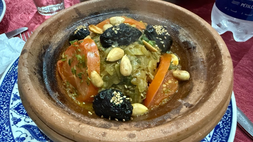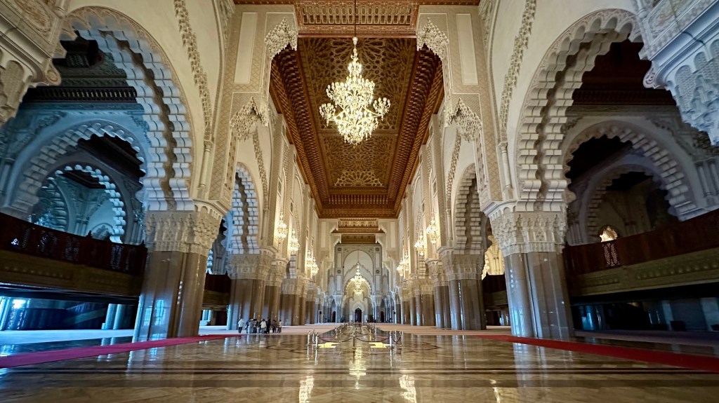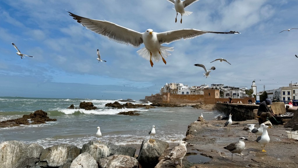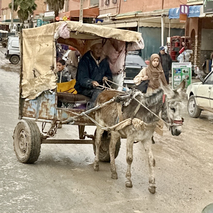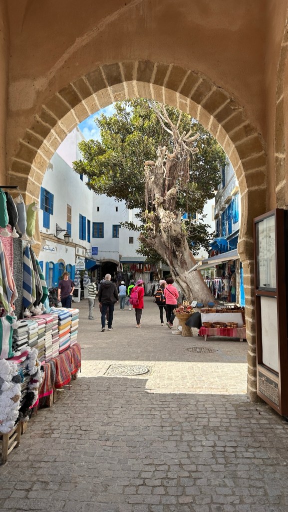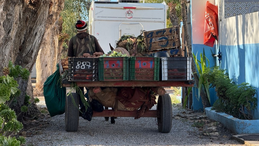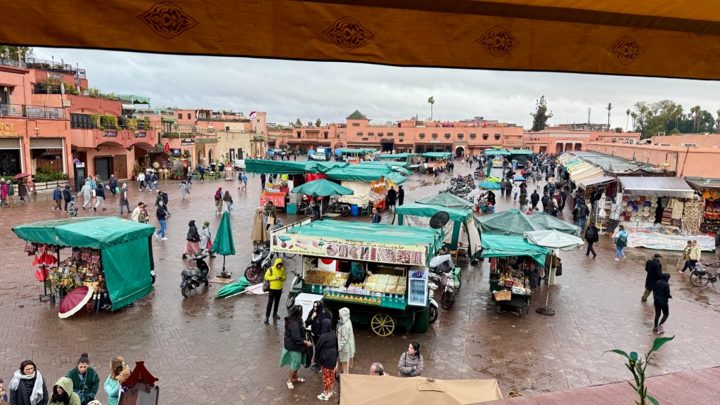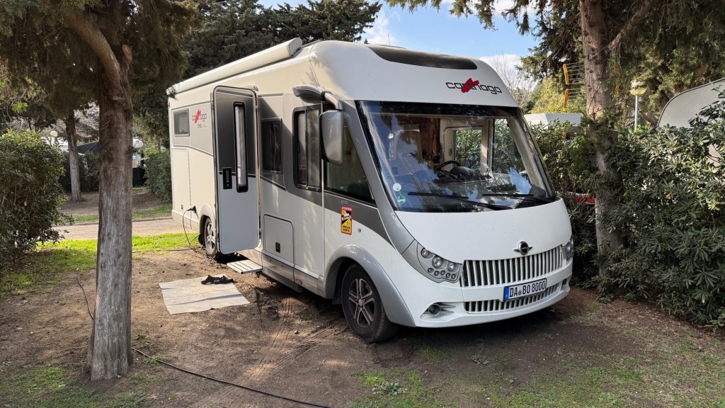 1.3.2025 Nach 300 km (und insgesamt gut 2.500 km) erreichen wir den Treffpunkt der Gruppe für die Marokko-Tour auf dem Campingplatz Valdevaqueros bei Tarifa. Die Stellplätze sind schön, aber durch den Regen der letzten Tage hier sehr matschig. Obwohl die Tour ja erst am nächsten Mittwoch losgeht, sind doch schon einige Teilnehmer hier, und wir hocken zum Kennenlernen schon mal ein paar Stunden vor der Bar des Campingplatzes zusammen. Anschließend machen wir noch einen Strandspaziergang mit Blick auf den afrikanischen Kontinent.2.3.2025 Nach einem ruhigen Vormittag und einer von Dagmar kreierten „Risoella“ (Risotto mit Paella-Reis) laufen wir am Nachmittag zur Duna de Valdevaqueros. Wir besuchen dort den „Hombre de Madera“ (Mann aus Holz), der dem ständigen Wind trotzt und die Aussicht über die Bucht mit vielen Kite-Surfern und den Blick nach Afrika genießt. Anschließend gibt es einen kleinen Umtrunk mit ein paar Mitgliedern der Reisegruppe in der Bar des Campingplatzes.3.3.2025 Angelika und Andreas nehmen uns in ihrem Wohnmobil mit ins 10 km entfernte Tarifa. Zu zweit erkunden wir die Stadt, die aber für uns nicht so viel zu bieten hat. Am besten gefällt uns ein Restaurant am Strand, von dem aus wir den Kite-Surfern bei ihrem spektakulären Treiben zusehen können. Wir gönnen uns für den Rückweg eine Taxifahrt und verbringen den größten Teil des Nachmittags mit der wachsenen Reisegruppe in der Bar des Campingplatzes.4.3.2025 Heute ist der erste Tag unserer gebuchten Marokko-Tour. Vormittags frischen wir alle Wohnmobilsysteme auf. Nachmittags treffen sich alle Teilnehmer, um sich von der Organisatorin Eva in die Tour einstimmen zu lassen. Nach vielen Informationen gibt es dann zur Belohnung Sangria und schließlich eine Riesen-Paella für die 30 Mitreisenden.5.3.2025 Der Wecker klingelt um 7 h, Abfahrt ist um 7:30 h. Wir fahren 45 min zum Hafen von Algeciras, wo wir das Ticket für die „10 h“-Fähre bekommen und uns anstellen. Um 11 h beginnt endlich das Verladen aufs Schiff, kurz nach 12 h fährt das Schiff ab. Nach 90 min, gegen 12:30 h Ortszeit, kommen wir in Tanger Med an und verbringen dann nochmal über 2 Stunden mit Passkontrolle, Zollkontolle und Geldwechsel. Highlight ist das Röntgen der kompletten Fahrzeuge! Nach kurzem Treffen mit der Reiseleitung fahren wir dann noch eine Stunde über die gute Autobahn nach Asilah. Um 16:30 h parken wir auf dem Stellplatz dicht an der Medina ein. Wir machen dort einen Rundgang in der Gruppe und sind schließlich auch beim gemeinsamen Abendessen dabei. Eine laute Sirene kündigt den Sonnenuntergang und das Fastenbrechen an.6.3.2025 Bei Regen brechen wir von Asilah in Richtung Mohammedia auf. Nach 3 Stunden Fahrt über eine moderne Autobahn durch schwer vermüllte Landschaft erreichen wir mittags den am Meer gelegenen Campingplatz „l’Océan Bleu“. Nachmittags erkunden wir ein wenig die Umgebung, abends gehen wir mit der Gruppe in ein Lokal zum „Fastenbrechen“. Ramadan wirkt sich tagsüber schon erheblich aus … viele Geschäfte sind geschlossen, und es ist insgesamt sicher weniger los.7.3.2024 Gegen 8:30 h werden wir abgeholt und mit dem Taxi nach Casablanca gefahren. In der viel zu großen Stadt wollen wir nur die Moschee Hassan II. ansehen 🕌. Sie wurde 1986 bis 1993 erbaut und ist eine der größten Moscheen der Welt, das Minarett ist ca. 200 m hoch. Besonderheit ist auch, dass eine Besichtigung für Nicht-Muslime möglich ist. Uns gefallen auch die vielen schönen Details sehr gut. Am Nachmittag machen wir noch einen kleinen Einkauf auf dem Markt, und am frühen Abend gibt es einen „Stuhlkreis“ der Reisegruppe, wo wir über die Weiterfahrt nach Marrakesch und den Aufenthalt dort informiert werden.8.3.2025 Bei sehr heftigem Regen machen wir uns auf den Weg über die Autobahn nach Marrakesch. Nach 280 km parken wir auf einem großen Parkplatz unmittelbar außerhalb der Stadtmauer ein. Es ist auch am Nachmittag regnerisch und mit gerade 15 Grad viel zu kühl für diese Stadt. Trotzdem sind wir besonders von den Souks mit ihrem bunten Treiben fasziniert. Wir besichtigen auch eine Koranschule aus dem 14. Jahrhundert. Abends gehen wir in einer kleineren Gruppe nochmal los zum Essen. Gerade der große, berühmte Platz „Jemaa el fna“ ist trotz der Nässe und Kälte gut bevölkert. Obststände, Garküchen, Märchenerzähler … alle sind da, nur die Schlangenbeschwörer fehlen, weil es den Kobras offensichtlich zu kalt ist.9.3.2025 Dieser Sonntag hat deutlich besseres Wetter und beginnt um 9:15 h mit einer Lagebesprechung auf dem Wohnmobil-Parkplatz. Anschließend führt uns Mustafa in perfektem Deutsch durch die Medina und die weitläufigen Souks. Es ist alles so bunt und vielfältig! Bei einem Händler für Gewürze und bei einem für Gebäck kaufen wir kräftig ein. Auf dem Rooftop des „Café de France“, das trotz Ramadan für Touristen geöffnet hat, gibt es eine Tajine zum Mittag. Um 15 h haben wir Tickets für den überfüllten „Jardin Majorelle“. Es ist ein schöner, 100 Jahre alter Künstlergarten, der ab 1980 von Yves Saint Laurent und seinem Freund genutzt wurde. Es gibt hier so viele schöne Fotomotive, dass Dagmar die Auswahl wirklich schwer fällt. Den Abend verbringen wir dann zunächst mit der Gruppe in einer Garküche auf dem „Jemaa el fna“ und dann mit Angelika und Andreas bei einem Umtrunk im kleinen Kreis.10.3.2025 Für die 180 km von Marrakesch an die Küste zum Campingplatz „Sidi Kaouki Beach“ brauchen wir gut 3 Stunden … insbesondere in den Ortsdurchfahrten merken wir, dass wir nun wirklich in Marokko sind! Der Stellplatz ist gut, auch wenn wir hier nun zwei weitere Tage keinen funktionierenden Stromanschluss haben … wir freuen uns über die kleine PV-Anlage auf unserem Dach. Wir vertilgen das sehr leckere Gebäck, das wir in Marrakesch gekauft hatten. Nachmittags erkunden wir dann den breiten Sandstrand, der aber ziemlich vermüllt ist. Die vielen herumstehen