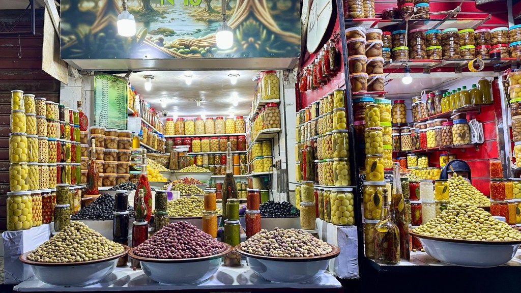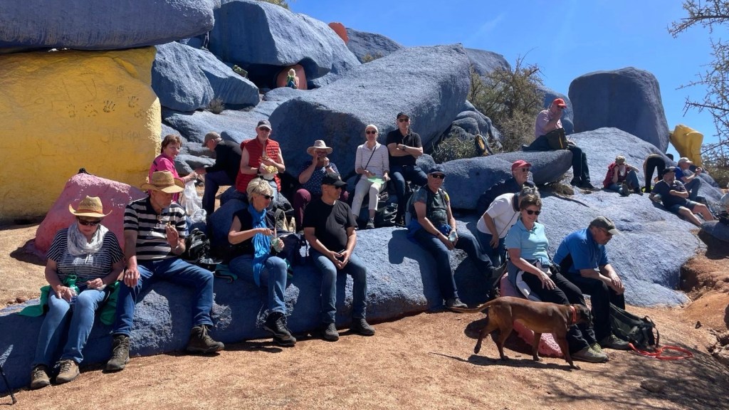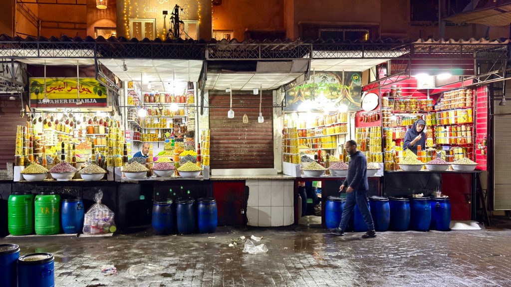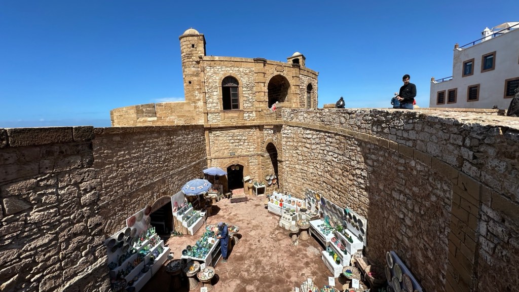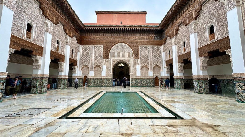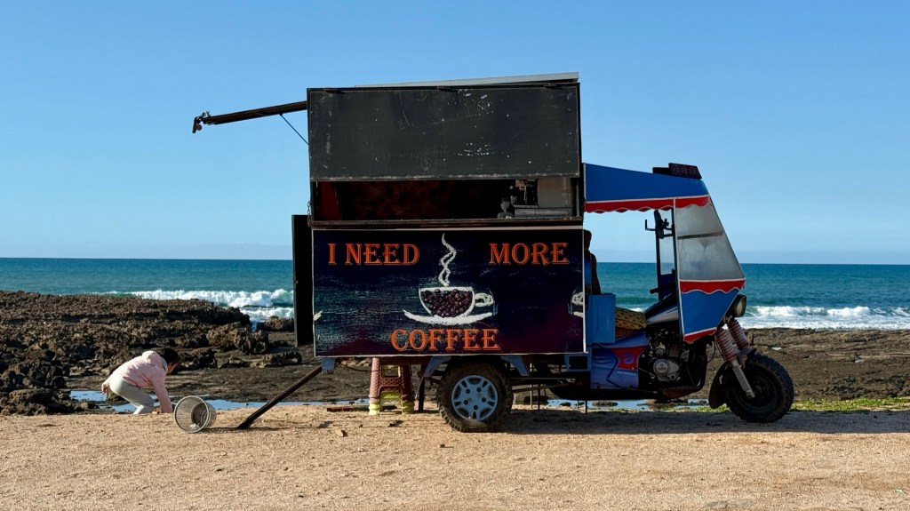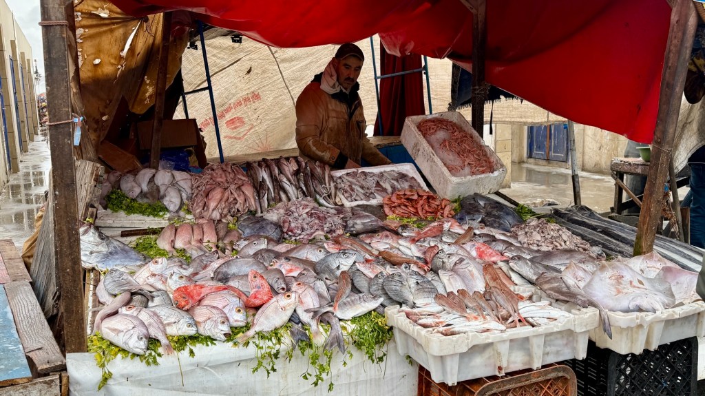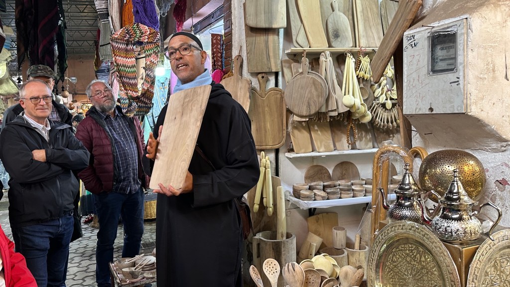 1.3.2025 Nach 300 km (und insgesamt gut 2.500 km) erreichen wir den Treffpunkt der Gruppe für die Marokko-Tour auf dem Campingplatz Valdevaqueros bei Tarifa. Die Stellplätze sind schön, aber durch den Regen der letzten Tage hier sehr matschig. Obwohl die Tour ja erst am nächsten Mittwoch losgeht, sind doch schon einige Teilnehmer hier, und wir hocken zum Kennenlernen schon mal ein paar Stunden vor der Bar des Campingplatzes zusammen. Anschließend machen wir noch einen Strandspaziergang mit Blick auf den afrikanischen Kontinent.2.3.2025 Nach einem ruhigen Vormittag und einer von Dagmar kreierten „Risoella“ (Risotto mit Paella-Reis) laufen wir am Nachmittag zur Duna de Valdevaqueros. Wir besuchen dort den „Hombre de Madera“ (Mann aus Holz), der dem ständigen Wind trotzt und die Aussicht über die Bucht mit vielen Kite-Surfern und den Blick nach Afrika genießt. Anschließend gibt es einen kleinen Umtrunk mit ein paar Mitgliedern der Reisegruppe in der Bar des Campingplatzes.3.3.2025 Angelika und Andreas nehmen uns in ihrem Wohnmobil mit ins 10 km entfernte Tarifa. Zu zweit erkunden wir die Stadt, die aber für uns nicht so viel zu bieten hat. Am besten gefällt uns ein Restaurant am Strand, von dem aus wir den Kite-Surfern bei ihrem spektakulären Treiben zusehen können. Wir gönnen uns für den Rückweg eine Taxifahrt und verbringen den größten Teil des Nachmittags mit der wachsenen Reisegruppe in der Bar des Campingplatzes.4.3.2025 Heute ist der erste Tag unserer gebuchten Marokko-Tour. Vormittags frischen wir alle Wohnmobilsysteme auf. Nachmittags treffen sich alle Teilnehmer, um sich von der Organisatorin Eva in die Tour einstimmen zu lassen. Nach vielen Informationen gibt es dann zur Belohnung Sangria und schließlich eine Riesen-Paella für die 30 Mitreisenden.5.3.2025 Der Wecker klingelt um 7 h, Abfahrt ist um 7:30 h. Wir fahren 45 min zum Hafen von Algeciras, wo wir das Ticket für die „10 h“-Fähre bekommen und uns anstellen. Um 11 h beginnt endlich das Verladen aufs Schiff, kurz nach 12 h fährt das Schiff ab. Nach 90 min, gegen 12:30 h Ortszeit, kommen wir in Tanger Med an und verbringen dann nochmal über 2 Stunden mit Passkontrolle, Zollkontolle und Geldwechsel. Highlight ist das Röntgen der kompletten Fahrzeuge! Nach kurzem Treffen mit der Reiseleitung fahren wir dann noch eine Stunde über die gute Autobahn nach Asilah. Um 16:30 h parken wir auf dem Stellplatz dicht an der Medina ein. Wir machen dort einen Rundgang in der Gruppe und sind schließlich auch beim gemeinsamen Abendessen dabei. Eine laute Sirene kündigt den Sonnenuntergang und das Fastenbrechen an.6.3.2025 Bei Regen brechen wir von Asilah in Richtung Mohammedia auf. Nach 3 Stunden Fahrt über eine moderne Autobahn durch schwer vermüllte Landschaft erreichen wir mittags den am Meer gelegenen Campingplatz „l’Océan Bleu“. Nachmittags erkunden wir ein wenig die Umgebung, abends gehen wir mit der Gruppe in ein Lokal zum „Fastenbrechen“. Ramadan wirkt sich tagsüber schon erheblich aus … viele Geschäfte sind geschlossen, und es ist insgesamt sicher weniger los.7.3.2024 Gegen 8:30 h werden wir abgeholt und mit dem Taxi nach Casablanca gefahren. In der viel zu großen Stadt wollen wir nur die Moschee Hassan II. ansehen 🕌. Sie wurde 1986 bis 1993 erbaut und ist eine der größten Moscheen der Welt, das Minarett ist ca. 200 m hoch. Besonderheit ist auch, dass eine Besichtigung für Nicht-Muslime möglich ist. Uns gefallen auch die vielen schönen Details sehr gut. Am Nachmittag machen wir noch einen kleinen Einkauf auf dem Markt, und am frühen Abend gibt es einen „Stuhlkreis“ der Reisegruppe, wo wir über die Weiterfahrt nach Marrakesch und den Aufenthalt dort informiert werden.8.3.2025 Bei sehr heftigem Regen machen wir uns auf den Weg über die Autobahn nach Marrakesch. Nach 280 km parken wir auf einem großen Parkplatz unmittelbar außerhalb der Stadtmauer ein. Es ist auch am Nachmittag regnerisch und mit gerade 15 Grad viel zu kühl für diese Stadt. Trotzdem sind wir besonders von den Souks mit ihrem bunten Treiben fasziniert. Wir besichtigen auch eine Koranschule aus dem 14. Jahrhundert. Abends gehen wir in einer kleineren Gruppe nochmal los zum Essen. Gerade der große, berühmte Platz „Jemaa el fna“ ist trotz der Nässe und Kälte gut bevölkert. Obststände, Garküchen, Märchenerzähler … alle sind da, nur die Schlangenbeschwörer fehlen, weil es den Kobras offensichtlich zu kalt ist.9.3.2025 Dieser Sonntag hat deutlich besseres Wetter und beginnt um 9:15 h mit einer Lagebesprechung auf dem Wohnmobil-Parkplatz. Anschließend führt uns Mustafa in perfektem Deutsch durch die Medina und die weitläufigen Souks. Es ist alles so bunt und vielfältig! Bei einem Händler für Gewürze und bei einem für Gebäck kaufen wir kräftig ein. Auf dem Rooftop des „Café de France“, das trotz Ramadan für Touristen geöffnet hat, gibt es eine Tajine zum Mittag. Um 15 h haben wir Tickets für den überfüllten „Jardin Majorelle“. Es ist ein schöner, 100 Jahre alter Künstlergarten, der ab 1980 von Yves Saint Laurent und seinem Freund genutzt wurde. Es gibt hier so viele schöne Fotomotive, dass Dagmar die Auswahl wirklich schwer fällt. Den Abend verbringen wir dann zunächst mit der Gruppe in einer Garküche auf dem „Jemaa el fna“ und dann mit Angelika und Andreas bei einem Umtrunk im kleinen Kreis.10.3.2025 Für die 180 km von Marrakesch an die Küste zum Campingplatz „Sidi Kaouki Beach“ brauchen wir gut 3 Stunden … insbesondere in den Ortsdurchfahrten merken wir, dass wir nun wirklich in Marokko sind! Der Stellplatz ist gut, auch wenn wir hier nun zwei weitere Tage keinen funktionierenden Stromanschluss haben … wir freuen uns über die kleine PV-Anlage auf unserem Dach. Wir vertilgen das sehr leckere Gebäck, das wir in Marrakesch gekauft hatten. Nachmittags erkunden wir dann den breiten Sandstrand, der aber ziemlich vermüllt ist. Die vielen herumstehen