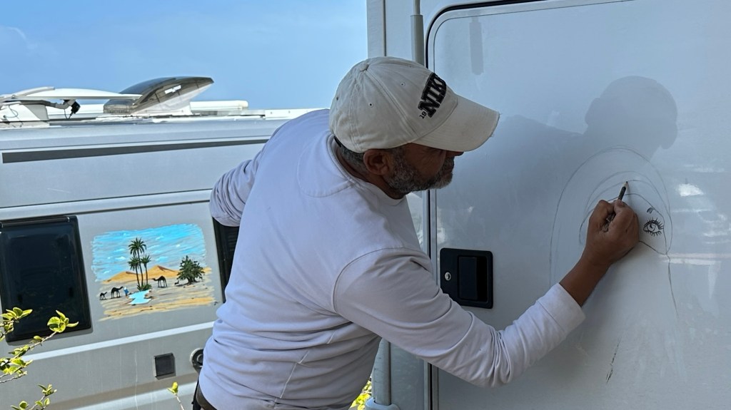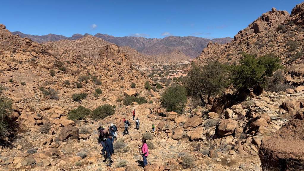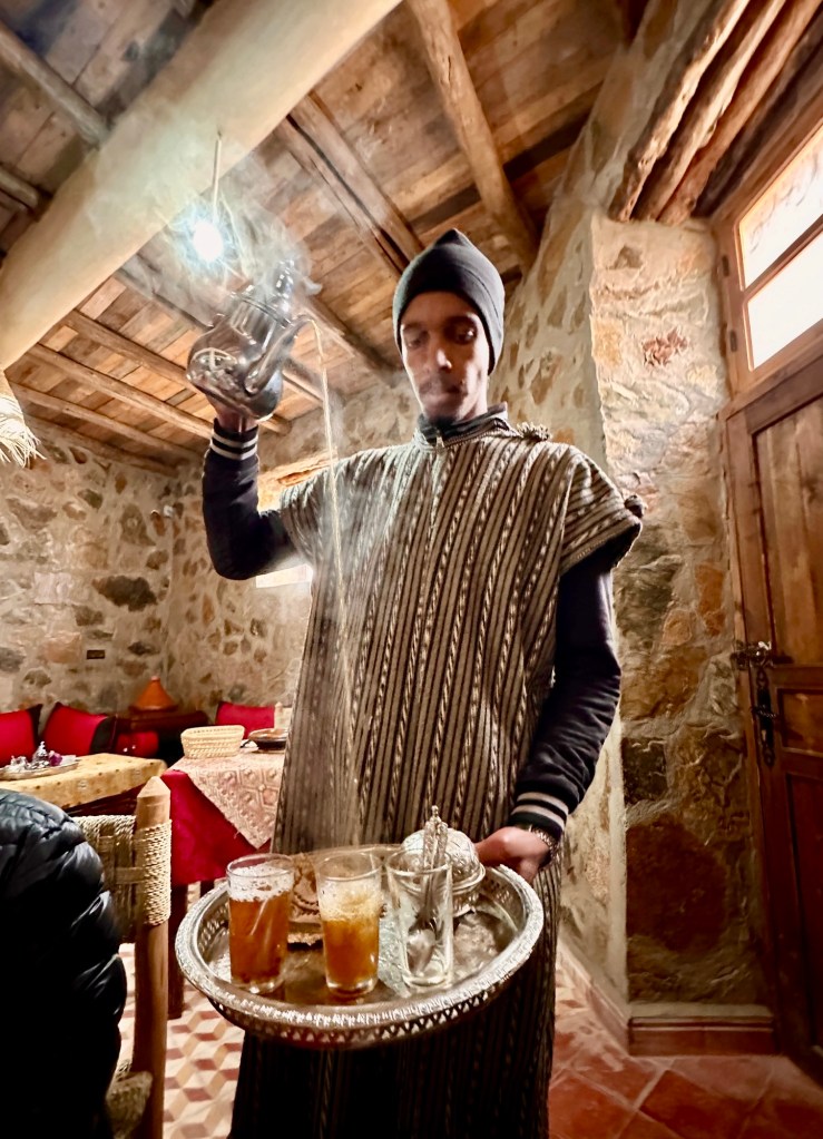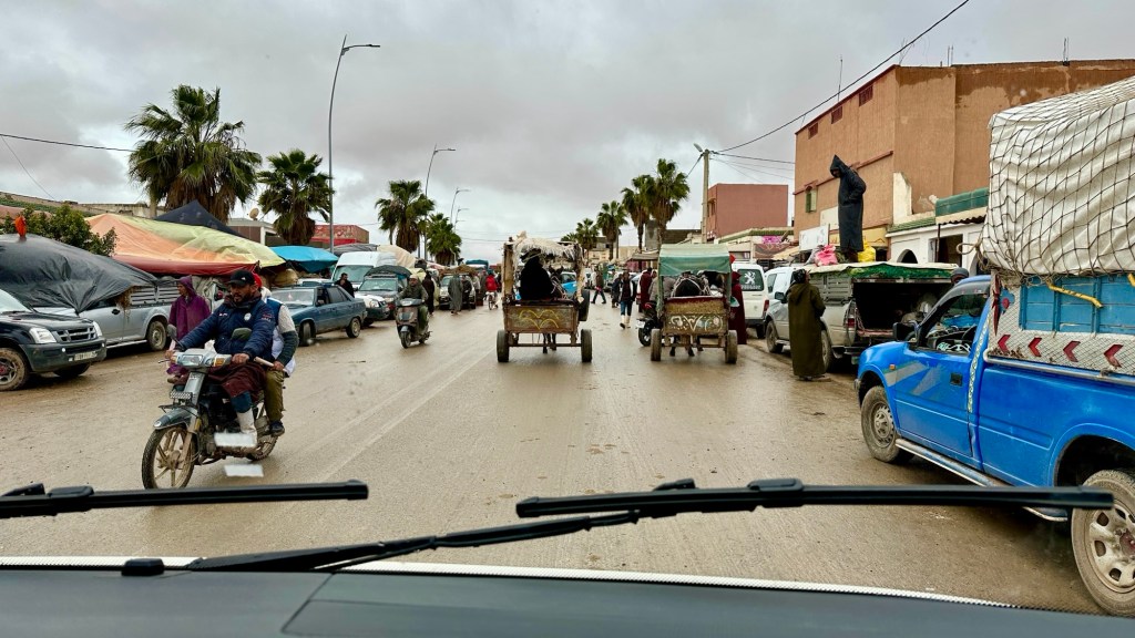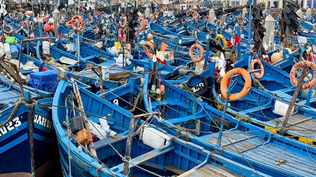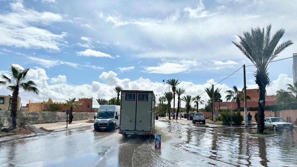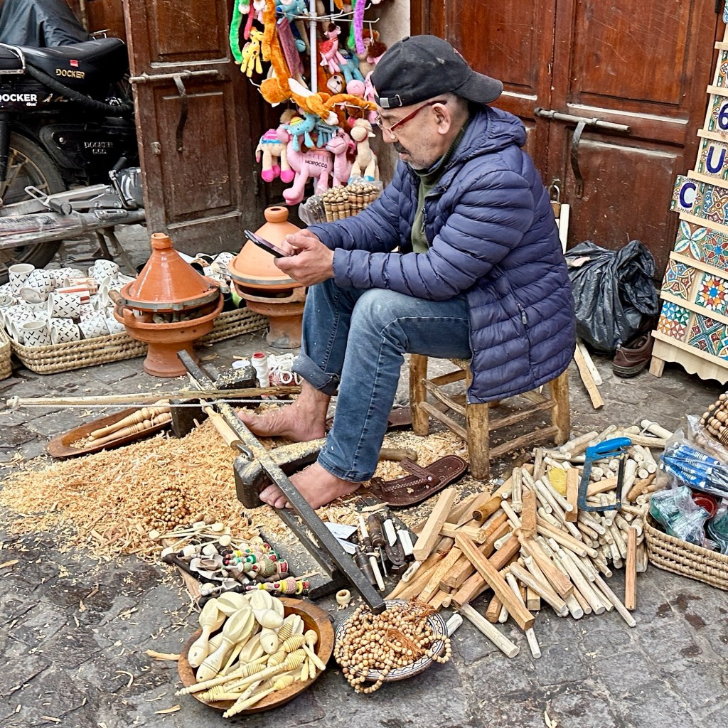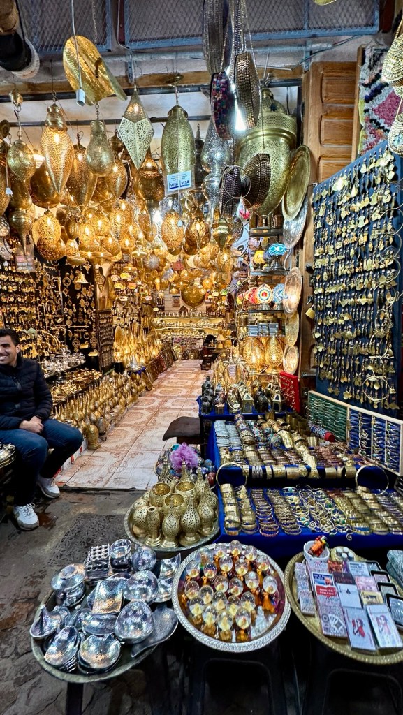 1.3.2025 Nach 300 km (und insgesamt gut 2.500 km) erreichen wir den Treffpunkt der Gruppe für die Marokko-Tour auf dem Campingplatz Valdevaqueros bei Tarifa. Die Stellplätze sind schön, aber durch den Regen der letzten Tage hier sehr matschig. Obwohl die Tour ja erst am nächsten Mittwoch losgeht, sind doch schon einige Teilnehmer hier, und wir hocken zum Kennenlernen schon mal ein paar Stunden vor der Bar des Campingplatzes zusammen. Anschließend machen wir noch einen Strandspaziergang mit Blick auf den afrikanischen Kontinent.2.3.2025 Nach einem ruhigen Vormittag und einer von Dagmar kreierten „Risoella“ (Risotto mit Paella-Reis) laufen wir am Nachmittag zur Duna de Valdevaqueros. Wir besuchen dort den „Hombre de Madera“ (Mann aus Holz), der dem ständigen Wind trotzt und die Aussicht über die Bucht mit vielen Kite-Surfern und den Blick nach Afrika genießt. Anschließend gibt es einen kleinen Umtrunk mit ein paar Mitgliedern der Reisegruppe in der Bar des Campingplatzes.3.3.2025 Angelika und Andreas nehmen uns in ihrem Wohnmobil mit ins 10 km entfernte Tarifa. Zu zweit erkunden wir die Stadt, die aber für uns nicht so viel zu bieten hat. Am besten gefällt uns ein Restaurant am Strand, von dem aus wir den Kite-Surfern bei ihrem spektakulären Treiben zusehen können. Wir gönnen uns für den Rückweg eine Taxifahrt und verbringen den größten Teil des Nachmittags mit der wachsenen Reisegruppe in der Bar des Campingplatzes.4.3.2025 Heute ist der erste Tag unserer gebuchten Marokko-Tour. Vormittags frischen wir alle Wohnmobilsysteme auf. Nachmittags treffen sich alle Teilnehmer, um sich von der Organisatorin Eva in die Tour einstimmen zu lassen. Nach vielen Informationen gibt es dann zur Belohnung Sangria und schließlich eine Riesen-Paella für die 30 Mitreisenden.5.3.2025 Der Wecker klingelt um 7 h, Abfahrt ist um 7:30 h. Wir fahren 45 min zum Hafen von Algeciras, wo wir das Ticket für die „10 h“-Fähre bekommen und uns anstellen. Um 11 h beginnt endlich das Verladen aufs Schiff, kurz nach 12 h fährt das Schiff ab. Nach 90 min, gegen 12:30 h Ortszeit, kommen wir in Tanger Med an und verbringen dann nochmal über 2 Stunden mit Passkontrolle, Zollkontolle und Geldwechsel. Highlight ist das Röntgen der kompletten Fahrzeuge! Nach kurzem Treffen mit der Reiseleitung fahren wir dann noch eine Stunde über die gute Autobahn nach Asilah. Um 16:30 h parken wir auf dem Stellplatz dicht an der Medina ein. Wir machen dort einen Rundgang in der Gruppe und sind schließlich auch beim gemeinsamen Abendessen dabei. Eine laute Sirene kündigt den Sonnenuntergang und das Fastenbrechen an.6.3.2025 Bei Regen brechen wir von Asilah in Richtung Mohammedia auf. Nach 3 Stunden Fahrt über eine moderne Autobahn durch schwer vermüllte Landschaft erreichen wir mittags den am Meer gelegenen Campingplatz „l’Océan Bleu“. Nachmittags erkunden wir ein wenig die Umgebung, abends gehen wir mit der Gruppe in ein Lokal zum „Fastenbrechen“. Ramadan wirkt sich tagsüber schon erheblich aus … viele Geschäfte sind geschlossen, und es ist insgesamt sicher weniger los.7.3.2024 Gegen 8:30 h werden wir abgeholt und mit dem Taxi nach Casablanca gefahren. In der viel zu großen Stadt wollen wir nur die Moschee Hassan II. ansehen 🕌. Sie wurde 1986 bis 1993 erbaut und ist eine der größten Moscheen der Welt, das Minarett ist ca. 200 m hoch. Besonderheit ist auch, dass eine Besichtigung für Nicht-Muslime möglich ist. Uns gefallen auch die vielen schönen Details sehr gut. Am Nachmittag machen wir noch einen kleinen Einkauf auf dem Markt, und am frühen Abend gibt es einen „Stuhlkreis“ der Reisegruppe, wo wir über die Weiterfahrt nach Marrakesch und den Aufenthalt dort informiert werden.8.3.2025 Bei sehr heftigem Regen machen wir uns auf den Weg über die Autobahn nach Marrakesch. Nach 280 km parken wir auf einem großen Parkplatz unmittelbar außerhalb der Stadtmauer ein. Es ist auch am Nachmittag regnerisch und mit gerade 15 Grad viel zu kühl für diese Stadt. Trotzdem sind wir besonders von den Souks mit ihrem bunten Treiben fasziniert. Wir besichtigen auch eine Koranschule aus dem 14. Jahrhundert. Abends gehen wir in einer kleineren Gruppe nochmal los zum Essen. Gerade der große, berühmte Platz „Jemaa el fna“ ist trotz der Nässe und Kälte gut bevölkert. Obststände, Garküchen, Märchenerzähler … alle sind da, nur die Schlangenbeschwörer fehlen, weil es den Kobras offensichtlich zu kalt ist.9.3.2025 Dieser Sonntag hat deutlich besseres Wetter und beginnt um 9:15 h mit einer Lagebesprechung auf dem Wohnmobil-Parkplatz. Anschließend führt uns Mustafa in perfektem Deutsch durch die Medina und die weitläufigen Souks. Es ist alles so bunt und vielfältig! Bei einem Händler für Gewürze und bei einem für Gebäck kaufen wir kräftig ein. Auf dem Rooftop des „Café de France“, das trotz Ramadan für Touristen geöffnet hat, gibt es eine Tajine zum Mittag. Um 15 h haben wir Tickets für den überfüllten „Jardin Majorelle“. Es ist ein schöner, 100 Jahre alter Künstlergarten, der ab 1980 von Yves Saint Laurent und seinem Freund genutzt wurde. Es gibt hier so viele schöne Fotomotive, dass Dagmar die Auswahl wirklich schwer fällt. Den Abend verbringen wir dann zunächst mit der Gruppe in einer Garküche auf dem „Jemaa el fna“ und dann mit Angelika und Andreas bei einem Umtrunk im kleinen Kreis.10.3.2025 Für die 180 km von Marrakesch an die Küste zum Campingplatz „Sidi Kaouki Beach“ brauchen wir gut 3 Stunden … insbesondere in den Ortsdurchfahrten merken wir, dass wir nun wirklich in Marokko sind! Der Stellplatz ist gut, auch wenn wir hier nun zwei weitere Tage keinen funktionierenden Stromanschluss haben … wir freuen uns über die kleine PV-Anlage auf unserem Dach. Wir vertilgen das sehr leckere Gebäck, das wir in Marrakesch gekauft hatten. Nachmittags erkunden wir dann den breiten Sandstrand, der aber ziemlich vermüllt ist. Die vielen herumstehen