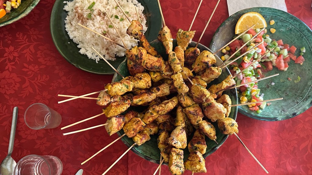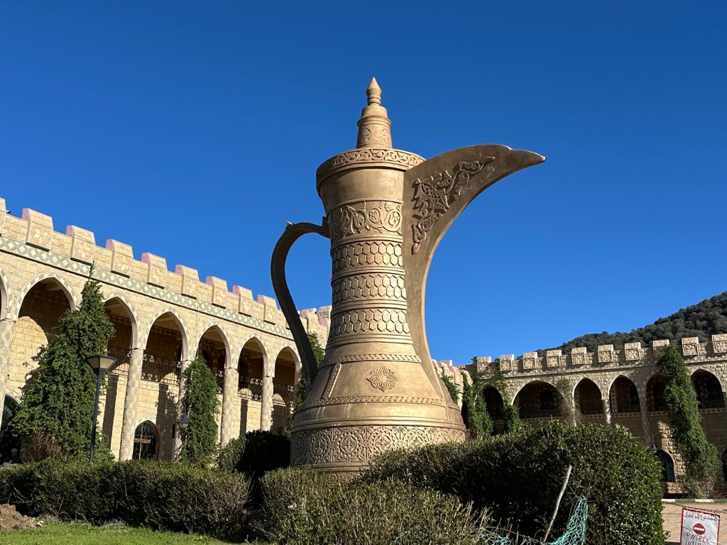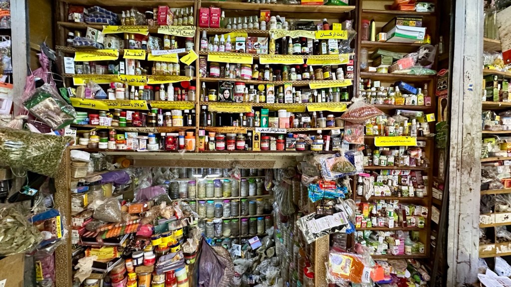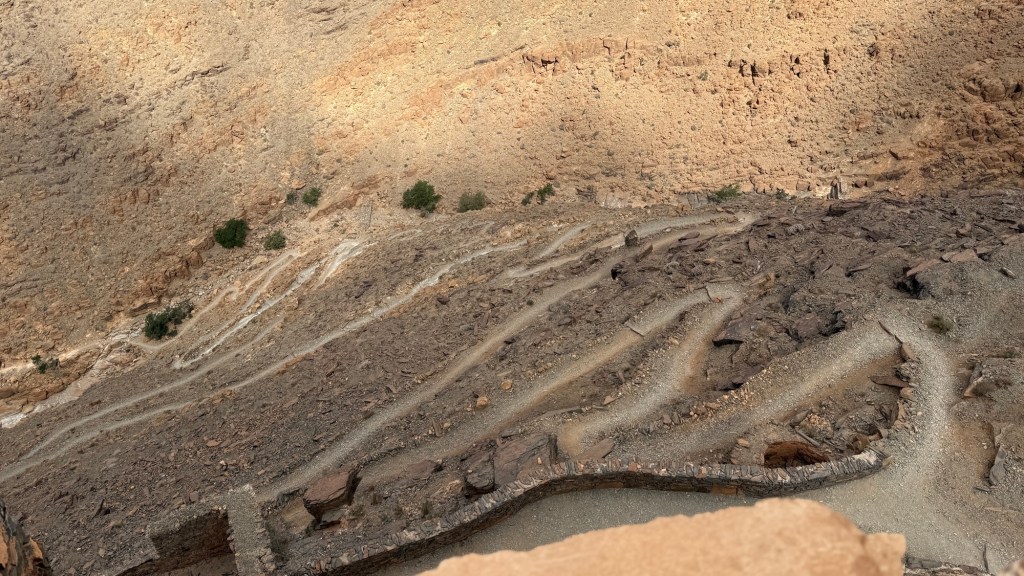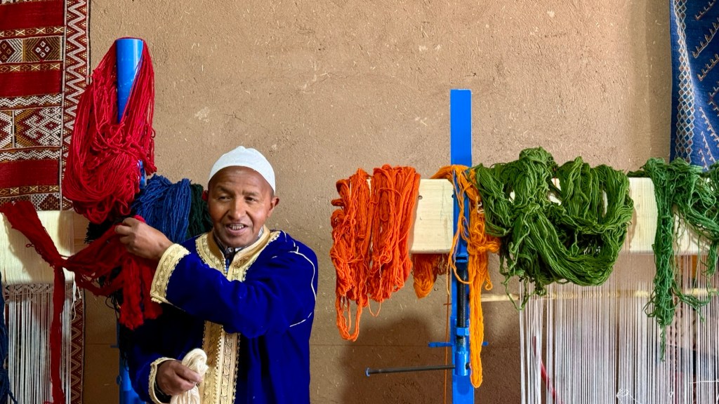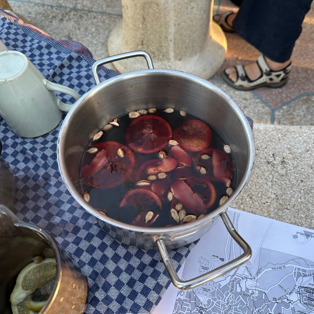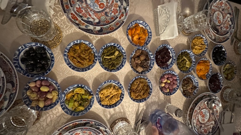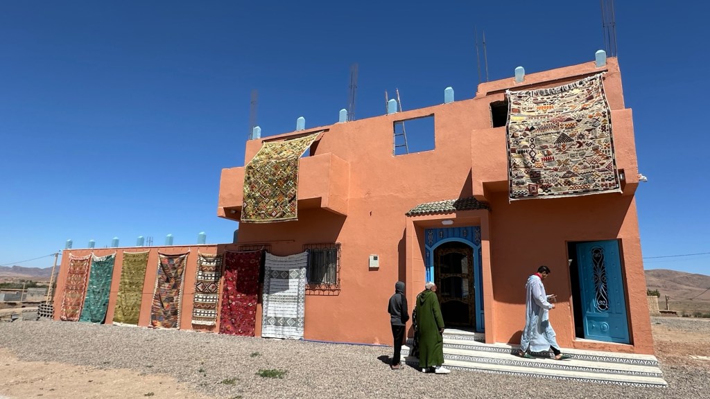 21.3.2025 Am Morgen ziehen wir von unserem Wüstenlager um auf den nahe gelegenen Campingplatz „Auberge El Khaima“ in Mhamid, wo wir sogar einen roten Teppich vors Wohnmobil gelegt bekommen. Um 10 h startet eine Jeep-Tour (genau genommen eine Toyota-Tour) in die Wüste bei Mhamid el Ghizlane. Wir werden in der endlosen Landschaft insgesamt mehr als 100 km durchgerüttelt und besuchen einige Nomaden. Diese sind auf unseren Besuch bestens vorbereitet. Sie verkaufen Souvenirs, bieten Tee an und zeigen uns ihre interessante Art, mit einfachsten Mitteln Brot zu backen. An den größeren Sanddünen, die wir mittags erreichen, ist alles für ein gutes Essen bereit, und auf dem Rückweg lassen sich dann auch noch die Dromedare bereitwillig fotografieren. Leicht erschöpft und verstaubt vom Tourismusprogramm sind wir gegen 17 h zurück auf dem Campingplatz.22.3.2025 Vormittags fahren wir auf guten Straßen und durch beeindruckende Landschaften knapp 200 km nach Agdz. Dabei führt uns die zweite Hälfte des Weges durch das schöne Draa-Tal mit seinen vielen Dattel-Palmen und kargen Bergen. Wir verbringen auf dem Campingplatz „Maison Tensift“ (mit Oasengarten) einen ruhigen Nachmittag. Nach der Reisebesprechung am frühen Abend gibt es im Restaurant des Platzes eine leckere Tajine, dieses Mal mit Hackfleischbällchen. Manfred überredet noch einen marokkanischen Bediensteten dazu, uns eine Flasche Weißwein zu besorgen … der Preis war allerdings mit „Ramadan-Zuschlag“ recht hoch. Den kostbaren Tropfen genießen wir zu sechst diskret in unserem Wohnmobil.„Buttered Camel with Biryani“„Nougat Frozen Candied Fruit Almond“23.3.2025 Insgesamt fahren wir heute 150 km durch die Berglandschaft. In Taznakht machen wir Halt, um etwas über die Teppichproduktion in Marokko zu erfahren … natürlich inklusive Kaufgelegenheit (die wir aber nicht nutzen). Mit schönen Blicken auf die schneebedeckten Berge des Hohen Atlas geht es anschließend weiter nach Ait Ben Haddou, wo wir bei starkem Wind Quartier auf einem einfachen Stellplatz beziehen. Am Nachmittag besichtigen wir das hiesige Lehmdorf, das als Unesco-Weltkulturerbe ein touristischer Hotspot in Marokko ist. Der Wind mausert sich zum Sturm, der Sandwolken durch die Landschaft treibt und unsere Besichtigung etwas ungemütlich macht. Den stürmischen Abend verbringen wir in der inzwischen etablierten Sechserrunde (mit Angelika, Andreas, Sigrid und Gerd) im Restaurant „Tanmirt“, wo wir das bisher mit Abstand beste Essen dieser Reise bekommen!24.3.2025 Parallel zur schneebedeckten Bergkette des Hohen Atlas fahren wir 160 km in die Dades-Schlucht, vorbei an kunstvoll beladenen Lkw und Minaretten mit Storchennestern. In der beeindruckenden Schlucht gibt es viele Hotels und Campingplätze, und unsere Gruppe bekommt ein Quartier am „Hotel Majorel“ mit bester Aussicht. Am Nachmittag wandern wir durch die wunderbar grüne Talsohle und erkunden den Canyon eines trockenen Nebenarms des Dades. Vom Wohnmobil aus haben wir einen wunderbaren Blick auf die sonnenbeschienenen Berge. Es wird ein schöner Abend bei unseren Nachbarn, deren Weinvorräte unerschöpflich sind. Das alles wird nur getrübt dadurch, dass Dagmar beim Zurückgehen einen der vorm Nachbar-WoMo abgestellten Schuhe vermisst …25.3.2025 In der Nacht ist es windig und kalt (wir sind auf 1670 m Höhe), es regnet und gewittert sogar. Am Morgen scheint dann aber wieder die Sonne, und Dagmar kann auch gleich den Schuhklau-Übeltäter samt seiner Beute stellen. Wir beschließen, für die weitere Erkundung der Dades-Schlucht unser Wohnmobil zu schonen und stattdessen mit den eBikes zu fahren. Bei mäßigem Autoverkehr radeln wir auch die wunderbaren Serpentinen hinauf und genießen die Aussicht. Noch etwas weiter im Tal (nach 16 km) erreichen wir die engste Stelle, an der sich größere Fahrzeuge aneinander vorbei mühen. Auf dem Rückweg genießen wir marokkanischen Pfefferminztee und bekommen auch eine Tajine mit Gemüse und Ei als spätes Frühstück. Zurück am Wohnmobil geht es dann nur gut 70 km weiter in die Todra-Schlucht, wo unsere Gruppe einmal mehr auf dem „Auberge Camping Atlas“ unter Palmen steht.26.3.2025 Heute ist „Ruhetag“, und wir fahren nicht weiter. Der Pool des Stellplatzes wirkt in der Sonne zwar verlockend, aber es sind trotzdem nur 15 Grad Lufttemperatur. Nach umfassender Abwägung verzichten wir auf das kühle Bad. Stattdessen queren wir zu Fuß das Flüsschen Todra, um dort den Oasengarten mit seinen Wasserrinnen, Dattelpalmen und etwas Landwirtschaft zu erkunden. Nachmittags machen wir noch eine kleine Radtour. Nur gut 5 km entfernt befindet sich die bekannte Engstelle der Todra-Schlucht mit bis zu 300 m hohen Steilwänden … ein Paradies für Kletterer.27.3.2025 Bereits um halb neun starten wir unsere Fahrt über gut 200 km in Richtung Erg Chebbi. Erster Halt ist das Berber-Museum in Tinejdad, wo wir viel über die Berber-Kultur erfahren. Dort gibt es auch Erklärungen zu den Khettaras, die wir uns beim zweiten Stopp ansehen. Es sind unterirdische Wasserkanäle, mit denen die Grundwasserschicht „angezapft“ wurde und dann das Wasser mit geringem Gefälle in Richtung einer Talsohle bis zur Oberfläche geleitet wurde. „Maulwurfshügel“ an der Oberfläche lassen den Verlauf gut erkennen. Nach einer Wüstenpizza und einem Dattel-Großeinkauf in Rissani fahren wir (ausnahmsweise im Konvoi) zum Hotel „Nomad Palace“ in Merzouga. Wir sind dort nah an den Sanddünen und lassen uns auf einen Dromedarritt ein. Mit sanftem Geschaukel geht es in die Dünen, um dort den Sonnenuntergang zu beobachten. Auch wenn das hier alles sehr „touristifiziert“ ist: Wir haben viel Spaß, und es ist ein schönes Erlebnis!28.3.2025 Auf dem Weg über gut 200 km in Ziz-Tal besuchen wir eine Fossilien-Schleiferei. Wir sind von der Auswahl und besonders von den großen Objekten sehr beeindruckt. Vom Stellplatz „Jurassic“ aus macht Dagmar am Nachmittag eine Wande