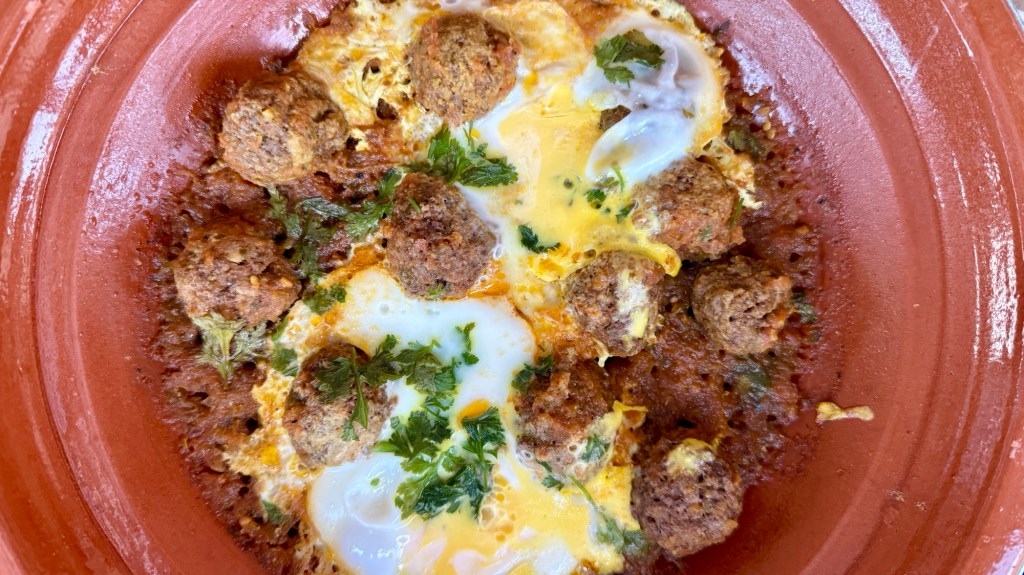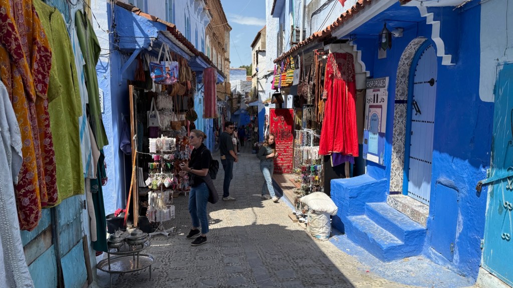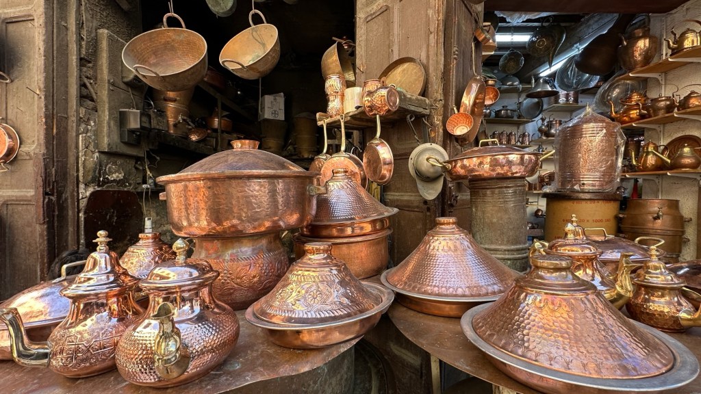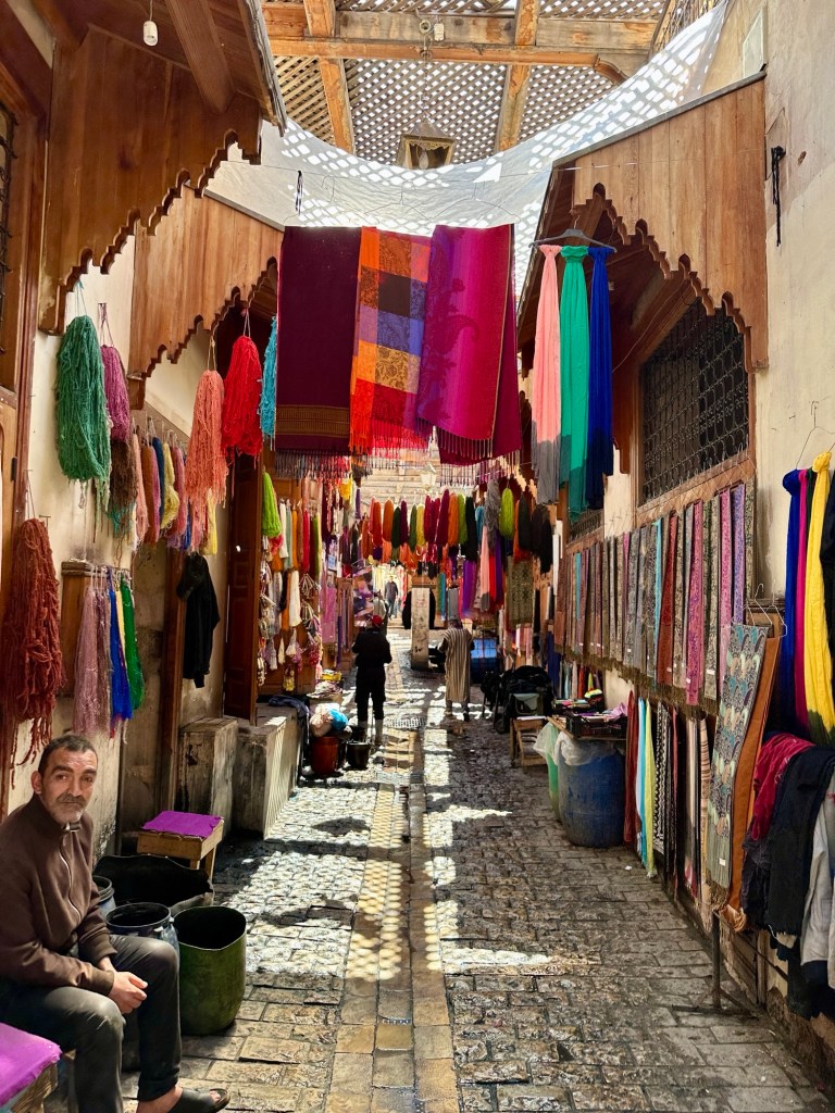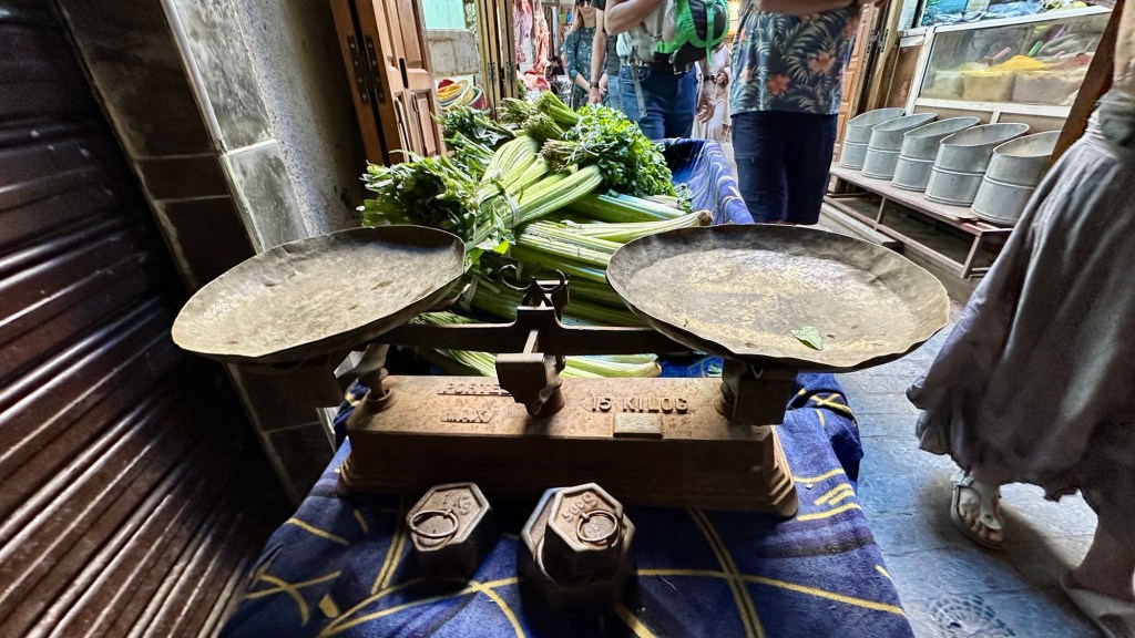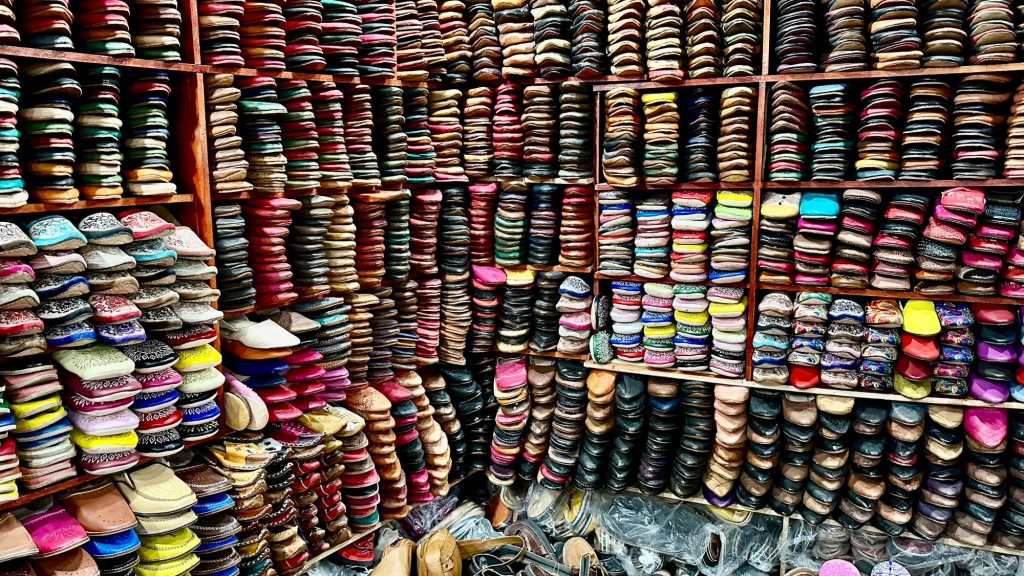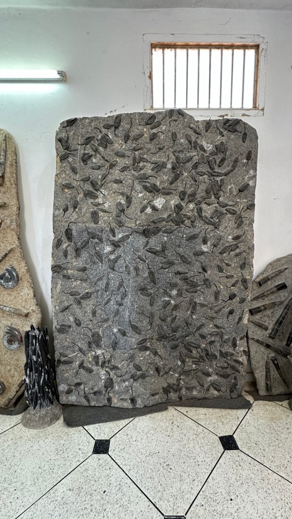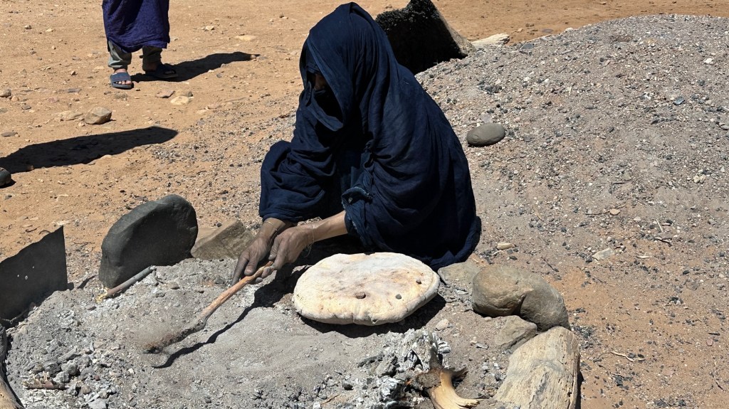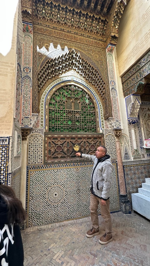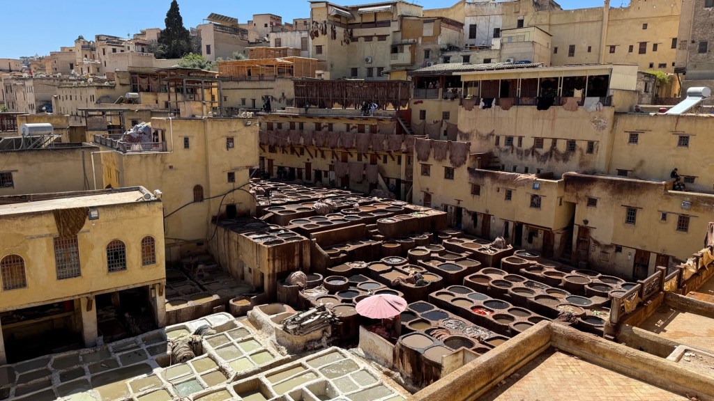 21.3.2025 Am Morgen ziehen wir von unserem Wüstenlager um auf den nahe gelegenen Campingplatz „Auberge El Khaima“ in Mhamid, wo wir sogar einen roten Teppich vors Wohnmobil gelegt bekommen. Um 10 h startet eine Jeep-Tour (genau genommen eine Toyota-Tour) in die Wüste bei Mhamid el Ghizlane. Wir werden in der endlosen Landschaft insgesamt mehr als 100 km durchgerüttelt und besuchen einige Nomaden. Diese sind auf unseren Besuch bestens vorbereitet. Sie verkaufen Souvenirs, bieten Tee an und zeigen uns ihre interessante Art, mit einfachsten Mitteln Brot zu backen. An den größeren Sanddünen, die wir mittags erreichen, ist alles für ein gutes Essen bereit, und auf dem Rückweg lassen sich dann auch noch die Dromedare bereitwillig fotografieren. Leicht erschöpft und verstaubt vom Tourismusprogramm sind wir gegen 17 h zurück auf dem Campingplatz.22.3.2025 Vormittags fahren wir auf guten Straßen und durch beeindruckende Landschaften knapp 200 km nach Agdz. Dabei führt uns die zweite Hälfte des Weges durch das schöne Draa-Tal mit seinen vielen Dattel-Palmen und kargen Bergen. Wir verbringen auf dem Campingplatz „Maison Tensift“ (mit Oasengarten) einen ruhigen Nachmittag. Nach der Reisebesprechung am frühen Abend gibt es im Restaurant des Platzes eine leckere Tajine, dieses Mal mit Hackfleischbällchen. Manfred überredet noch einen marokkanischen Bediensteten dazu, uns eine Flasche Weißwein zu besorgen … der Preis war allerdings mit „Ramadan-Zuschlag“ recht hoch. Den kostbaren Tropfen genießen wir zu sechst diskret in unserem Wohnmobil.„Buttered Camel with Biryani“„Nougat Frozen Candied Fruit Almond“23.3.2025 Insgesamt fahren wir heute 150 km durch die Berglandschaft. In Taznakht machen wir Halt, um etwas über die Teppichproduktion in Marokko zu erfahren … natürlich inklusive Kaufgelegenheit (die wir aber nicht nutzen). Mit schönen Blicken auf die schneebedeckten Berge des Hohen Atlas geht es anschließend weiter nach Ait Ben Haddou, wo wir bei starkem Wind Quartier auf einem einfachen Stellplatz beziehen. Am Nachmittag besichtigen wir das hiesige Lehmdorf, das als Unesco-Weltkulturerbe ein touristischer Hotspot in Marokko ist. Der Wind mausert sich zum Sturm, der Sandwolken durch die Landschaft treibt und unsere Besichtigung etwas ungemütlich macht. Den stürmischen Abend verbringen wir in der inzwischen etablierten Sechserrunde (mit Angelika, Andreas, Sigrid und Gerd) im Restaurant „Tanmirt“, wo wir das bisher mit Abstand beste Essen dieser Reise bekommen!24.3.2025 Parallel zur schneebedeckten Bergkette des Hohen Atlas fahren wir 160 km in die Dades-Schlucht, vorbei an kunstvoll beladenen Lkw und Minaretten mit Storchennestern. In der beeindruckenden Schlucht gibt es viele Hotels und Campingplätze, und unsere Gruppe bekommt ein Quartier am „Hotel Majorel“ mit bester Aussicht. Am Nachmittag wandern wir durch die wunderbar grüne Talsohle und erkunden den Canyon eines trockenen Nebenarms des Dades. Vom Wohnmobil aus haben wir einen wunderbaren Blick auf die sonnenbeschienenen Berge. Es wird ein schöner Abend bei unseren Nachbarn, deren Weinvorräte unerschöpflich sind. Das alles wird nur getrübt dadurch, dass Dagmar beim Zurückgehen einen der vorm Nachbar-WoMo abgestellten Schuhe vermisst …25.3.2025 In der Nacht ist es windig und kalt (wir sind auf 1670 m Höhe), es regnet und gewittert sogar. Am Morgen scheint dann aber wieder die Sonne, und Dagmar kann auch gleich den Schuhklau-Übeltäter samt seiner Beute stellen. Wir beschließen, für die weitere Erkundung der Dades-Schlucht unser Wohnmobil zu schonen und stattdessen mit den eBikes zu fahren. Bei mäßigem Autoverkehr radeln wir auch die wunderbaren Serpentinen hinauf und genießen die Aussicht. Noch etwas weiter im Tal (nach 16 km) erreichen wir die engste Stelle, an der sich größere Fahrzeuge aneinander vorbei mühen. Auf dem Rückweg genießen wir marokkanischen Pfefferminztee und bekommen auch eine Tajine mit Gemüse und Ei als spätes Frühstück. Zurück am Wohnmobil geht es dann nur gut 70 km weiter in die Todra-Schlucht, wo unsere Gruppe einmal mehr auf dem „Auberge Camping Atlas“ unter Palmen steht.26.3.2025 Heute ist „Ruhetag“, und wir fahren nicht weiter. Der Pool des Stellplatzes wirkt in der Sonne zwar verlockend, aber es sind trotzdem nur 15 Grad Lufttemperatur. Nach umfassender Abwägung verzichten wir auf das kühle Bad. Stattdessen queren wir zu Fuß das Flüsschen Todra, um dort den Oasengarten mit seinen Wasserrinnen, Dattelpalmen und etwas Landwirtschaft zu erkunden. Nachmittags machen wir noch eine kleine Radtour. Nur gut 5 km entfernt befindet sich die bekannte Engstelle der Todra-Schlucht mit bis zu 300 m hohen Steilwänden … ein Paradies für Kletterer.27.3.2025 Bereits um halb neun starten wir unsere Fahrt über gut 200 km in Richtung Erg Chebbi. Erster Halt ist das Berber-Museum in Tinejdad, wo wir viel über die Berber-Kultur erfahren. Dort gibt es auch Erklärungen zu den Khettaras, die wir uns beim zweiten Stopp ansehen. Es sind unterirdische Wasserkanäle, mit denen die Grundwasserschicht „angezapft“ wurde und dann das Wasser mit geringem Gefälle in Richtung einer Talsohle bis zur Oberfläche geleitet wurde. „Maulwurfshügel“ an der Oberfläche lassen den Verlauf gut erkennen. Nach einer Wüstenpizza und einem Dattel-Großeinkauf in Rissani fahren wir (ausnahmsweise im Konvoi) zum Hotel „Nomad Palace“ in Merzouga. Wir sind dort nah an den Sanddünen und lassen uns auf einen Dromedarritt ein. Mit sanftem Geschaukel geht es in die Dünen, um dort den Sonnenuntergang zu beobachten. Auch wenn das hier alles sehr „touristifiziert“ ist: Wir haben viel Spaß, und es ist ein schönes Erlebnis!28.3.2025 Auf dem Weg über gut 200 km in Ziz-Tal besuchen wir eine Fossilien-Schleiferei. Wir sind von der Auswahl und besonders von den großen Objekten sehr beeindruckt. Vom Stellplatz „Jurassic“ aus macht Dagmar am Nachmittag eine Wande