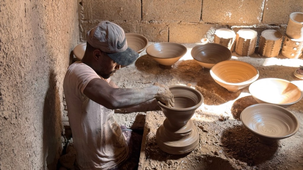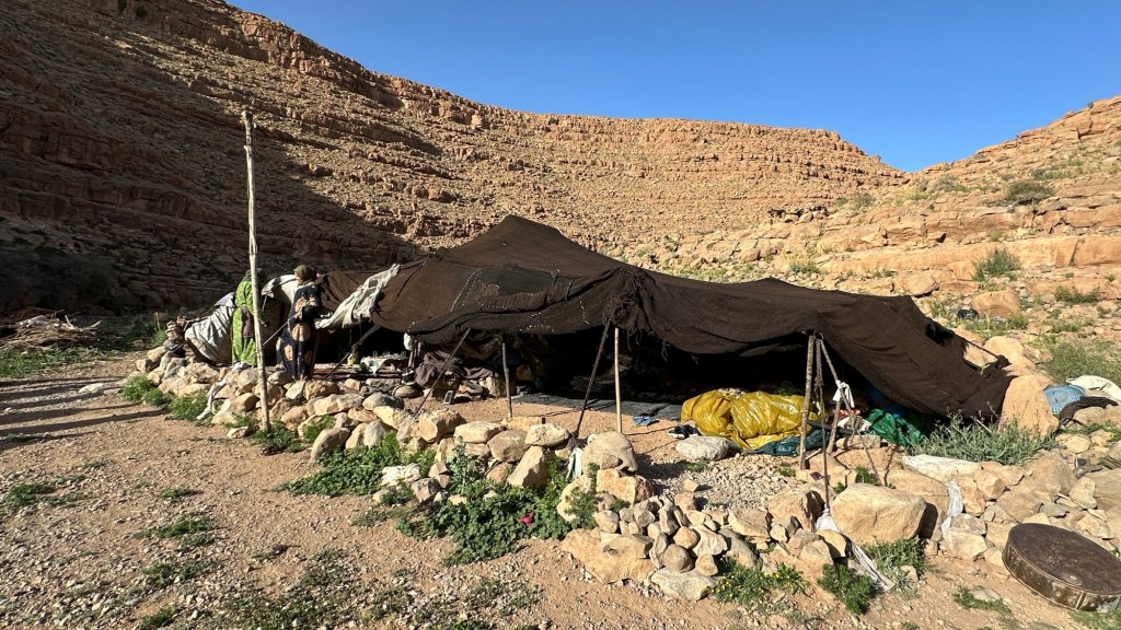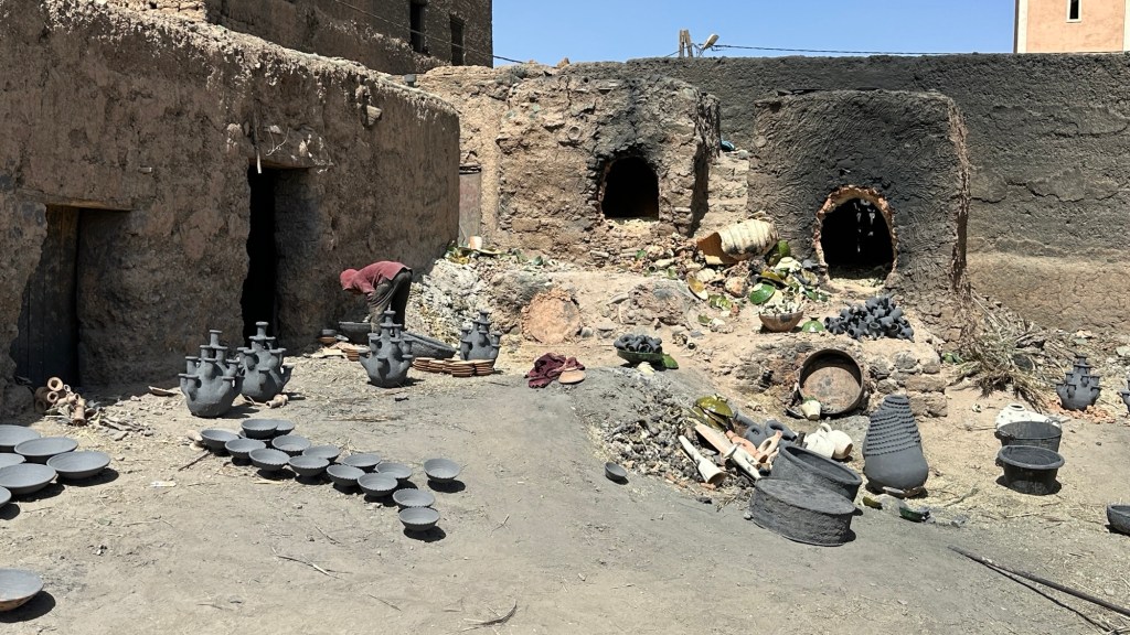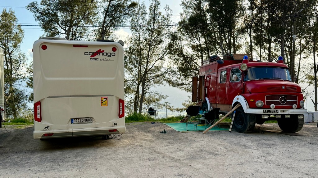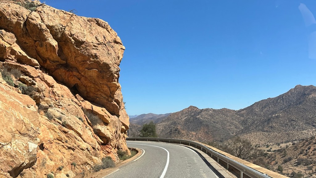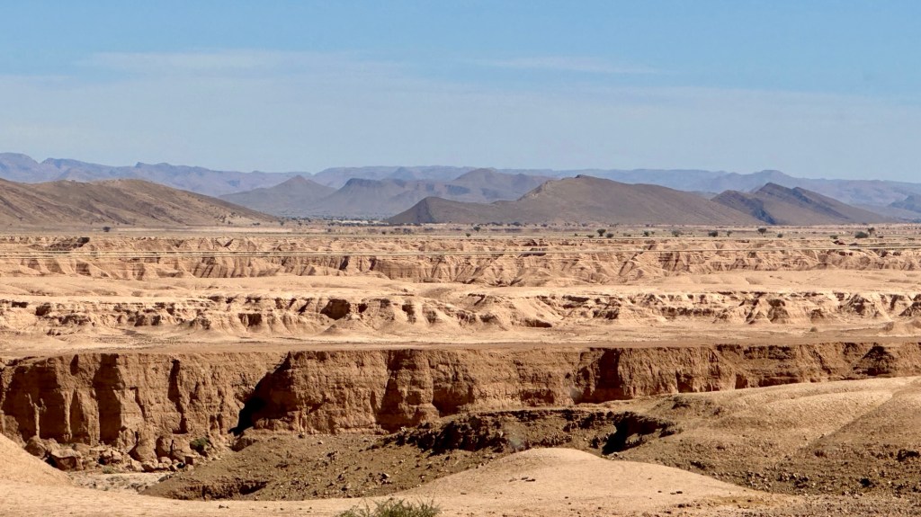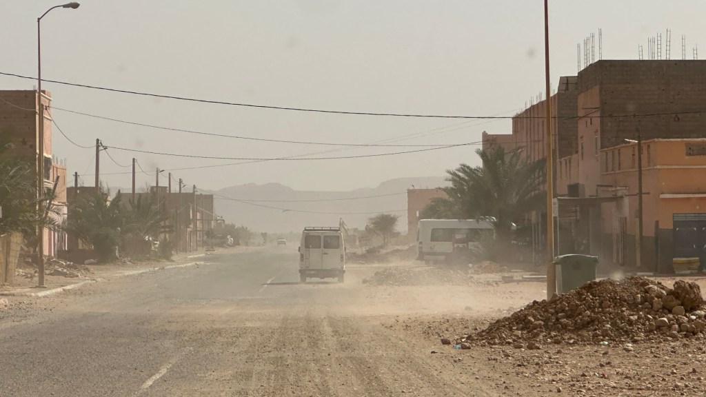 16.3.2025 Um 9 h starten wir unsere Fahrt von Tafraout nach Amtoudi. Nach 40 km ist plötzlich die Straße wegen eines Felsrutsches gesperrt. Nach einiger Konsultation mit Mitreisenden und Reiseleitung nehmen wir dann den Umweg über Tiznit, und so werden aus den eigentlich 138 km nun 202 km Fahrt. Nach gut 4 Stunden schönem Landschaftskino kommen wir im Berberdorf Amtoudi an. Während Manfred sich von der Fahrt erholt, startet Dagmar gleich nach der Ankunft in eine dreistündige staubige Wanderung durch eine spektakuläre Canyon-Landschaft und zu den Quellen, die diese ansonsten karge Umgebung etwas fruchtbar machen.17.3.2025 Ab 9:30 h ist Cardio-Training angesagt: Wir steigen hinauf zur 200 m über uns liegenden Speicherburg, in der bis in die 1950er Jahre hinein Berberfamilien aus der Umgebung ihr Hab und Gut sicher einlagern konnten. Nach dem Mittagessen fahren wir etwa 60 km zum südlichsten Punkt unserer Reise. Die Wohnmobile unserer Gruppe treffen sich in einem ausgetrockneten Flussbett, um gemeinsam auf den Übernachtungsplatz beim Dorf Imi Ouzlag zu rollen. Der Reiseveranstalter hat dort den Besuch von Hassan organisiert, in dessen Haus wir mit einem Tee und einigen Leckereien begrüßt werden. Die Einfachheit des Hauses und seiner Ausstattung machen die Situation der Berber hier sehr deutlich. Dagmar lässt sich von Hassans Nachbarin ein hübsches Henna-Tatoo auf den Arm malen, während Manfred die LNB der Sat-Schüssel um 23 Grad verdreht, damit wir mal wieder Astra empfangen und Nachrichten schauen können. Es folgt ein Rundgang durch den Oasengarten der 50-köpfigen Dorfgemeinschaft und dann ein leckeres Abendessen mit Couscous im Haus von Hassan.18.3.2025 Der erste Teil der Strecke ins knapp 200 km entfernte Tata ist etwas holprig, aber dann können wir zügig durch die weite, menschenleere Landschaft fahren. Dromedar-Warnschilder haben hier wohl ihre Berechtigung, und Manfred staunt über den bei Tata kilometerlang angelegten Radweg. Wir kommen mittags auf dem komfortablen Stellplatz „Palmier“ an. Es ist Halbzeit unserer Tour und ein bisschen Putzen angesagt. Abends feiern wir das Bergfest in der Gruppe. Das Fleisch auf dem Grill besorgt der Veranstalter, und jeder bringt etwas fürs Beilagenbuffet mit. Wir sind bis hierher mit unserer Tour sehr zufrieden und freuen uns auf die zweite Hälfte der Reise!19.3.2025 Es geht wieder über sehr gute Nationalstraßen ins 140 km entfernte Foum Zguid (Camping Khayma). Wir machen unterwegs Halt an einem Fluss, der einen tiefen Canyon gebildet hat. Den Nachmittag verbringen wir unter Palmen am Wohnmobil, abends gibt es noch ein Tajine-Essen.Foto: Gerd K.20.3.2025 Wir fahren morgens auf guten Straßen weiter durch weite Landschaft … über 100 km gibt es hier keine einzige Ortschaft. In Tamegroute führt uns Abdul durch den sehr ärmlichen Ort, zu einer alten Bibliothek und in eine Töpferei, die noch immer nach einfachsten Methoden arbeitet. Geschäfte bieten die vielfältigen Produkte an, die aber durchweg recht grob und wenig sorgfältig bearbeitet sind. Nach nochmal einer Stunde Fahrt fahren wir kurz vor Mhamid mit der ganzen Reisegruppe in die Sandwüste. Zunächst fegt uns der starke Wind den Sand durch alle Ritzen ins Wohnmobil. Später lässt der Wind zum Glück nach, und wir können die Wüste und den Sternenhimmel an einem Lagerfeuer und mit moderner Berbermusik rundherum genießen!