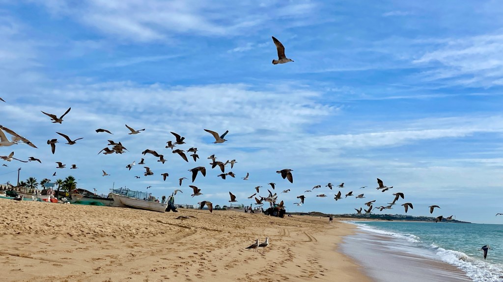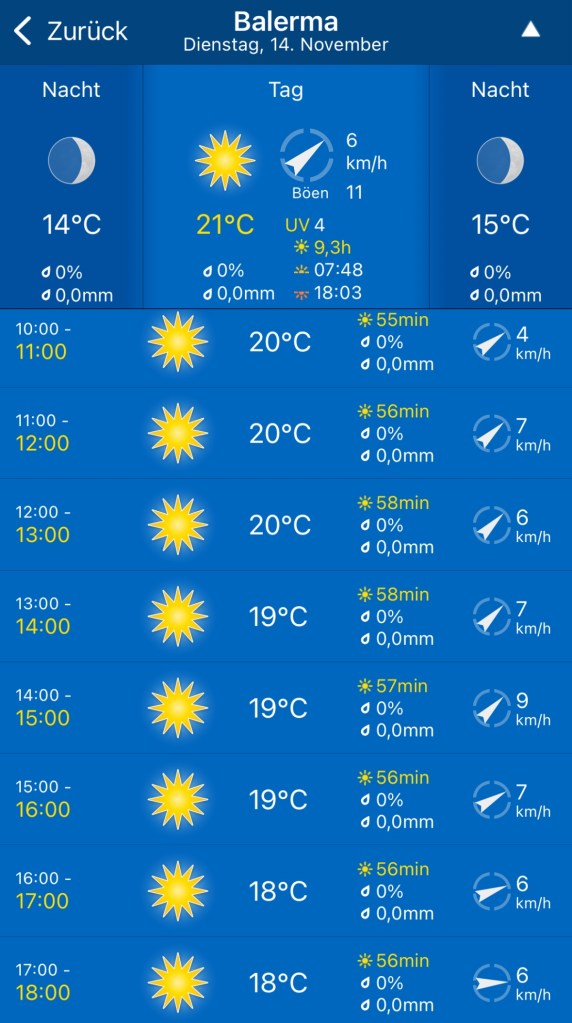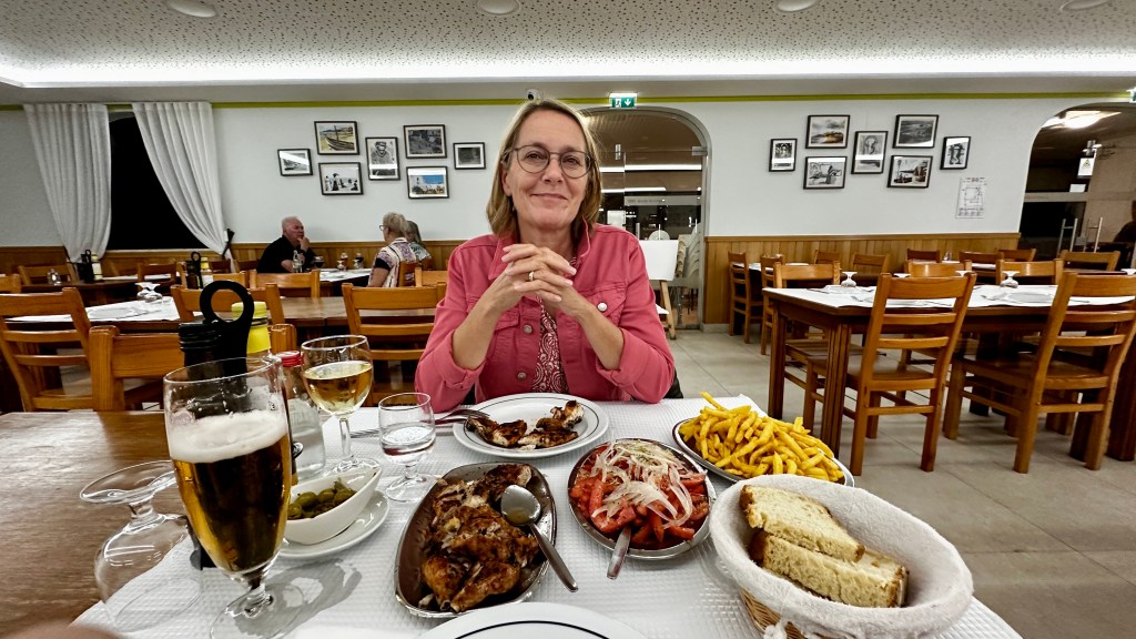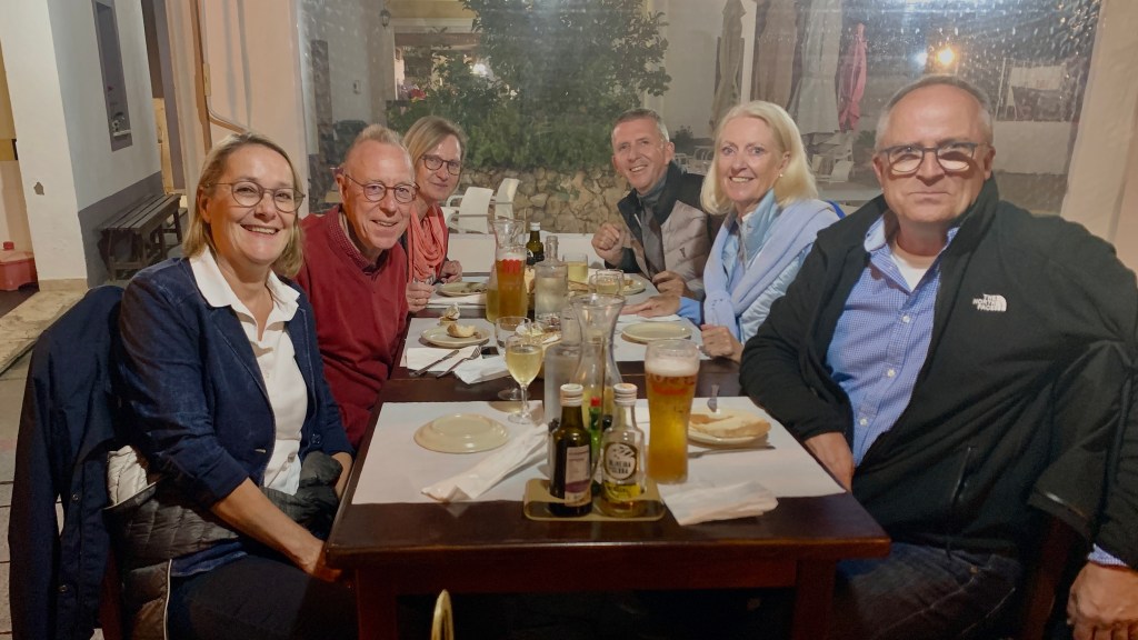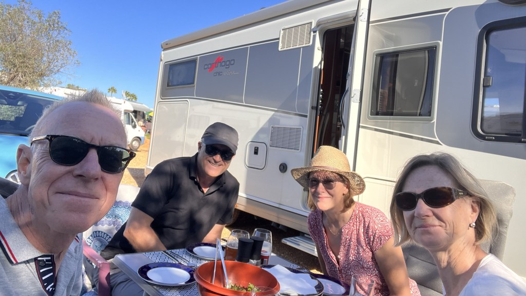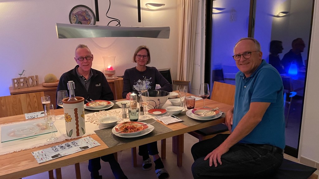 01.11.2023 Wir kommen zum Glück gut wieder aus dem Stellplatz heraus und machen uns auf die knapp 200 km Fahrt durchs Alentejo bis ins vertraute Armação de Pêra. Wie bei unseren beiden letzten Wohnmobilreisen hierher bekommen wir einen Stellplatz auf dem „Algarve Camping Car Park“. Am Nachmittag machen wir noch einen kleinen Spaziergang ans Meer und kaufen das Nötigste ein.2.11.2023 Am Vormittag holen wir einen kleinen, himmelblauen Leihwagen ab, mit dem wir erst einmal einen Großeinkauf machen. Nach dem Mittagessen im Wohnmobil nimmt Manfred dann online an einer Sitzung der Stiftung Heureka in Berlin teil. Und am Abend besuchen wir Chris und Birgit, um uns bei leckerem Essen über die Ereignisse der letzten Wochen auszutauschen.3.11.2023 Der Tag beginnt mit leckeren Pastéis de Nata, die uns an der Wohnmobiltür verkauft werden. Es folgt ein gutes Mittagessen im Strandlokal (Estrela do Mar) und dann ein ausgiebiger Rundgang, zuerst am Strand entlang Richtung Salgados und dann auf dem neuen Holzsteg in den Dünen zurück. Unsere Kalorienbilanz ist heute trotz der Wanderung geringfügig im Plus, denn abends treffen wir uns schon wieder mit unseren Freunden zur gegrillten Dorade in einem Restaurant. Wir lernen dort Astrid und Andreas kennen. Den Lilien hilft die Anteilnahme während des Essens leider nichts … sie verlieren 1:2 gegen Bochum.4.11.2023 Es ist ein ruhiger Tag bei mäßigem Wetter. Außer einem Strandspaziergang mit Chris und Birgit und einer Folge von „The Voice“ am Abend gibt es nichts zu berichten.(Foto: Chris)5.11.2023 Wir haben heute frei, es ist ja Sonntag 🤗. Am Abend sind wir bei Chris und Birgit zusammen mit anderen Freunden zu einem leckeren Raclette eingeladen. Es ist eine Runde mit interessanten Menschen und guten Gesprächen. Beim Rückweg zum Stellplatz bestaunen wir den Sternenhimmel über Armação de Pêra.6.11.2023 Mit unserem Leihwagen machen wir einen Ausflug in die Monchique-Berge. Dort ist gerade erst im Oktober eine Holztreppenanlage samt Hängebrücke eröffnet worden (Passadiço do Barranco do Demo). Wir nutzen sie, um von einem außerhalb gelegenen Parkplatz in den kleinen Ort Alferce zu kommen. In der einzigen geöffneten Bar stärken wir uns mit einem Imbiss unter Einheimischen. Man trinkt zum Kaffee einen Medronho. Dessen Ausgangsprodukt sind die schönen roten Früchte des Erdbeerbaums, der hier weit verbreitet ist. 7.11.2023 Wir investieren 14 € für je zwei Runden in die Waschmaschine und den Trockner unseres Vetrauens. Während das läuft, sehen wir uns nochmal etwas mehr auf dem farbenfrohen Stellplatz um. Am späten Nachmittag besuchen wir noch das Algarve Shopping Center und danach das Restaurant „O Ribeirinho“.8.11.2023 Das Wetter hat sich recht gut entwickelt, und uns zieht es an den Strand. Nach dem Mittagessen im Strandlokal gibt es noch ein kurzes Sonnenbad. Zum Baden ist es uns aber doch zu kalt.(Foto: Chris)9.11.2023 Es ist ein entspannter Tag bei herrlichem Wetter. Wir kochen im Wohnmobil ein Chicken Curry, für das wir die meisten Zutaten im hiesigen indischen Supermarkt eingekauft haben. Die „Rentner-Gang“ lässt es sich gut gehen!10.11.2023 Mit Birgit und Chris machen wir einen Ausflug nach Loulé. Beim Stadtrundgang sticht besonders die schöne Markthalle heraus. Und dann wird ein Geburtstagsgeschenk für Dagmar eingelöst, und Manfred darf mitkommen. Es ist ein Kachel-Mal-Event, bei dem jeder einige portugiesische Azulejos getalten darf. Unter Anleitung von Bernadette machen wir uns erstmal an ein Segelboot als klassisches Motiv. Beim Freestyle versucht sich Manfred an unserem Wohnmobil (nach einer Vorlage von Hannah). Werkzeug und Material sind gar nicht so leicht zu handhaben, was ungewollt unter anderem zu einer reichlich dramatischen Wolkenkulisse führt. Dagmar gelingt ein super hübsches Chamäleon nach einem Vorbild, das sie bei einem Souvenirladen fotografiert hatte. Was für ein toller Nachmittag!11.11.2023 Wir spielen eine wunderbare Golfrunde bei bestem Wetter auf dem Platz in Silves. Birgit, Chris, Astrid und Andreas spielen mit, und wir lernen Ellen und Willi kennen. Dagmar begleitet den einen Flight als „Caddie“, Manfred schlägt sich im anderen Flight trotz der fremden Schläger zumindest in der ersten Hälfte ganz tapfer. Am Abend geben wir den Leihwagen ab und gehen noch mit der Golferrunde im Restaurant „Hera“ essen, bevor wir uns verabschieden. Morgen früh wollen wir zurück nach Spanien fahren.12.11.2023 Wir fahren auf der Brücke der A22 über die Grenze nach Spanien und insgesamt etwa 350 km bis nach Setenil de las Bodegas. Dieses andalusische „weiße Dorf“ ist besonders für seine vielen Höhlenhäuser bekannt. Nach dem Einchecken auf dem nahegelegenen Campingplatz (wir sind fast die einzigen Gäste) gehen wir auf Erkundung. Es gibt viel zu entdecken in dem Touristenort, der auch jetzt an einem Novembersonntag gut besucht ist, auch leckere Naschereien. Zum Abschluss besuchen wir noch eine der Bars in den Felsen … der Ort hat eine schöne eigenartige Atmosphäre.13.11.2023 Durch sehr schöne, beeindruckende Landschaft fahren wir zunächst Richtung Malaga und dann auf der A7 an der Küste entlang. Nach dreieinhalb Stunden und 270 km erreichen wir Balerma und den perfekt organisierten Campingplatz „Mar Azul“, wo wir schon bei unseren Spanienreisen im Herbst 2021 und im Frühjahr 2022 waren. Bei 25 Grad genießen wir die Novembersonne und machen noch einen Spaziergang nach Balerma.14.11.2023 Bei schönem Sonnenschein machen wir eine kleine Radtour ins 10 km entfernte Almerimar. Am Hafen lassen wir uns, wie schon bei unseren letzten Reisen hierher, in „Marios Bar“ mit Tapas verwöhnen. Zurück an unserem Wohnmobil genießen wir dann zusammen mit unserer neuen Hauskatze die Sonne.15.11.2023 Wir wiederholen das Programm vom Vortag: Radtour nach Almerimar und Marios Bar. Der Radweg ist zum größten Teil hervorragend, der Blick auf Meer und Berge sehr schön. Aber 