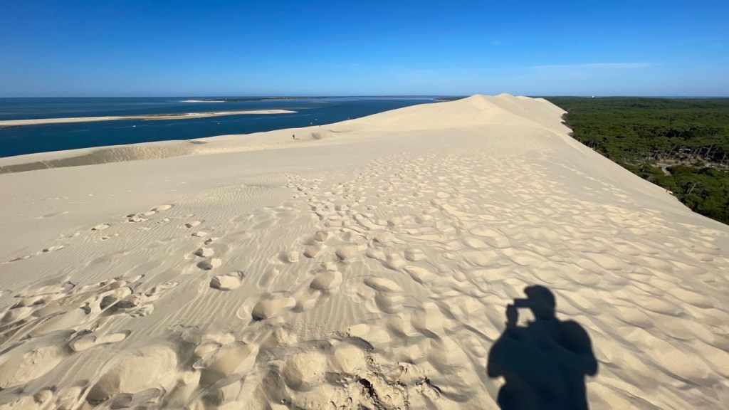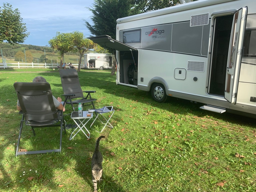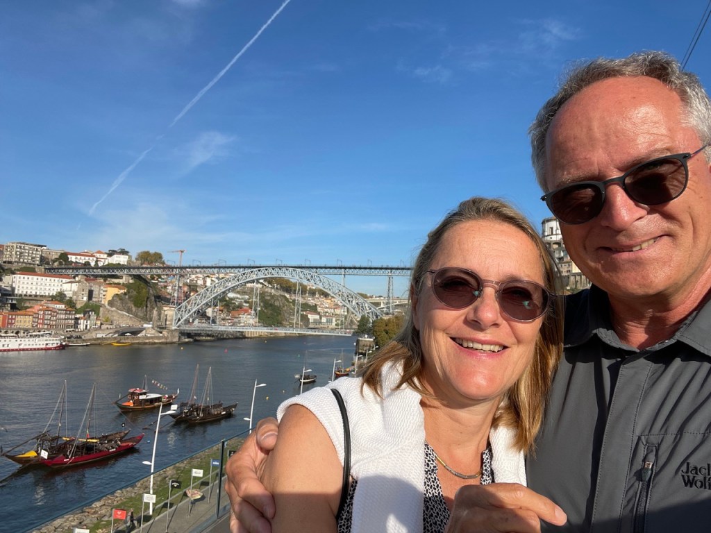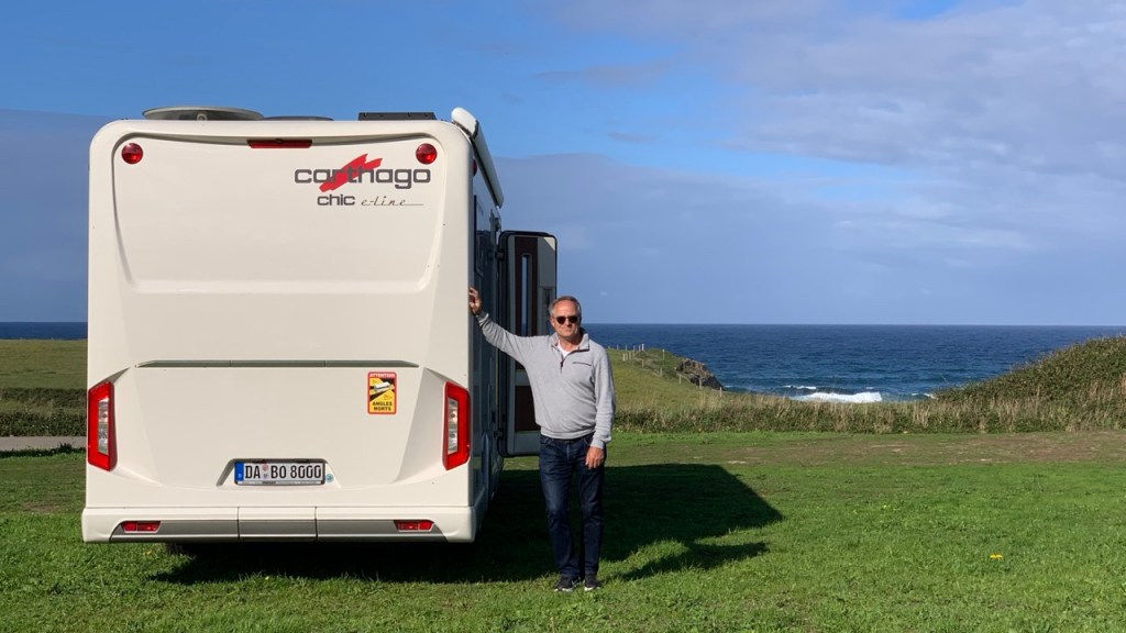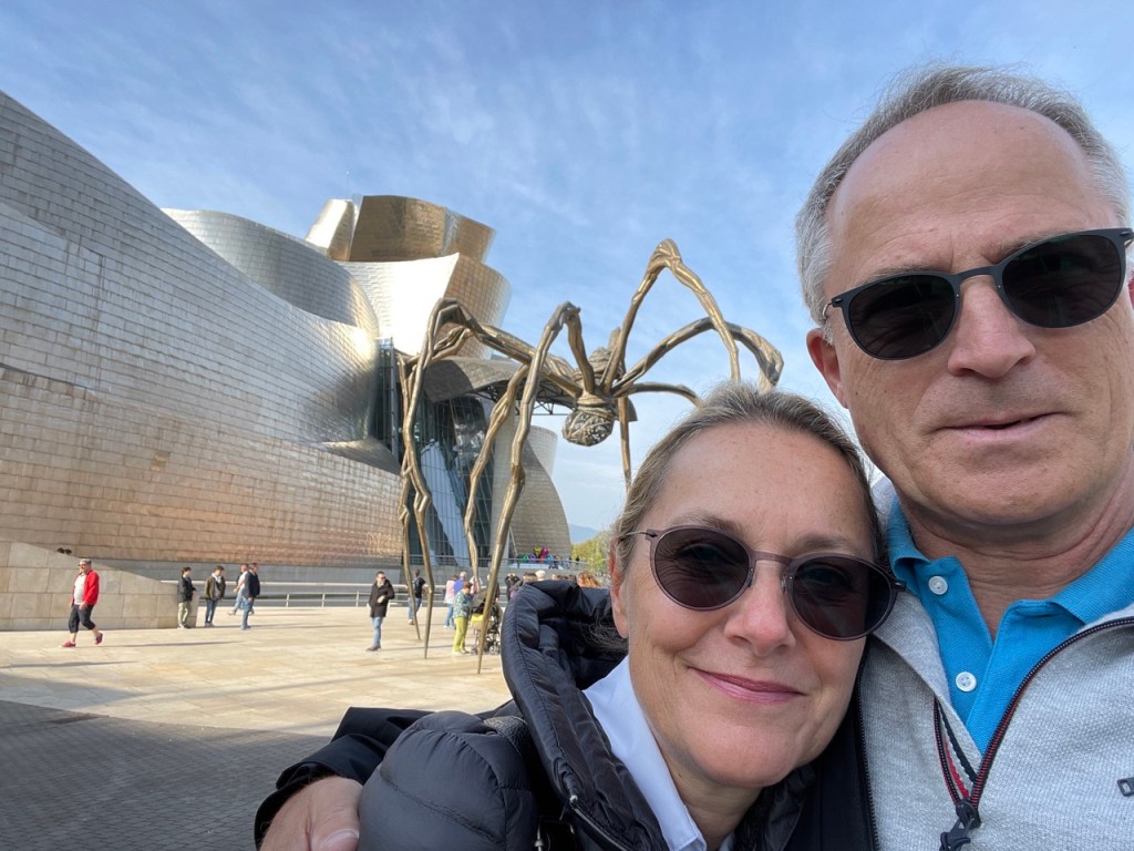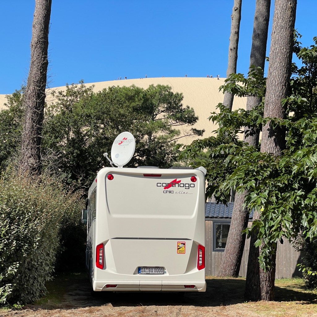 03.10.2021 Die erste Etappe führt uns nach Baume-les-Dames im Jura. Der Dauerregen gibt uns Gelegenheit, uns im Wohnmobil zu entspannen.04.10.2021 Wir entkommen dem Regen und erreichen die Auvergne mit dem Parc Naturel des Volcans, bei Clermont-Ferrand. Ein Foto zeigt den Puy de Dôme. Es ist Saisonende und wenig los.05.10.2021 Mit etwas Mühe finden wir in Orcines einen Stellplatz. Ein Tag Pause ist angesagt, damit Manfred sich von einem Infekt erholen kann (Corona-Schnelltest negativ!).Merkur-Tempel06.10.2021 Das erste Highlight unserer Tour! Wir fahren mit der Zahnradbahn auf den Puy de Dôme (1465m, 9 Grad, windig, wolkig).06.10.2021 Der Motor zischt ungut unter Last. Die eigene Fehlersuche ist erfolglos, aber es gibt dringenden Verdacht auf Marder*innenbiss am Turbo-Schlauch. Nach Zwischenstopp in einer überlasteten Fiat-Werkstatt in Aubière helfen uns die Kollegen einer benachbarten Bosch-Niederlassung schnell und kompetent – Stellplatz zur Übernachtung bis Teile-Lieferung inklusive! Der benachbarte Nachtclub bleibt zum Glück geschlossen, und guten Käse gibt es trotz allem.An der Brombeerhecke 30Think global … drink local!07.10.2021 Um 9:15 h kommt der Werkstattchef zum Abholen ans Wohnmobil. Und sorry, liebe*r Marder*in, Du warst es nicht, sondern ein kleiner Konstruktionsfehler von Carthago, durch den der Turboschlauch durchgescheuert wurde. Um 10:15 h sind wir wieder mobil und auf dem Weg nach Bordeaux zum Camping Le Village du Lac. Sonnige 21 Grad, uns geht es sehr gut!08.10.2021 Ein perfekter Tag in Bordeaux! Mit den Bikes auf prima Radwegen zunächst zum Weinmuseum (inkl. 1 Glas Wein) und zu den Markthallen Les Halles de Bacalan (best brownie ever!), kurzer Stop am Spaceship (oder Hut), dann zum alten U-Boot-Bunker der Deutschen, der nun als Bassins de Lumières sehr eindrucksvoll genutzt wird.09.10.2021 Auf guten Radwegen ins Zentrum von Bordeaux: Mittagessen am Ufer der Garonne bei Sonne und 21 Grad, dann Besichtigung der sehr schönen und sehr belebten Innenstadt.10.10.2021 Der Tag beginnt mit einer plausiblen Motivation für unsere Reise (siehe Aufkleber auf einem anderen Wohnmobil). Dann steuern wir den Campingplatz Forêt du Pilat bei Arcachon an. Ein schöner Stellplatz direkt vor der über 100 m hohen Düne. Die Aussicht von oben ist atemberaubend, und Skifahren kann man hier auch …11.10.2021 Wir fahren über 14 km auf allerschönsten Radwegen nach Arcachon. Es gibt sehr schöne Häuser in diesem vom 19. Jahrhundert geprägten Seebad. Ein Laden, in dem es ausschließlich Fischkonserven gab, hat es uns angetan. Und die kleinen Windbeutel „Dunes Blanches“ … 12.10.2021 Eine Wanderung über die Düne, dann am Strand entlang nach Le Petit Nice. Besonders beeindruckend der Sandkrabbler, der es schon ein Viertel der hohen Düne hinaufgeschafft hatte.13.10.2021 Wir fahren 120 km nach Süden und landen auf einem Stellplatz am Plage de Messanges. Viele Surfer genießen die Wellen des offenen Meeres.14.10.2021 Flower Power in den Dünen. Ein ruhiger Tag mit Strandwandern, Lesen und E-Mails-Schreiben.15.10.2021 Nach gut 200 km erreichen wir Bilbao. Der Stellplatz (Area de Autocaravanas de Kobetamendi) ist nicht einfach anzufahren, aber die Aussicht ist super! Dann beschaffen wir erst einmal eine spanische Gasflasche (Repsol), inkl. Taxi-Transport zum Stellplatz. Die anschließende Altstadtbesichtigung endet mit Cervesa und Tapas … alles gut!16.10.2021 Wir erkunden Bilbao mit Frank Gehrys Guggenheim-Museum, Santiago Calatravas Brücke Zubizuri, Norman Fosters U-Bahn-Eingängen (genannt „Fosteritos“) und vielen weiteren tollen Bauten. Und im Guggenheim-Museum gibt es für Manfred das erste Mal Pensionärs-Rabatt …17.10.2021 Nach unserem Geburtstagsglückwunschvideoanruf bei Philipp wandern wir eine Etappe auf dem Camino del Norte. Der 15 km lange Abschnitt von Bilbao bis Portugalete gibt schöne Eindrücke von Natur und Industrielandschaft. Höhepunkt am Ende ist die 61 m hohe Puente de Vizcaya von 1893, die älteste Schwebefähre Europas.18.10.2021 Etwa 120 km westlich von Bilbao nehmen wir Quartier auf dem Campingplatz von Santillana del Mar. Das mittelalterliche Örtchen ist das San Giminiano von Nord-Spanien, liegt am Jakobsweg und ist im Sommer sehr überlaufen. Wir können es in Ruhe genießen, auch den besten Flan Spaniens.19.10.2021 Noch ein Tag im schönen Santillana del Mar. Der Kreuzgang des Colegiata de Santa Juliana gefällt uns sehr gut. Am Nachmittag besichtigen wir die Höhle von Altamira, genau genommen nur einen Nachbau.20.10.2021 Wir suchen einen Stellplatz am Meer. Viele Plätze sind geschlossen oder mit unserem „Dickschiff“ nicht anfahrbar. Aber nach 26 km parken wir doch auf einem einfachen Parkplatz ein, der nur durch die Straße vom Strand trennt ist. Nach sehr gutem Mittagessen in San Vicente de la Baquera erholen wir uns am Strand, mit (Hör)Buch.21.10.2021 Wir fahren 250 km nach Westen und finden einen freien Stellplatz nahe dem Praia das Catedrais. Zugang zum bekanntesten Teil des Strandes werden wir erst morgen Vormittag bei Ebbe haben.22.10.2021 Pünktlich ab 10 Uhr sind wir am Praia das Catedrais, um bei Niedrigwasser diese Kathedrale der Natur zu bewundern. Anschließend fahren wir nach Santiago de Compostela, eine andere Kathedrale, mit vielen glücklichen Menschen davor, die ihr Ziel erreicht haben.23.10.2021 Heute zieht es uns zur weithin sichtbaren Cidade da Cultura de Galicia … beeindruckende Architektur von Peter Eisenman und eine Ausstellung der „Scherenschnitte“ aus Bronzeplatten von Jorge Castillo. Anschließend laufen wir wieder durch Santiago, genießen die schöne Stimmung in der Stadt, einige Tapas und einen Absacker nahe der Kathedrale.24.10.2021 Der Regen motiviert uns, weiter nach Süden zu fahren. Wir erreichen Portugal und finden einen guten Platz bei Porto am Meer, in Vila Nova de Gaia. 25.10.2021 Unser erster Tag in Porto: Mit dem Fahrrad am Douro entlang bis zur berümten Brücke des Gustave Ei
