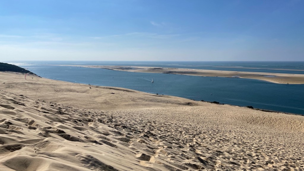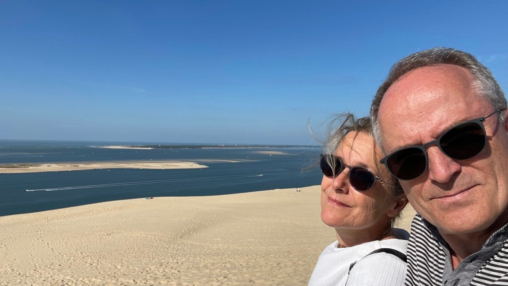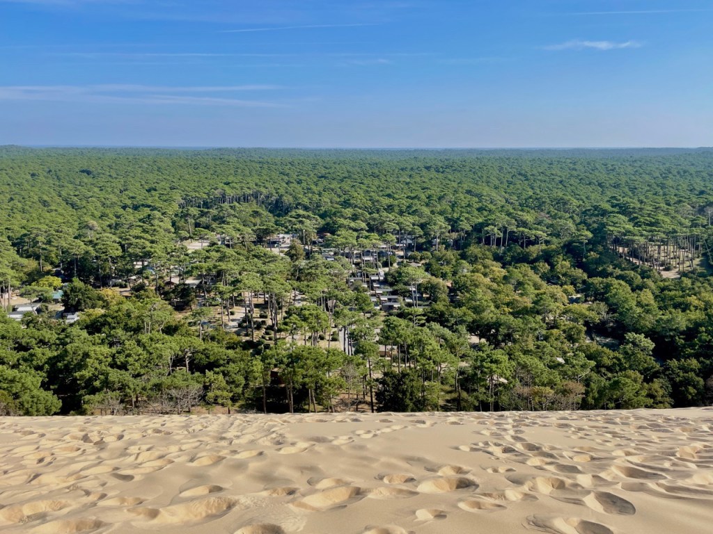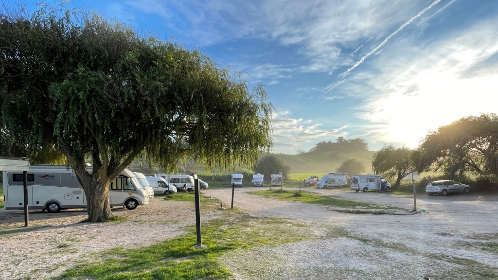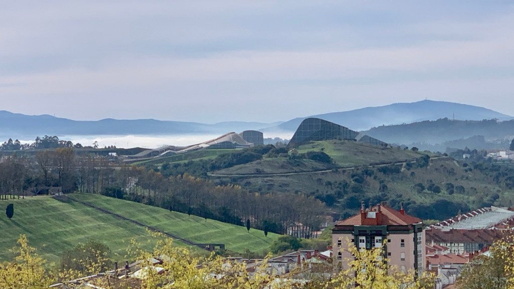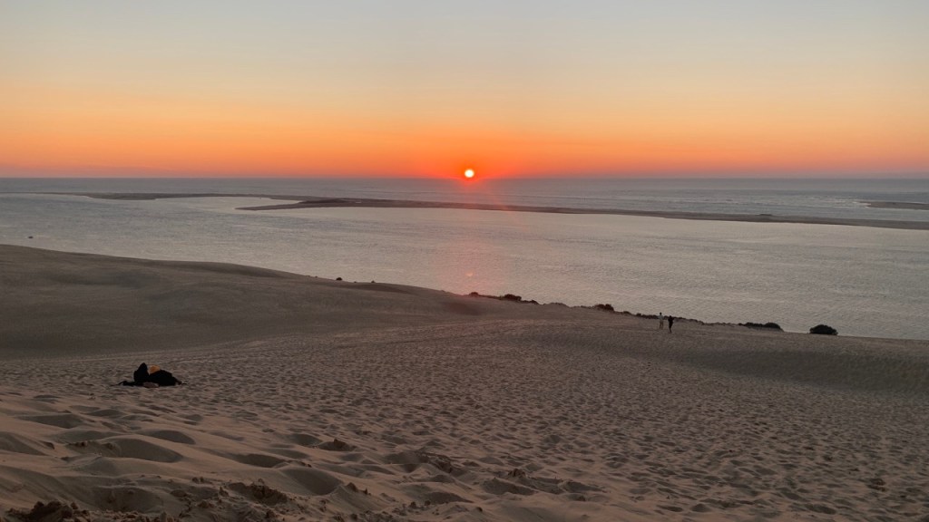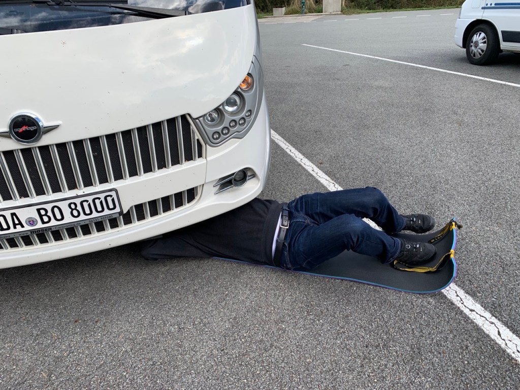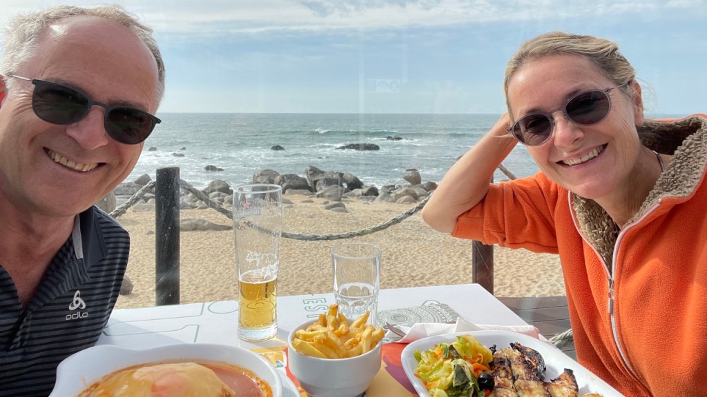 03.10.2021 Die erste Etappe führt uns nach Baume-les-Dames im Jura. Der Dauerregen gibt uns Gelegenheit, uns im Wohnmobil zu entspannen.04.10.2021 Wir entkommen dem Regen und erreichen die Auvergne mit dem Parc Naturel des Volcans, bei Clermont-Ferrand. Ein Foto zeigt den Puy de Dôme. Es ist Saisonende und wenig los.05.10.2021 Mit etwas Mühe finden wir in Orcines einen Stellplatz. Ein Tag Pause ist angesagt, damit Manfred sich von einem Infekt erholen kann (Corona-Schnelltest negativ!).Merkur-Tempel06.10.2021 Das erste Highlight unserer Tour! Wir fahren mit der Zahnradbahn auf den Puy de Dôme (1465m, 9 Grad, windig, wolkig).06.10.2021 Der Motor zischt ungut unter Last. Die eigene Fehlersuche ist erfolglos, aber es gibt dringenden Verdacht auf Marder*innenbiss am Turbo-Schlauch. Nach Zwischenstopp in einer überlasteten Fiat-Werkstatt in Aubière helfen uns die Kollegen einer benachbarten Bosch-Niederlassung schnell und kompetent – Stellplatz zur Übernachtung bis Teile-Lieferung inklusive! Der benachbarte Nachtclub bleibt zum Glück geschlossen, und guten Käse gibt es trotz allem.An der Brombeerhecke 30Think global … drink local!07.10.2021 Um 9:15 h kommt der Werkstattchef zum Abholen ans Wohnmobil. Und sorry, liebe*r Marder*in, Du warst es nicht, sondern ein kleiner Konstruktionsfehler von Carthago, durch den der Turboschlauch durchgescheuert wurde. Um 10:15 h sind wir wieder mobil und auf dem Weg nach Bordeaux zum Camping Le Village du Lac. Sonnige 21 Grad, uns geht es sehr gut!08.10.2021 Ein perfekter Tag in Bordeaux! Mit den Bikes auf prima Radwegen zunächst zum Weinmuseum (inkl. 1 Glas Wein) und zu den Markthallen Les Halles de Bacalan (best brownie ever!), kurzer Stop am Spaceship (oder Hut), dann zum alten U-Boot-Bunker der Deutschen, der nun als Bassins de Lumières sehr eindrucksvoll genutzt wird.09.10.2021 Auf guten Radwegen ins Zentrum von Bordeaux: Mittagessen am Ufer der Garonne bei Sonne und 21 Grad, dann Besichtigung der sehr schönen und sehr belebten Innenstadt.10.10.2021 Der Tag beginnt mit einer plausiblen Motivation für unsere Reise (siehe Aufkleber auf einem anderen Wohnmobil). Dann steuern wir den Campingplatz Forêt du Pilat bei Arcachon an. Ein schöner Stellplatz direkt vor der über 100 m hohen Düne. Die Aussicht von oben ist atemberaubend, und Skifahren kann man hier auch …11.10.2021 Wir fahren über 14 km auf allerschönsten Radwegen nach Arcachon. Es gibt sehr schöne Häuser in diesem vom 19. Jahrhundert geprägten Seebad. Ein Laden, in dem es ausschließlich Fischkonserven gab, hat es uns angetan. Und die kleinen Windbeutel „Dunes Blanches“ … 12.10.2021 Eine Wanderung über die Düne, dann am Strand entlang nach Le Petit Nice. Besonders beeindruckend der Sandkrabbler, der es schon ein Viertel der hohen Düne hinaufgeschafft hatte.13.10.2021 Wir fahren 120 km nach Süden und landen auf einem Stellplatz am Plage de Messanges. Viele Surfer genießen die Wellen des offenen Meeres.14.10.2021 Flower Power in den Dünen. Ein ruhiger Tag mit Strandwandern, Lesen und E-Mails-Schreiben.15.10.2021 Nach gut 200 km erreichen wir Bilbao. Der Stellplatz (Area de Autocaravanas de Kobetamendi) ist nicht einfach anzufahren, aber die Aussicht ist super! Dann beschaffen wir erst einmal eine spanische Gasflasche (Repsol), inkl. Taxi-Transport zum Stellplatz. Die anschließende Altstadtbesichtigung endet mit Cervesa und Tapas … alles gut!16.10.2021 Wir erkunden Bilbao mit Frank Gehrys Guggenheim-Museum, Santiago Calatravas Brücke Zubizuri, Norman Fosters U-Bahn-Eingängen (genannt „Fosteritos“) und vielen weiteren tollen Bauten. Und im Guggenheim-Museum gibt es für Manfred das erste Mal Pensionärs-Rabatt …17.10.2021 Nach unserem Geburtstagsglückwunschvideoanruf bei Philipp wandern wir eine Etappe auf dem Camino del Norte. Der 15 km lange Abschnitt von Bilbao bis Portugalete gibt schöne Eindrücke von Natur und Industrielandschaft. Höhepunkt am Ende ist die 61 m hohe Puente de Vizcaya von 1893, die älteste Schwebefähre Europas.18.10.2021 Etwa 120 km westlich von Bilbao nehmen wir Quartier auf dem Campingplatz von Santillana del Mar. Das mittelalterliche Örtchen ist das San Giminiano von Nord-Spanien, liegt am Jakobsweg und ist im Sommer sehr überlaufen. Wir können es in Ruhe genießen, auch den besten Flan Spaniens.19.10.2021 Noch ein Tag im schönen Santillana del Mar. Der Kreuzgang des Colegiata de Santa Juliana gefällt uns sehr gut. Am Nachmittag besichtigen wir die Höhle von Altamira, genau genommen nur einen Nachbau.20.10.2021 Wir suchen einen Stellplatz am Meer. Viele Plätze sind geschlossen oder mit unserem „Dickschiff“ nicht anfahrbar. Aber nach 26 km parken wir doch auf einem einfachen Parkplatz ein, der nur durch die Straße vom Strand trennt ist. Nach sehr gutem Mittagessen in San Vicente de la Baquera erholen wir uns am Strand, mit (Hör)Buch.21.10.2021 Wir fahren 250 km nach Westen und finden einen freien Stellplatz nahe dem Praia das Catedrais. Zugang zum bekanntesten Teil des Strandes werden wir erst morgen Vormittag bei Ebbe haben.22.10.2021 Pünktlich ab 10 Uhr sind wir am Praia das Catedrais, um bei Niedrigwasser diese Kathedrale der Natur zu bewundern. Anschließend fahren wir nach Santiago de Compostela, eine andere Kathedrale, mit vielen glücklichen Menschen davor, die ihr Ziel erreicht haben.23.10.2021 Heute zieht es uns zur weithin sichtbaren Cidade da Cultura de Galicia … beeindruckende Architektur von Peter Eisenman und eine Ausstellung der „Scherenschnitte“ aus Bronzeplatten von Jorge Castillo. Anschließend laufen wir wieder durch Santiago, genießen die schöne Stimmung in der Stadt, einige Tapas und einen Absacker nahe der Kathedrale.24.10.2021 Der Regen motiviert uns, weiter nach Süden zu fahren. Wir erreichen Portugal und finden einen guten Platz bei Porto am Meer, in Vila Nova de Gaia. 25.10.2021 Unser erster Tag in Porto: Mit dem Fahrrad am Douro entlang bis zur berümten Brücke des Gustave Ei