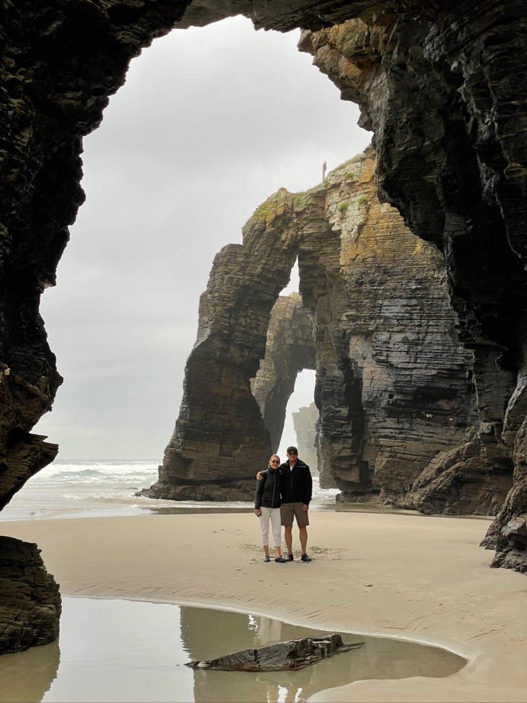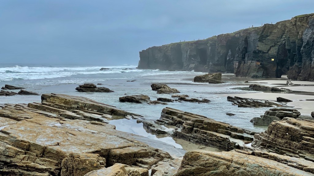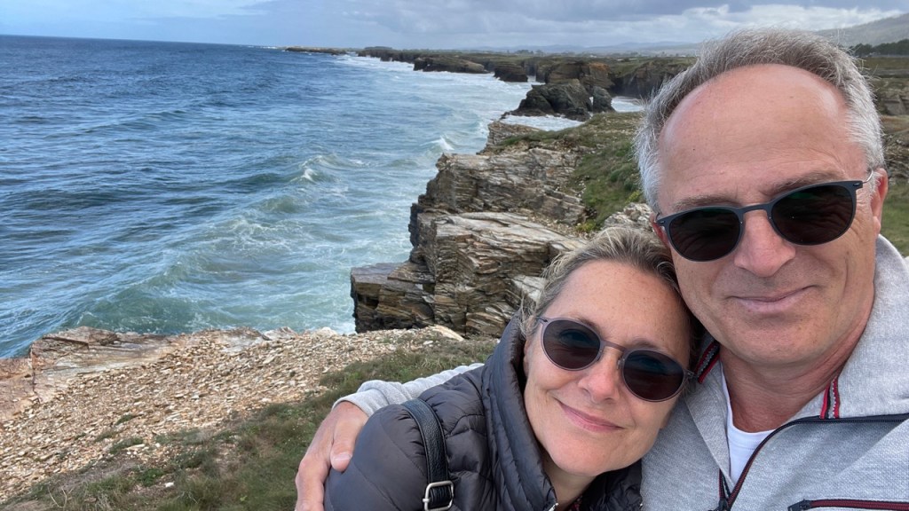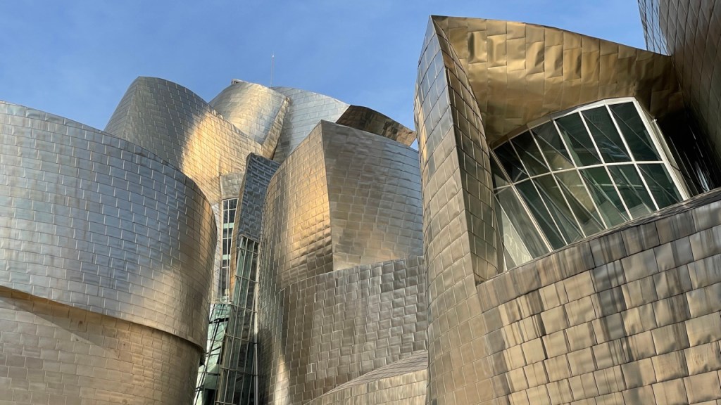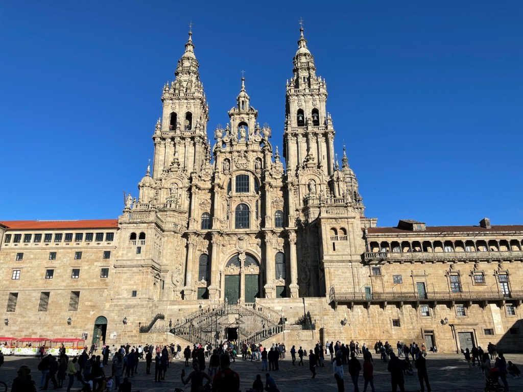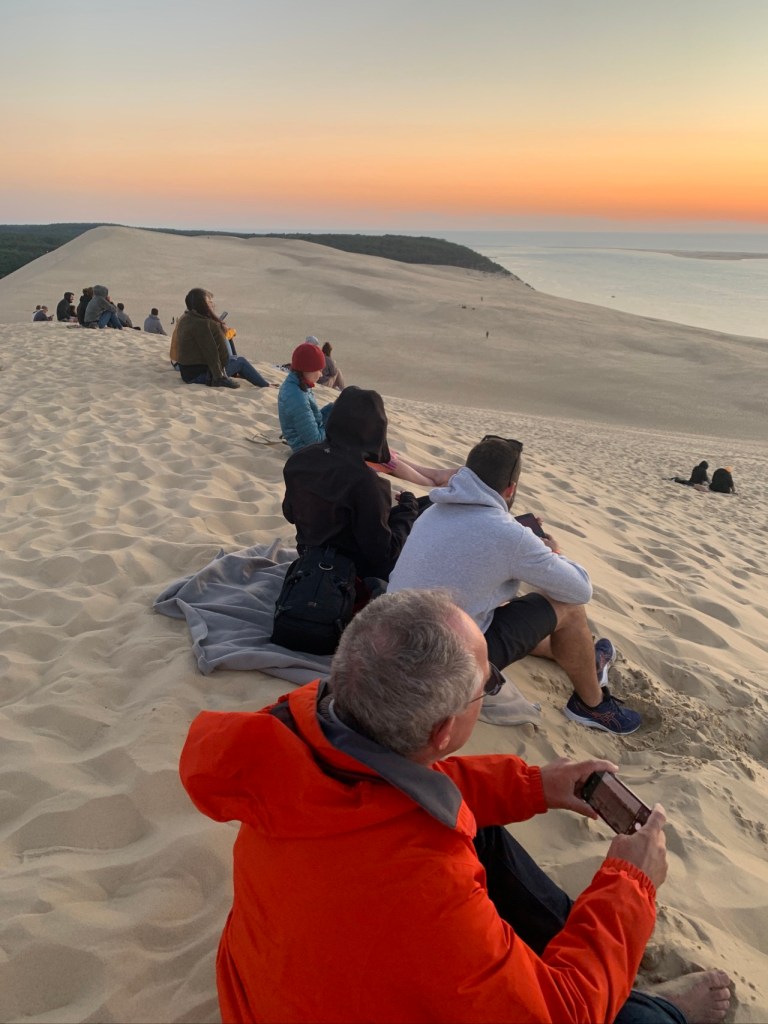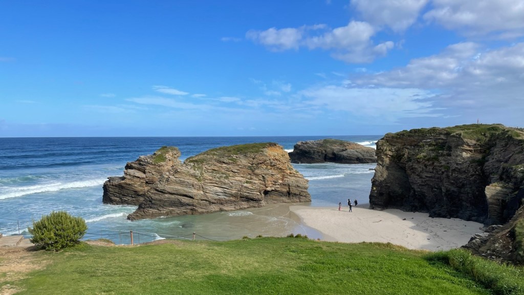 03.10.2021 Die erste Etappe führt uns nach Baume-les-Dames im Jura. Der Dauerregen gibt uns Gelegenheit, uns im Wohnmobil zu entspannen.04.10.2021 Wir entkommen dem Regen und erreichen die Auvergne mit dem Parc Naturel des Volcans, bei Clermont-Ferrand. Ein Foto zeigt den Puy de Dôme. Es ist Saisonende und wenig los.05.10.2021 Mit etwas Mühe finden wir in Orcines einen Stellplatz. Ein Tag Pause ist angesagt, damit Manfred sich von einem Infekt erholen kann (Corona-Schnelltest negativ!).Merkur-Tempel06.10.2021 Das erste Highlight unserer Tour! Wir fahren mit der Zahnradbahn auf den Puy de Dôme (1465m, 9 Grad, windig, wolkig).06.10.2021 Der Motor zischt ungut unter Last. Die eigene Fehlersuche ist erfolglos, aber es gibt dringenden Verdacht auf Marder*innenbiss am Turbo-Schlauch. Nach Zwischenstopp in einer überlasteten Fiat-Werkstatt in Aubière helfen uns die Kollegen einer benachbarten Bosch-Niederlassung schnell und kompetent – Stellplatz zur Übernachtung bis Teile-Lieferung inklusive! Der benachbarte Nachtclub bleibt zum Glück geschlossen, und guten Käse gibt es trotz allem.An der Brombeerhecke 30Think global … drink local!07.10.2021 Um 9:15 h kommt der Werkstattchef zum Abholen ans Wohnmobil. Und sorry, liebe*r Marder*in, Du warst es nicht, sondern ein kleiner Konstruktionsfehler von Carthago, durch den der Turboschlauch durchgescheuert wurde. Um 10:15 h sind wir wieder mobil und auf dem Weg nach Bordeaux zum Camping Le Village du Lac. Sonnige 21 Grad, uns geht es sehr gut!08.10.2021 Ein perfekter Tag in Bordeaux! Mit den Bikes auf prima Radwegen zunächst zum Weinmuseum (inkl. 1 Glas Wein) und zu den Markthallen Les Halles de Bacalan (best brownie ever!), kurzer Stop am Spaceship (oder Hut), dann zum alten U-Boot-Bunker der Deutschen, der nun als Bassins de Lumières sehr eindrucksvoll genutzt wird.09.10.2021 Auf guten Radwegen ins Zentrum von Bordeaux: Mittagessen am Ufer der Garonne bei Sonne und 21 Grad, dann Besichtigung der sehr schönen und sehr belebten Innenstadt.10.10.2021 Der Tag beginnt mit einer plausiblen Motivation für unsere Reise (siehe Aufkleber auf einem anderen Wohnmobil). Dann steuern wir den Campingplatz Forêt du Pilat bei Arcachon an. Ein schöner Stellplatz direkt vor der über 100 m hohen Düne. Die Aussicht von oben ist atemberaubend, und Skifahren kann man hier auch …11.10.2021 Wir fahren über 14 km auf allerschönsten Radwegen nach Arcachon. Es gibt sehr schöne Häuser in diesem vom 19. Jahrhundert geprägten Seebad. Ein Laden, in dem es ausschließlich Fischkonserven gab, hat es uns angetan. Und die kleinen Windbeutel „Dunes Blanches“ … 12.10.2021 Eine Wanderung über die Düne, dann am Strand entlang nach Le Petit Nice. Besonders beeindruckend der Sandkrabbler, der es schon ein Viertel der hohen Düne hinaufgeschafft hatte.13.10.2021 Wir fahren 120 km nach Süden und landen auf einem Stellplatz am Plage de Messanges. Viele Surfer genießen die Wellen des offenen Meeres.14.10.2021 Flower Power in den Dünen. Ein ruhiger Tag mit Strandwandern, Lesen und E-Mails-Schreiben.15.10.2021 Nach gut 200 km erreichen wir Bilbao. Der Stellplatz (Area de Autocaravanas de Kobetamendi) ist nicht einfach anzufahren, aber die Aussicht ist super! Dann beschaffen wir erst einmal eine spanische Gasflasche (Repsol), inkl. Taxi-Transport zum Stellplatz. Die anschließende Altstadtbesichtigung endet mit Cervesa und Tapas … alles gut!16.10.2021 Wir erkunden Bilbao mit Frank Gehrys Guggenheim-Museum, Santiago Calatravas Brücke Zubizuri, Norman Fosters U-Bahn-Eingängen (genannt „Fosteritos“) und vielen weiteren tollen Bauten. Und im Guggenheim-Museum gibt es für Manfred das erste Mal Pensionärs-Rabatt …17.10.2021 Nach unserem Geburtstagsglückwunschvideoanruf bei Philipp wandern wir eine Etappe auf dem Camino del Norte. Der 15 km lange Abschnitt von Bilbao bis Portugalete gibt schöne Eindrücke von Natur und Industrielandschaft. Höhepunkt am Ende ist die 61 m hohe Puente de Vizcaya von 1893, die älteste Schwebefähre Europas.18.10.2021 Etwa 120 km westlich von Bilbao nehmen wir Quartier auf dem Campingplatz von Santillana del Mar. Das mittelalterliche Örtchen ist das San Giminiano von Nord-Spanien, liegt am Jakobsweg und ist im Sommer sehr überlaufen. Wir können es in Ruhe genießen, auch den besten Flan Spaniens.19.10.2021 Noch ein Tag im schönen Santillana del Mar. Der Kreuzgang des Colegiata de Santa Juliana gefällt uns sehr gut. Am Nachmittag besichtigen wir die Höhle von Altamira, genau genommen nur einen Nachbau.20.10.2021 Wir suchen einen Stellplatz am Meer. Viele Plätze sind geschlossen oder mit unserem „Dickschiff“ nicht anfahrbar. Aber nach 26 km parken wir doch auf einem einfachen Parkplatz ein, der nur durch die Straße vom Strand trennt ist. Nach sehr gutem Mittagessen in San Vicente de la Baquera erholen wir uns am Strand, mit (Hör)Buch.21.10.2021 Wir fahren 250 km nach Westen und finden einen freien Stellplatz nahe dem Praia das Catedrais. Zugang zum bekanntesten Teil des Strandes werden wir erst morgen Vormittag bei Ebbe haben.22.10.2021 Pünktlich ab 10 Uhr sind wir am Praia das Catedrais, um bei Niedrigwasser diese Kathedrale der Natur zu bewundern. Anschließend fahren wir nach Santiago de Compostela, eine andere Kathedrale, mit vielen glücklichen Menschen davor, die ihr Ziel erreicht haben.23.10.2021 Heute zieht es uns zur weithin sichtbaren Cidade da Cultura de Galicia … beeindruckende Architektur von Peter Eisenman und eine Ausstellung der „Scherenschnitte“ aus Bronzeplatten von Jorge Castillo. Anschließend laufen wir wieder durch Santiago, genießen die schöne Stimmung in der Stadt, einige Tapas und einen Absacker nahe der Kathedrale.24.10.2021 Der Regen motiviert uns, weiter nach Süden zu fahren. Wir erreichen Portugal und finden einen guten Platz bei Porto am Meer, in Vila Nova de Gaia. 25.10.2021 Unser erster Tag in Porto: Mit dem Fahrrad am Douro entlang bis zur berümten Brücke des Gustave Ei