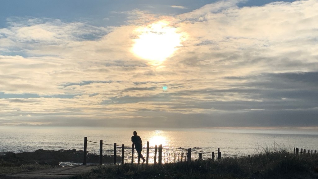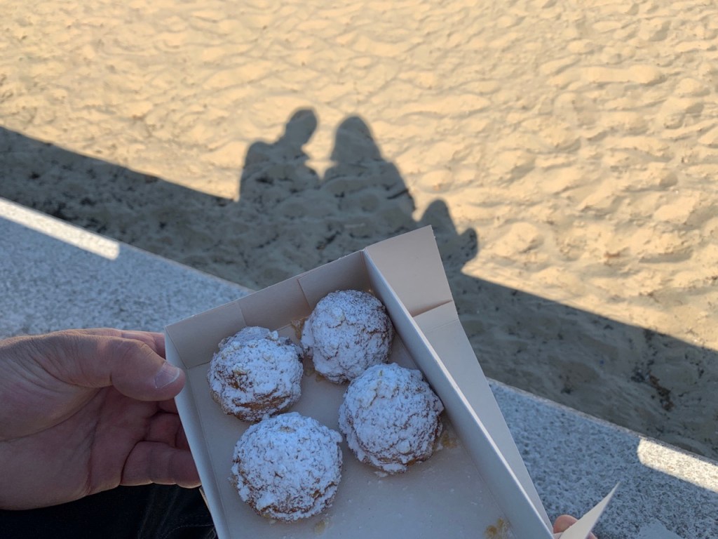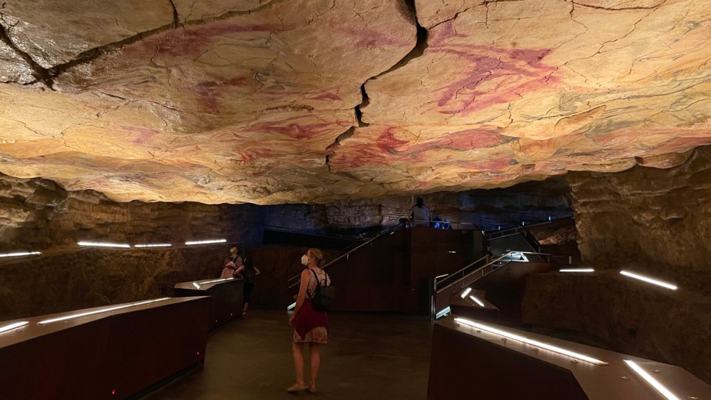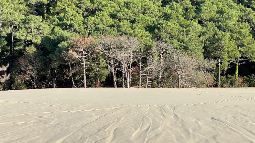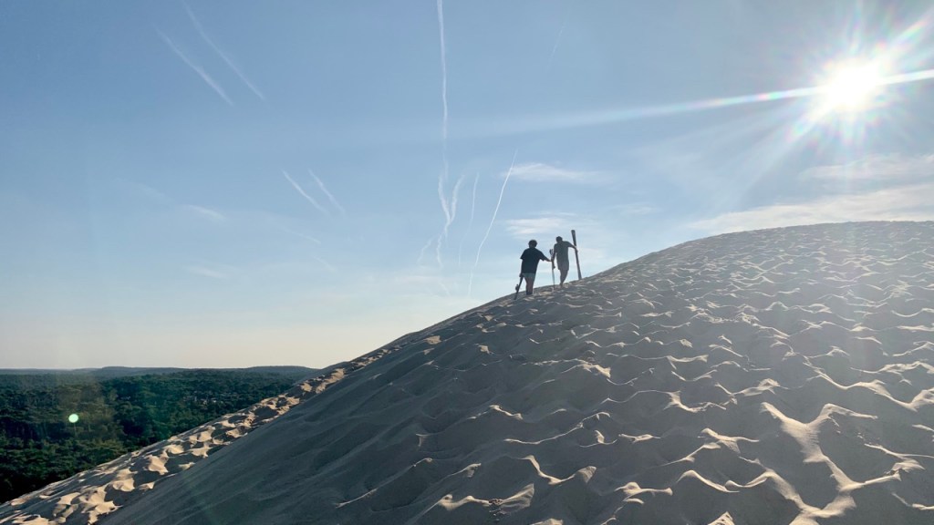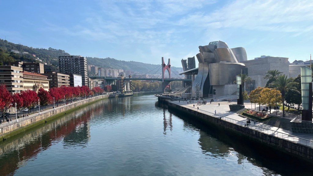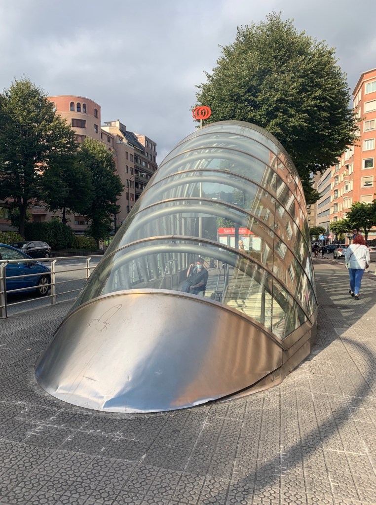03.10.2021 Die erste Etappe führt uns nach Baume-les-Dames im Jura. Der Dauerregen gibt uns Gelegenheit, uns im Wohnmobil zu entspannen.04.10.2021 Wir entkommen dem Regen und erreichen die Auvergne mit dem Parc Naturel des Volcans, bei Clermont-Ferrand. Ein Foto zeigt den Puy de Dôme. Es ist Saisonende und wenig los.05.10.2021 Mit etwas Mühe finden wir in Orcines einen Stellplatz. Ein Tag Pause ist angesagt, damit Manfred sich von einem Infekt erholen kann (Corona-Schnelltest negativ!).Merkur-Tempel06.10.2021 Das erste Highlight unserer Tour! Wir fahren mit der Zahnradbahn auf den Puy de Dôme (1465m, 9 Grad, windig, wolkig).06.10.2021 Der Motor zischt ungut unter Last. Die eigene Fehlersuche ist erfolglos, aber es gibt dringenden Verdacht auf Marder*innenbiss am Turbo-Schlauch. Nach Zwischenstopp in einer überlasteten Fiat-Werkstatt in Aubière helfen uns die Kollegen einer benachbarten Bosch-Niederlassung schnell und kompetent – Stellplatz zur Übernachtung bis Teile-Lieferung inklusive! Der benachbarte Nachtclub bleibt zum Glück geschlossen, und guten Käse gibt es trotz allem.An der Brombeerhecke 30Think global … drink local!07.10.2021 Um 9:15 h kommt der Werkstattchef zum Abholen ans Wohnmobil. Und sorry, liebe*r Marder*in, Du warst es nicht, sondern ein kleiner Konstruktionsfehler von Carthago, durch den der Turboschlauch durchgescheuert wurde. Um 10:15 h sind wir wieder mobil und auf dem Weg nach Bordeaux zum Camping Le Village du Lac. Sonnige 21 Grad, uns geht es sehr gut!08.10.2021 Ein perfekter Tag in Bordeaux! Mit den Bikes auf prima Radwegen zunächst zum Weinmuseum (inkl. 1 Glas Wein) und zu den Markthallen Les Halles de Bacalan (best brownie ever!), kurzer Stop am Spaceship (oder Hut), dann zum alten U-Boot-Bunker der Deutschen, der nun als Bassins de Lumières sehr eindrucksvoll genutzt wird.09.10.2021 Auf guten Radwegen ins Zentrum von Bordeaux: Mittagessen am Ufer der Garonne bei Sonne und 21 Grad, dann Besichtigung der sehr schönen und sehr belebten Innenstadt.10.10.2021 Der Tag beginnt mit einer plausiblen Motivation für unsere Reise (siehe Aufkleber auf einem anderen Wohnmobil). Dann steuern wir den Campingplatz Forêt du Pilat bei Arcachon an. Ein schöner Stellplatz direkt vor der über 100 m hohen Düne. Die Aussicht von oben ist atemberaubend, und Skifahren kann man hier auch …11.10.2021 Wir fahren über 14 km auf allerschönsten Radwegen nach Arcachon. Es gibt sehr schöne Häuser in diesem vom 19. Jahrhundert geprägten Seebad. Ein Laden, in dem es ausschließlich Fischkonserven gab, hat es uns angetan. Und die kleinen Windbeutel „Dunes Blanches“ … 12.10.2021 Eine Wanderung über die Düne, dann am Strand entlang nach Le Petit Nice. Besonders beeindruckend der Sandkrabbler, der es schon ein Viertel der hohen Düne hinaufgeschafft hatte.13.10.2021 Wir fahren 120 km nach Süden und landen auf einem Stellplatz am Plage de Messanges. Viele Surfer genießen die Wellen des offenen Meeres.14.10.2021 Flower Power in den Dünen. Ein ruhiger Tag mit Strandwandern, Lesen und E-Mails-Schreiben.15.10.2021 Nach gut 200 km erreichen wir Bilbao. Der Stellplatz (Area de Autocaravanas de Kobetamendi) ist nicht einfach anzufahren, aber die Aussicht ist super! Dann beschaffen wir erst einmal eine spanische Gasflasche (Repsol), inkl. Taxi-Transport zum Stellplatz. Die anschließende Altstadtbesichtigung endet mit Cervesa und Tapas … alles gut!16.10.2021 Wir erkunden Bilbao mit Frank Gehrys Guggenheim-Museum, Santiago Calatravas Brücke Zubizuri, Norman Fosters U-Bahn-Eingängen (genannt „Fosteritos“) und vielen weiteren tollen Bauten. Und im Guggenheim-Museum gibt es für Manfred das erste Mal Pensionärs-Rabatt …17.10.2021 Nach unserem Geburtstagsglückwunschvideoanruf bei Philipp wandern wir eine Etappe auf dem Camino del Norte. Der 15 km lange Abschnitt von Bilbao bis Portugalete gibt schöne Eindrücke von Natur und Industrielandschaft. Höhepunkt am Ende ist die 61 m hohe Puente de Vizcaya von 1893, die älteste Schwebefähre Europas.18.10.2021 Etwa 120 km westlich von Bilbao nehmen wir Quartier auf dem Campingplatz von Santillana del Mar. Das mittelalterliche Örtchen ist das San Giminiano von Nord-Spanien, liegt am Jakobsweg und ist im Sommer sehr überlaufen. Wir können es in Ruhe genießen, auch den besten Flan Spaniens.19.10.2021 Noch ein Tag im schönen Santillana del Mar. Der Kreuzgang des Colegiata de Santa Juliana gefällt uns sehr gut. Am Nachmittag besichtigen wir die Höhle von Altamira, genau genommen nur einen Nachbau.20.10.2021 Wir suchen einen Stellplatz am Meer. Viele Plätze sind geschlossen oder mit unserem „Dickschiff“ nicht anfahrbar. Aber nach 26 km parken wir doch auf einem einfachen Parkplatz ein, der nur durch die Straße vom Strand trennt ist. Nach sehr gutem Mittagessen in San Vicente de la Baquera erholen wir uns am Strand, mit (Hör)Buch.21.10.2021 Wir fahren 250 km nach Westen und finden einen freien Stellplatz nahe dem Praia das Catedrais. Zugang zum bekanntesten Teil des Strandes werden wir erst morgen Vormittag bei Ebbe haben.22.10.2021 Pünktlich ab 10 Uhr sind wir am Praia das Catedrais, um bei Niedrigwasser diese Kathedrale der Natur zu bewundern. Anschließend fahren wir nach Santiago de Compostela, eine andere Kathedrale, mit vielen glücklichen Menschen davor, die ihr Ziel erreicht haben.23.10.2021 Heute zieht es uns zur weithin sichtbaren Cidade da Cultura de Galicia … beeindruckende Architektur von Peter Eisenman und eine Ausstellung der „Scherenschnitte“ aus Bronzeplatten von Jorge Castillo. Anschließend laufen wir wieder durch Santiago, genießen die schöne Stimmung in der Stadt, einige Tapas und einen Absacker nahe der Kathedrale.24.10.2021 Der Regen motiviert uns, weiter nach Süden zu fahren. Wir erreichen Portugal und finden einen guten Platz bei Porto am Meer, in Vila Nova de Gaia. 25.10.2021 Unser erster Tag in Porto: Mit dem Fahrrad am Douro entlang bis zur berümten Brücke des Gustave Ei