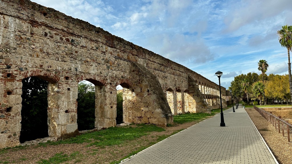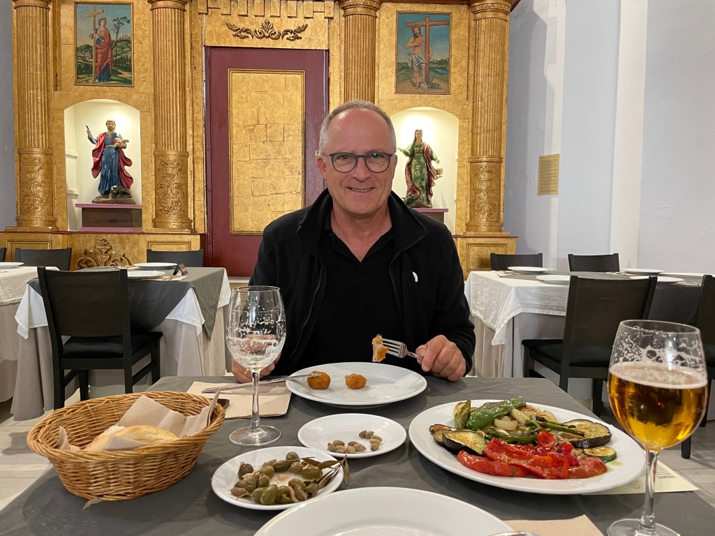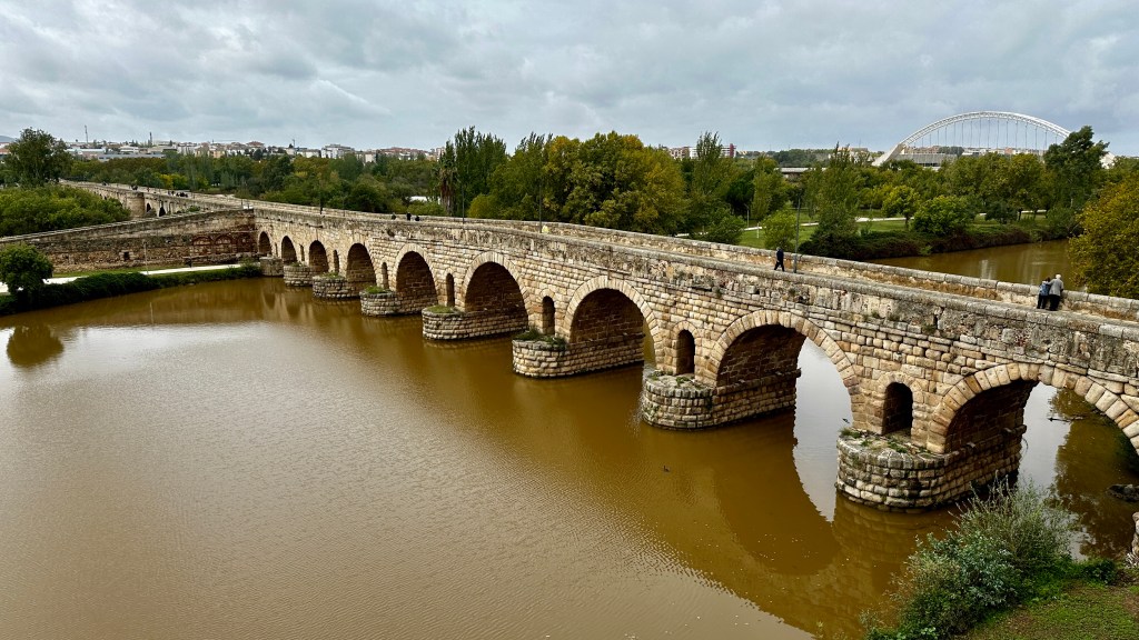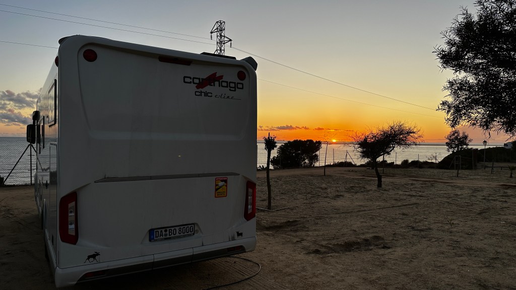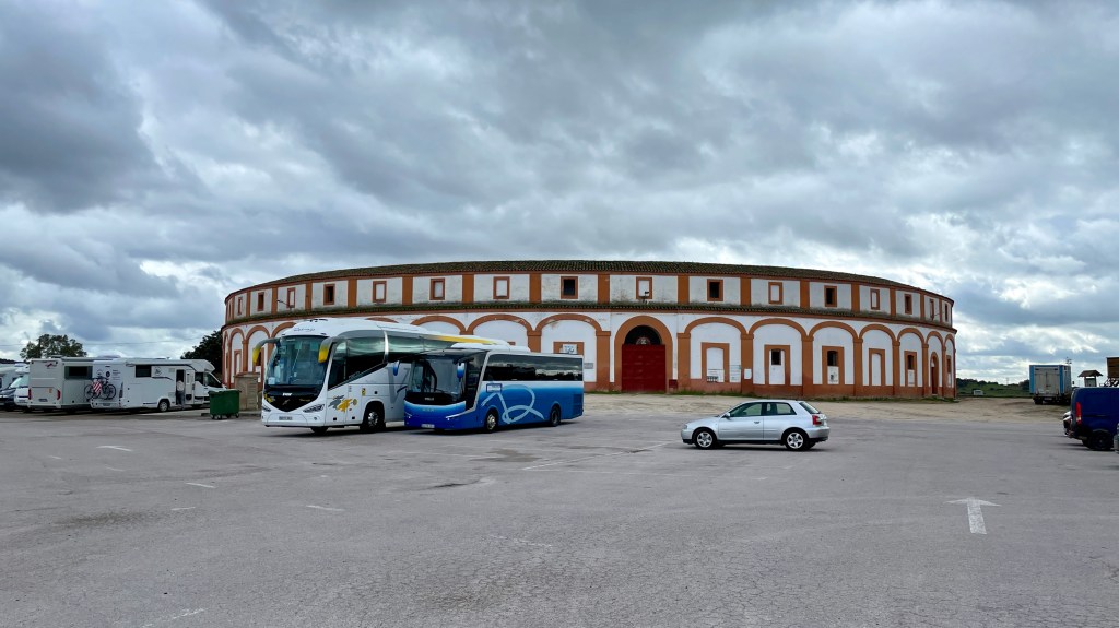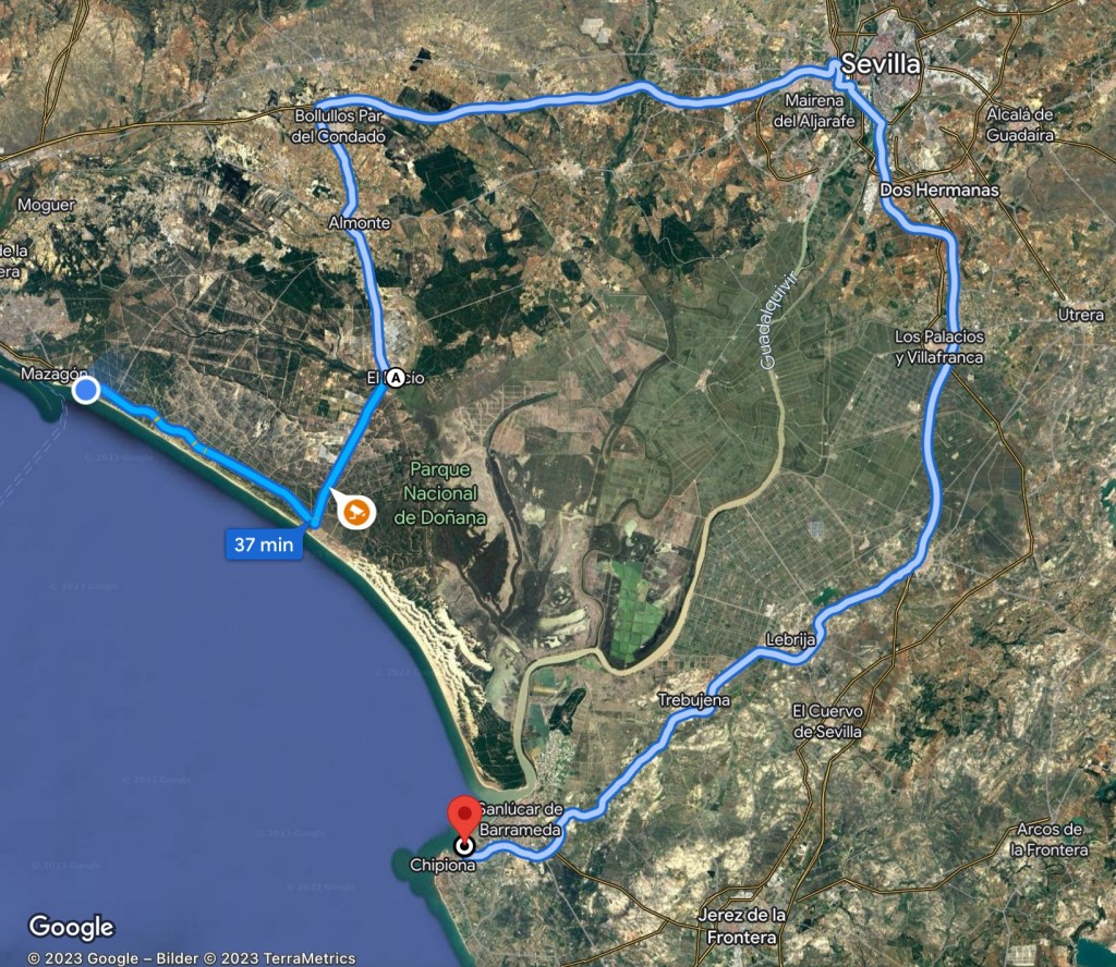 18.10.2023 Heute ist es windig, aber es regnet viel weniger als angekündigt. Bei uns ist erst einmal Waschtag. Am Nachmittag fahren wir nur gut 5 km auf einem sehr schönen Weg zum Cabo Roche. Die Küste hier ähnelt ein wenig der Algarve, und man hat auch einen schönen Blick auf Conil mit den vielen Gleitschirmfliegern. Den Abend genießen wir dann zusammen mit Ulrike und Ulrich bei einem Essen in unserem Wohnmobil.19.10.2023 Wir verlassen Conil. Es hat uns sehr gut gefallen, und wir sind sicher, dass wir nochmal hierher kommen wollen! 80 km sind es nach Chipiona zum Stellplatz „La Siesta de la Gaviota“, wo wir im Frühjahr 2022 schon einmal waren. Nach der Ankunft und kleinem Lunch versuchen wir uns an einem Strandspaziergang, aber es stürmt und regnet dann doch mächtig. Während wir Sherry und Manzanilla probieren, ist es für das Wohnmobil eine richtige „Dichtigkeitsprüfung“, die es ohne Probleme besteht.20.10.2023 Die Sonne scheint wieder und wir laufen nach Chipiona. Es ist eine richtig spanische Stadt am Meer, mit einem Leuchtturm und schönen Straßen. Mittagessen für uns gibt es in der Bar Rubio Marcario, voll und laut, mit guten Tapas und Getränken. Wir brauchten nur ein wenig „Eselsgeduld“, weil man hier eben eher ab 14 Uhr und nicht schon um halb eins Mittag isst. Den Rest des Tages verbringen wir am Wohnmobil. Manfred organisiert etwas mehr Speicherplatz für unsere Webseite, die ab sofort übrigens auch unter DaMaTours.net zu erreichen ist. 21.10.2023 Unsere kleine Radtour bringt uns nach Sanlúcar de Barrameda. Die lebhafte Stadt gefällt uns auch bei diesem zweiten Besuch (nach März 2022] sehr gut. Historisch sind von hier schon Magallan und Columbus auf Seereisen gestartet. Landschaftlich ist die Mündung des Guadalquivir mit breiten Stränden und Sandbänken sehr reizvoll. Eine schöne Fußgängerzone (mit Modellauto-Rennbahn), Kirchen, Markthalle und Restaurants mit sehr spanischem Essen ergänzen das. Wir probieren hier auch eine Tortilla de Camparones, eine Art Shrimp-Cracker. Zum Sonnenuntergang besuchen wir dann noch ein neues Lokal in der Nähe (Saam Club del Mar – Beachclub en Chipiona).22.10.2023 Heute ist es sehr stürmig, und es regnet heftig. Wir bleiben fast den ganzen Tag im wackelnden Wohnmobil. Manfred liest ein Buchgeschenk von den Kindern zu Ende und ist ganz begeistert („Der Astronaut“ von Andy Weir). Erst zum Sonnenuntergang wagen wir uns raus und gehen nochmal zu dem Strandlokal von gestern … drinnen sitzen nur an einem Tisch ein paar Spanier. Sie erklären uns, dass geschlossen ist, aber was wir denn trinken wollten. So werden wir zu Manzanilla und Kräuterlikör eingeladen und genießen das Schauspiel von Sturm und Sonnenuntergang hinter der großen Glasfront.23.10.2023 Luftlinie sind es nur gut 50 km nach El Rocío am Doñana Nationalpark, aber wir müssen fast 200 km fahren, um dorthin zu kommen. Der Wallfahrtsort hat eine hübsche Kirche und die Besonderheit, dass dort alle Straßen nur aus Sand bestehen. Ein bisschen Western-Flair verbreitet das. Wir fahren weiter durch den Nationalpark und stoppen am Parkplatz „Cuesta Maneli“, von wo ein Holzsteg über die Dünen zum Meer führt. Ein paar Kilometer weiter mieten wir uns dann auf dem Camping „Playa de Mazagón“ ein. Wir sind gefühlt die einzigen Gäste und bekommen einen Premiumplatz auf einem Fahrweg (damit wir nicht im Sand versinken). Ein Strandspaziergang, ein kleiner Einkauf und ein schöner Sonnenuntergang schließen den Tag ab.24.10.2023 Wir fahren heute etwa 250 km in die Extremadura nach Zafra. Die Extremadura heißt so, weil das Leben hier so hart ist, und Zafra ist das größte Safran-Anbaugebiet in Europa (Quatsch!). Von unserem pragmatisch-praktischen Stellplatz in Zafra sind es nur ein paar Minuten Fußweg in die Stadt. Es gibt eine schöne Einkaufsstraße und so viele Adelspaläste, dass auch schon mal einer samt Innenhof als Modeladen genutzt werden kann. Im Convento Santa Clara gibt es ein Museum und eine „Gebäckklappe“, aus der heraus die Nonnen das selbstgebackene Naschwerk verkaufen. Die Kirche Santa Maria de Candelaria beeindruckt mit einem riesigen Barock-Altar und einem verspielten Kreuzrippengewölbe. Und dann entdecken wir noch die schönste Apotheke Spaniens. Die Burg von Zafra wird heute als Hotel genutzt und bietet uns ein schönes Ambiente für einen „Absacker“.25.10.2023 Nach einer knappen Stunde Fahrt sind wir bereits in Mérida, der Hauptstadt der Extremadura. Mérida ist das spanische Rom, mit allem, was dazugehört: weltweit längste Brücke aus der Römerzeit (792 m), Diana-Tempel, Amphitheater, Teatro Romano, Aquädukt und vieles mehr. Beeindruckt hat uns auch das Museo Nacional de Arte Romano vom spanischen Architekten Rafael Moneo … eine wunderschöne Kunst-Basilika. Für unser Mittagessen finden wir ein wunderbares spanisches Lokal „Tábula Calda“. Die Verkabelung der Stadt im vietnamesischen Stil findet unsere Aufmerksamkeit, und auch die neue Puente Lusitania von Stararchitekt Santiago Calatrava würdigen wir durch eine kleine Begehung.26.10.2023 Am Morgen setzen wir uns erst einmal mit einer Versorgungsstation auf dem Stellplatz in Mérida auseinander. Die Bedienung dieser Dinger ist überall anders und gelegentlich auch eine Herausforderung. Dann fahren wir nur gut 40 km nach Montánchez auf den schön angelegten „Camperstop Alegría“. Es regnet heute heftig, und Dagmar zaubert uns erstmal ein Risotto. Am späten Nachmittag wagen wir uns in einer Regenpause auf einen Rundgang durch den Ort, der bei diesem Wetter etwas verlassen wirkt. Dennoch ist Montánchez vor allem für die Produktion von Schinken sehr bekannt. Oben auf der Burg bietet uns der „Balkon der Extremadura“ eine schöne Aussicht.27.10.2023 Vormittags lassen wir es ruhig angehen, weil das Wetter noch nicht so toll ist. Gegen 15 Uhr starten wir dann eine Wanderung hinunter nach Torre de Santa Maria und zu einer wohl 500 Jahre alten