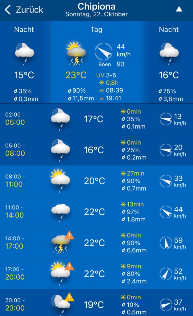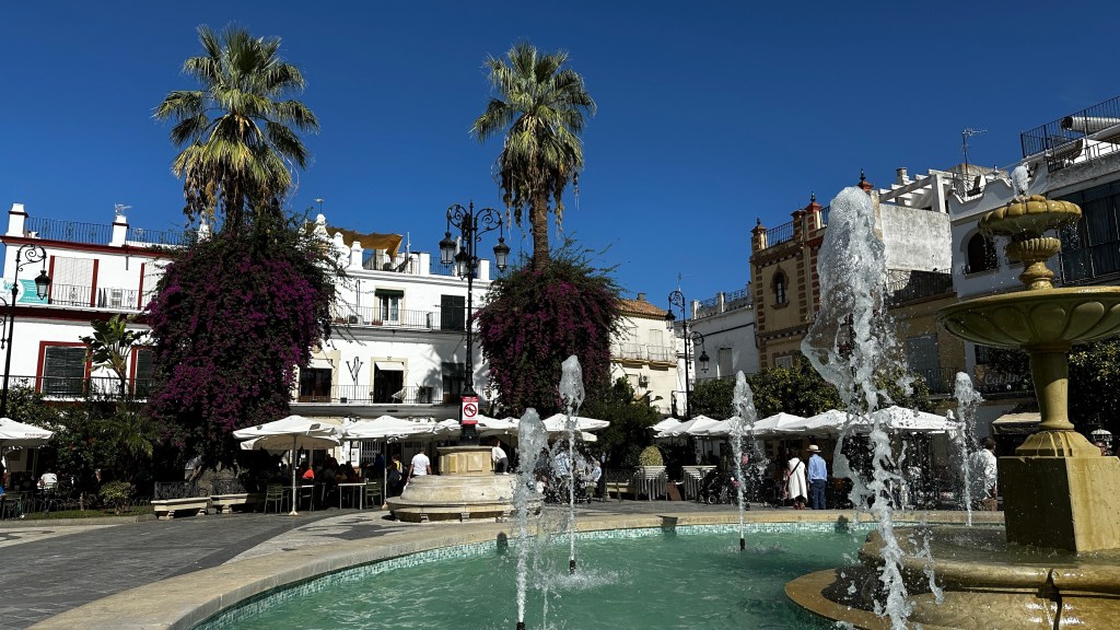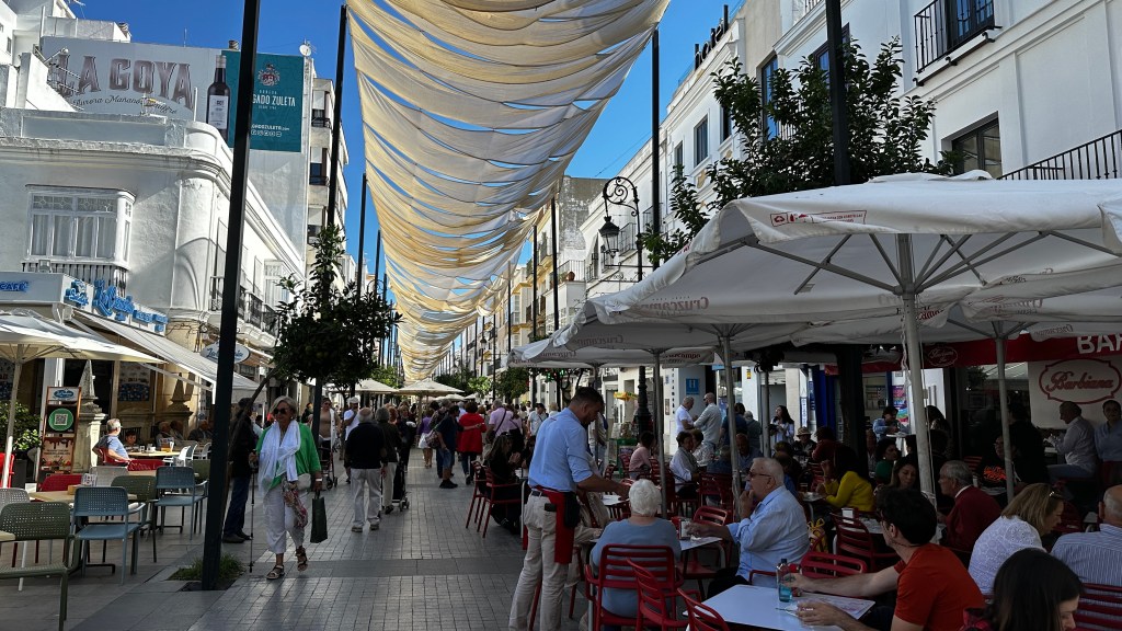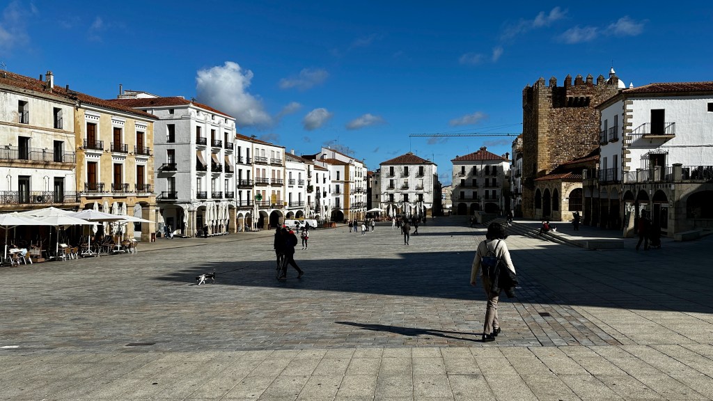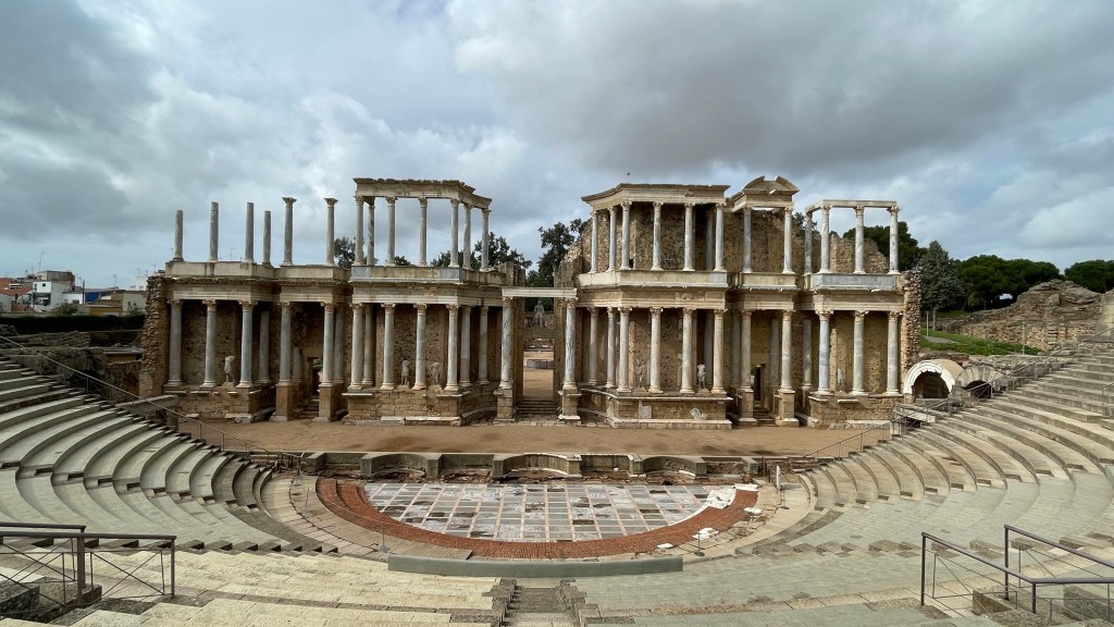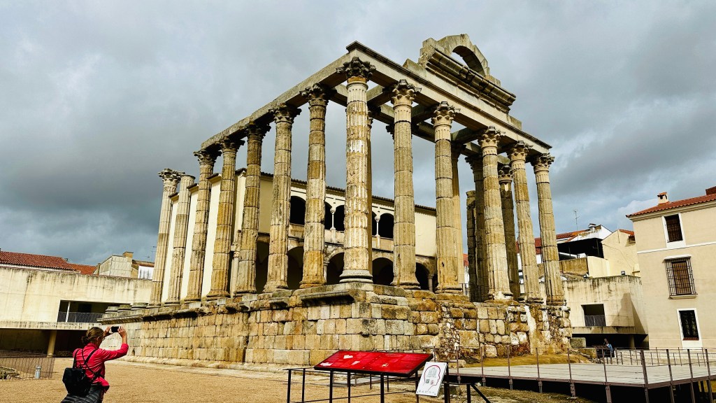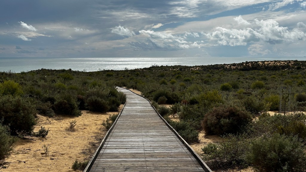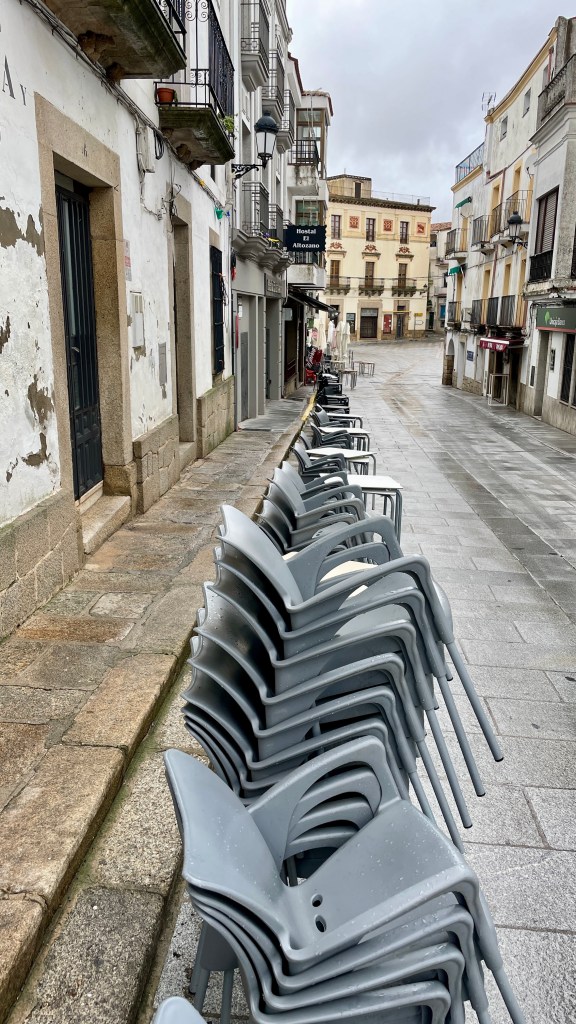 18.10.2023 Heute ist es windig, aber es regnet viel weniger als angekündigt. Bei uns ist erst einmal Waschtag. Am Nachmittag fahren wir nur gut 5 km auf einem sehr schönen Weg zum Cabo Roche. Die Küste hier ähnelt ein wenig der Algarve, und man hat auch einen schönen Blick auf Conil mit den vielen Gleitschirmfliegern. Den Abend genießen wir dann zusammen mit Ulrike und Ulrich bei einem Essen in unserem Wohnmobil.19.10.2023 Wir verlassen Conil. Es hat uns sehr gut gefallen, und wir sind sicher, dass wir nochmal hierher kommen wollen! 80 km sind es nach Chipiona zum Stellplatz „La Siesta de la Gaviota“, wo wir im Frühjahr 2022 schon einmal waren. Nach der Ankunft und kleinem Lunch versuchen wir uns an einem Strandspaziergang, aber es stürmt und regnet dann doch mächtig. Während wir Sherry und Manzanilla probieren, ist es für das Wohnmobil eine richtige „Dichtigkeitsprüfung“, die es ohne Probleme besteht.20.10.2023 Die Sonne scheint wieder und wir laufen nach Chipiona. Es ist eine richtig spanische Stadt am Meer, mit einem Leuchtturm und schönen Straßen. Mittagessen für uns gibt es in der Bar Rubio Marcario, voll und laut, mit guten Tapas und Getränken. Wir brauchten nur ein wenig „Eselsgeduld“, weil man hier eben eher ab 14 Uhr und nicht schon um halb eins Mittag isst. Den Rest des Tages verbringen wir am Wohnmobil. Manfred organisiert etwas mehr Speicherplatz für unsere Webseite, die ab sofort übrigens auch unter DaMaTours.net zu erreichen ist. 21.10.2023 Unsere kleine Radtour bringt uns nach Sanlúcar de Barrameda. Die lebhafte Stadt gefällt uns auch bei diesem zweiten Besuch (nach März 2022] sehr gut. Historisch sind von hier schon Magallan und Columbus auf Seereisen gestartet. Landschaftlich ist die Mündung des Guadalquivir mit breiten Stränden und Sandbänken sehr reizvoll. Eine schöne Fußgängerzone (mit Modellauto-Rennbahn), Kirchen, Markthalle und Restaurants mit sehr spanischem Essen ergänzen das. Wir probieren hier auch eine Tortilla de Camparones, eine Art Shrimp-Cracker. Zum Sonnenuntergang besuchen wir dann noch ein neues Lokal in der Nähe (Saam Club del Mar – Beachclub en Chipiona).22.10.2023 Heute ist es sehr stürmig, und es regnet heftig. Wir bleiben fast den ganzen Tag im wackelnden Wohnmobil. Manfred liest ein Buchgeschenk von den Kindern zu Ende und ist ganz begeistert („Der Astronaut“ von Andy Weir). Erst zum Sonnenuntergang wagen wir uns raus und gehen nochmal zu dem Strandlokal von gestern … drinnen sitzen nur an einem Tisch ein paar Spanier. Sie erklären uns, dass geschlossen ist, aber was wir denn trinken wollten. So werden wir zu Manzanilla und Kräuterlikör eingeladen und genießen das Schauspiel von Sturm und Sonnenuntergang hinter der großen Glasfront.23.10.2023 Luftlinie sind es nur gut 50 km nach El Rocío am Doñana Nationalpark, aber wir müssen fast 200 km fahren, um dorthin zu kommen. Der Wallfahrtsort hat eine hübsche Kirche und die Besonderheit, dass dort alle Straßen nur aus Sand bestehen. Ein bisschen Western-Flair verbreitet das. Wir fahren weiter durch den Nationalpark und stoppen am Parkplatz „Cuesta Maneli“, von wo ein Holzsteg über die Dünen zum Meer führt. Ein paar Kilometer weiter mieten wir uns dann auf dem Camping „Playa de Mazagón“ ein. Wir sind gefühlt die einzigen Gäste und bekommen einen Premiumplatz auf einem Fahrweg (damit wir nicht im Sand versinken). Ein Strandspaziergang, ein kleiner Einkauf und ein schöner Sonnenuntergang schließen den Tag ab.24.10.2023 Wir fahren heute etwa 250 km in die Extremadura nach Zafra. Die Extremadura heißt so, weil das Leben hier so hart ist, und Zafra ist das größte Safran-Anbaugebiet in Europa (Quatsch!). Von unserem pragmatisch-praktischen Stellplatz in Zafra sind es nur ein paar Minuten Fußweg in die Stadt. Es gibt eine schöne Einkaufsstraße und so viele Adelspaläste, dass auch schon mal einer samt Innenhof als Modeladen genutzt werden kann. Im Convento Santa Clara gibt es ein Museum und eine „Gebäckklappe“, aus der heraus die Nonnen das selbstgebackene Naschwerk verkaufen. Die Kirche Santa Maria de Candelaria beeindruckt mit einem riesigen Barock-Altar und einem verspielten Kreuzrippengewölbe. Und dann entdecken wir noch die schönste Apotheke Spaniens. Die Burg von Zafra wird heute als Hotel genutzt und bietet uns ein schönes Ambiente für einen „Absacker“.25.10.2023 Nach einer knappen Stunde Fahrt sind wir bereits in Mérida, der Hauptstadt der Extremadura. Mérida ist das spanische Rom, mit allem, was dazugehört: weltweit längste Brücke aus der Römerzeit (792 m), Diana-Tempel, Amphitheater, Teatro Romano, Aquädukt und vieles mehr. Beeindruckt hat uns auch das Museo Nacional de Arte Romano vom spanischen Architekten Rafael Moneo … eine wunderschöne Kunst-Basilika. Für unser Mittagessen finden wir ein wunderbares spanisches Lokal „Tábula Calda“. Die Verkabelung der Stadt im vietnamesischen Stil findet unsere Aufmerksamkeit, und auch die neue Puente Lusitania von Stararchitekt Santiago Calatrava würdigen wir durch eine kleine Begehung.26.10.2023 Am Morgen setzen wir uns erst einmal mit einer Versorgungsstation auf dem Stellplatz in Mérida auseinander. Die Bedienung dieser Dinger ist überall anders und gelegentlich auch eine Herausforderung. Dann fahren wir nur gut 40 km nach Montánchez auf den schön angelegten „Camperstop Alegría“. Es regnet heute heftig, und Dagmar zaubert uns erstmal ein Risotto. Am späten Nachmittag wagen wir uns in einer Regenpause auf einen Rundgang durch den Ort, der bei diesem Wetter etwas verlassen wirkt. Dennoch ist Montánchez vor allem für die Produktion von Schinken sehr bekannt. Oben auf der Burg bietet uns der „Balkon der Extremadura“ eine schöne Aussicht.27.10.2023 Vormittags lassen wir es ruhig angehen, weil das Wetter noch nicht so toll ist. Gegen 15 Uhr starten wir dann eine Wanderung hinunter nach Torre de Santa Maria und zu einer wohl 500 Jahre alten