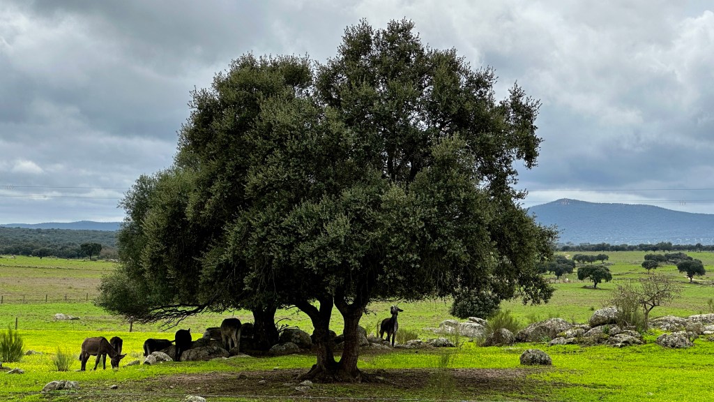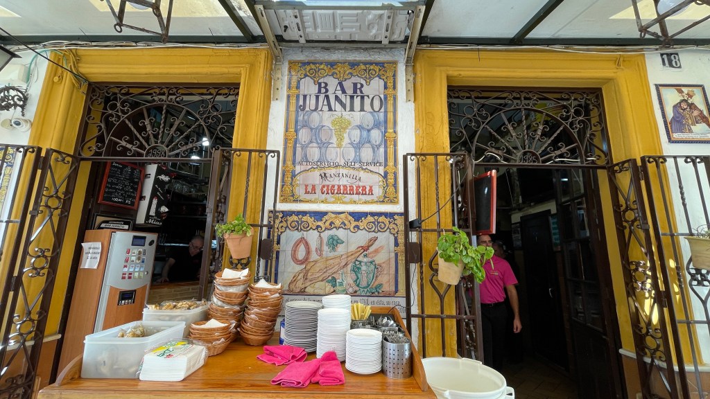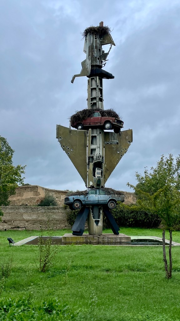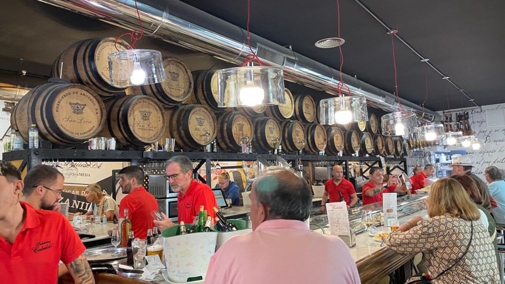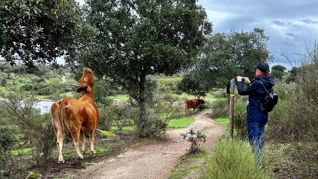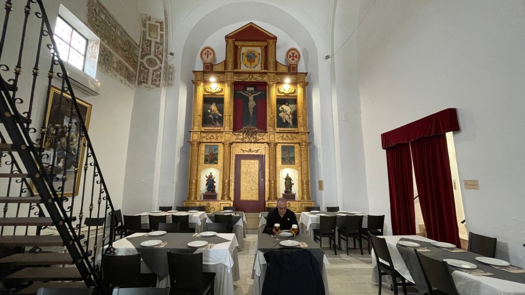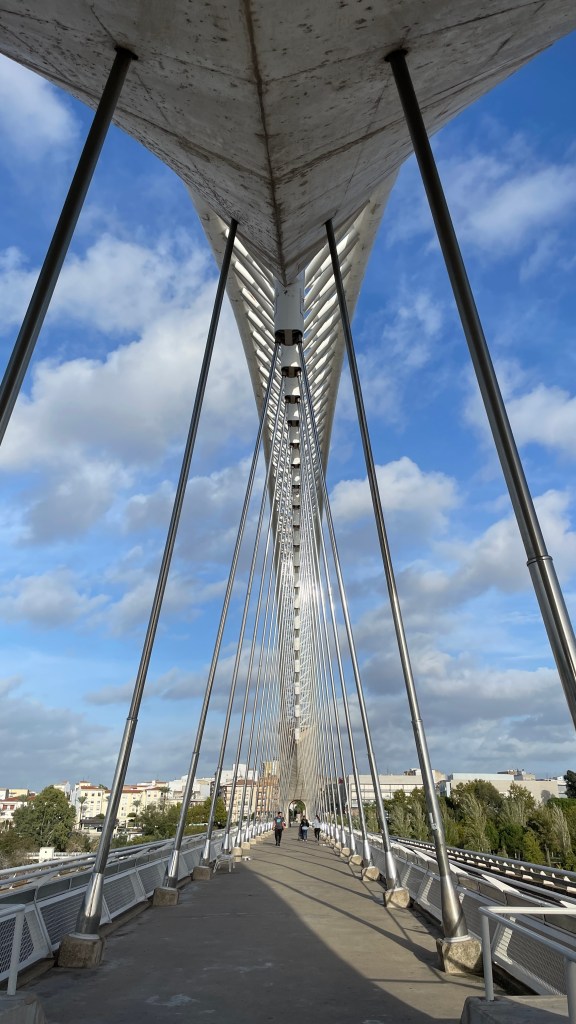 18.10.2023 Heute ist es windig, aber es regnet viel weniger als angekündigt. Bei uns ist erst einmal Waschtag. Am Nachmittag fahren wir nur gut 5 km auf einem sehr schönen Weg zum Cabo Roche. Die Küste hier ähnelt ein wenig der Algarve, und man hat auch einen schönen Blick auf Conil mit den vielen Gleitschirmfliegern. Den Abend genießen wir dann zusammen mit Ulrike und Ulrich bei einem Essen in unserem Wohnmobil.19.10.2023 Wir verlassen Conil. Es hat uns sehr gut gefallen, und wir sind sicher, dass wir nochmal hierher kommen wollen! 80 km sind es nach Chipiona zum Stellplatz „La Siesta de la Gaviota“, wo wir im Frühjahr 2022 schon einmal waren. Nach der Ankunft und kleinem Lunch versuchen wir uns an einem Strandspaziergang, aber es stürmt und regnet dann doch mächtig. Während wir Sherry und Manzanilla probieren, ist es für das Wohnmobil eine richtige „Dichtigkeitsprüfung“, die es ohne Probleme besteht.20.10.2023 Die Sonne scheint wieder und wir laufen nach Chipiona. Es ist eine richtig spanische Stadt am Meer, mit einem Leuchtturm und schönen Straßen. Mittagessen für uns gibt es in der Bar Rubio Marcario, voll und laut, mit guten Tapas und Getränken. Wir brauchten nur ein wenig „Eselsgeduld“, weil man hier eben eher ab 14 Uhr und nicht schon um halb eins Mittag isst. Den Rest des Tages verbringen wir am Wohnmobil. Manfred organisiert etwas mehr Speicherplatz für unsere Webseite, die ab sofort übrigens auch unter DaMaTours.net zu erreichen ist. 21.10.2023 Unsere kleine Radtour bringt uns nach Sanlúcar de Barrameda. Die lebhafte Stadt gefällt uns auch bei diesem zweiten Besuch (nach März 2022] sehr gut. Historisch sind von hier schon Magallan und Columbus auf Seereisen gestartet. Landschaftlich ist die Mündung des Guadalquivir mit breiten Stränden und Sandbänken sehr reizvoll. Eine schöne Fußgängerzone (mit Modellauto-Rennbahn), Kirchen, Markthalle und Restaurants mit sehr spanischem Essen ergänzen das. Wir probieren hier auch eine Tortilla de Camparones, eine Art Shrimp-Cracker. Zum Sonnenuntergang besuchen wir dann noch ein neues Lokal in der Nähe (Saam Club del Mar – Beachclub en Chipiona).22.10.2023 Heute ist es sehr stürmig, und es regnet heftig. Wir bleiben fast den ganzen Tag im wackelnden Wohnmobil. Manfred liest ein Buchgeschenk von den Kindern zu Ende und ist ganz begeistert („Der Astronaut“ von Andy Weir). Erst zum Sonnenuntergang wagen wir uns raus und gehen nochmal zu dem Strandlokal von gestern … drinnen sitzen nur an einem Tisch ein paar Spanier. Sie erklären uns, dass geschlossen ist, aber was wir denn trinken wollten. So werden wir zu Manzanilla und Kräuterlikör eingeladen und genießen das Schauspiel von Sturm und Sonnenuntergang hinter der großen Glasfront.23.10.2023 Luftlinie sind es nur gut 50 km nach El Rocío am Doñana Nationalpark, aber wir müssen fast 200 km fahren, um dorthin zu kommen. Der Wallfahrtsort hat eine hübsche Kirche und die Besonderheit, dass dort alle Straßen nur aus Sand bestehen. Ein bisschen Western-Flair verbreitet das. Wir fahren weiter durch den Nationalpark und stoppen am Parkplatz „Cuesta Maneli“, von wo ein Holzsteg über die Dünen zum Meer führt. Ein paar Kilometer weiter mieten wir uns dann auf dem Camping „Playa de Mazagón“ ein. Wir sind gefühlt die einzigen Gäste und bekommen einen Premiumplatz auf einem Fahrweg (damit wir nicht im Sand versinken). Ein Strandspaziergang, ein kleiner Einkauf und ein schöner Sonnenuntergang schließen den Tag ab.24.10.2023 Wir fahren heute etwa 250 km in die Extremadura nach Zafra. Die Extremadura heißt so, weil das Leben hier so hart ist, und Zafra ist das größte Safran-Anbaugebiet in Europa (Quatsch!). Von unserem pragmatisch-praktischen Stellplatz in Zafra sind es nur ein paar Minuten Fußweg in die Stadt. Es gibt eine schöne Einkaufsstraße und so viele Adelspaläste, dass auch schon mal einer samt Innenhof als Modeladen genutzt werden kann. Im Convento Santa Clara gibt es ein Museum und eine „Gebäckklappe“, aus der heraus die Nonnen das selbstgebackene Naschwerk verkaufen. Die Kirche Santa Maria de Candelaria beeindruckt mit einem riesigen Barock-Altar und einem verspielten Kreuzrippengewölbe. Und dann entdecken wir noch die schönste Apotheke Spaniens. Die Burg von Zafra wird heute als Hotel genutzt und bietet uns ein schönes Ambiente für einen „Absacker“.25.10.2023 Nach einer knappen Stunde Fahrt sind wir bereits in Mérida, der Hauptstadt der Extremadura. Mérida ist das spanische Rom, mit allem, was dazugehört: weltweit längste Brücke aus der Römerzeit (792 m), Diana-Tempel, Amphitheater, Teatro Romano, Aquädukt und vieles mehr. Beeindruckt hat uns auch das Museo Nacional de Arte Romano vom spanischen Architekten Rafael Moneo … eine wunderschöne Kunst-Basilika. Für unser Mittagessen finden wir ein wunderbares spanisches Lokal „Tábula Calda“. Die Verkabelung der Stadt im vietnamesischen Stil findet unsere Aufmerksamkeit, und auch die neue Puente Lusitania von Stararchitekt Santiago Calatrava würdigen wir durch eine kleine Begehung.26.10.2023 Am Morgen setzen wir uns erst einmal mit einer Versorgungsstation auf dem Stellplatz in Mérida auseinander. Die Bedienung dieser Dinger ist überall anders und gelegentlich auch eine Herausforderung. Dann fahren wir nur gut 40 km nach Montánchez auf den schön angelegten „Camperstop Alegría“. Es regnet heute heftig, und Dagmar zaubert uns erstmal ein Risotto. Am späten Nachmittag wagen wir uns in einer Regenpause auf einen Rundgang durch den Ort, der bei diesem Wetter etwas verlassen wirkt. Dennoch ist Montánchez vor allem für die Produktion von Schinken sehr bekannt. Oben auf der Burg bietet uns der „Balkon der Extremadura“ eine schöne Aussicht.27.10.2023 Vormittags lassen wir es ruhig angehen, weil das Wetter noch nicht so toll ist. Gegen 15 Uhr starten wir dann eine Wanderung hinunter nach Torre de Santa Maria und zu einer wohl 500 Jahre alten