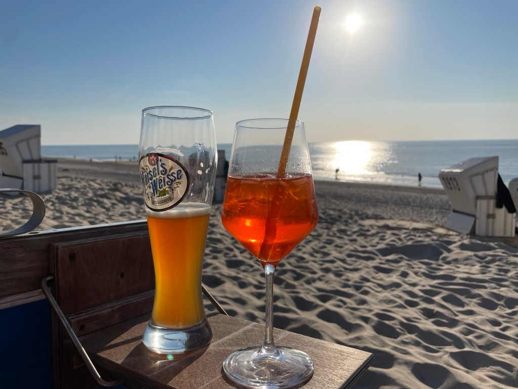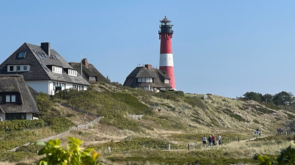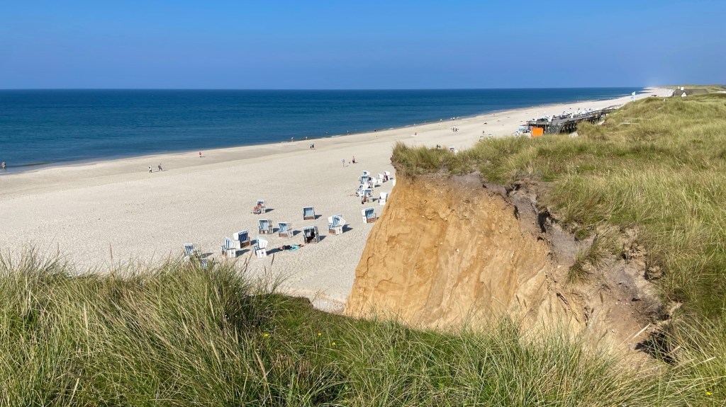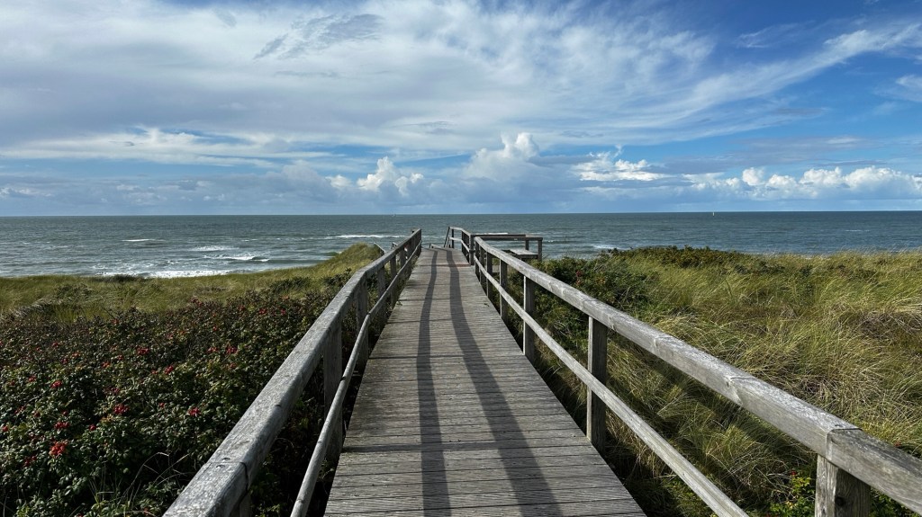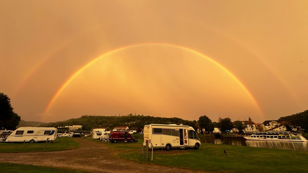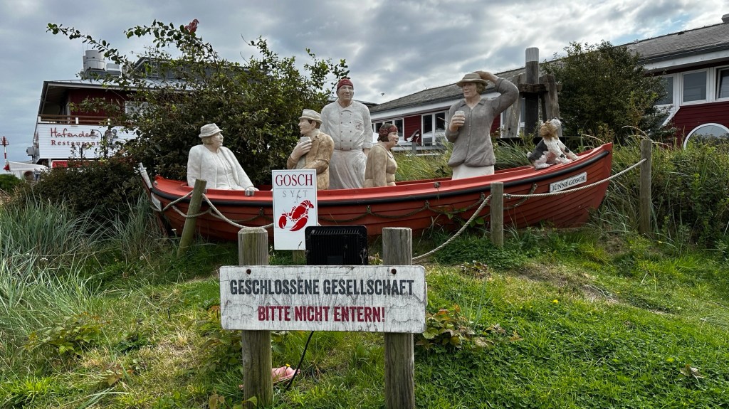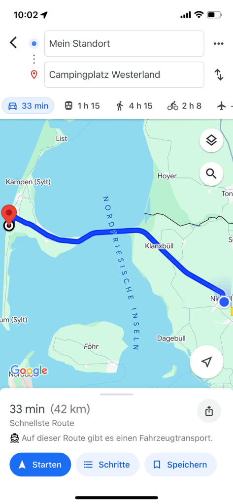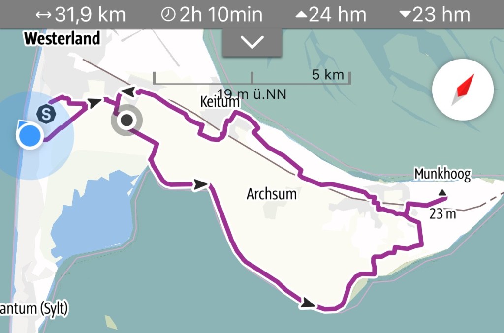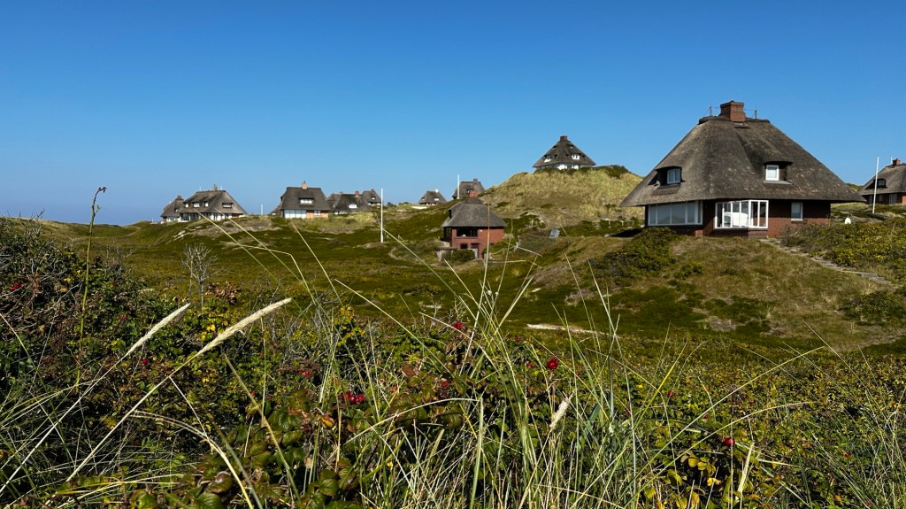 8.9.2024 Auf dem Weg nach Norden machen wir den ersten Stopp an der Weser in Bad Karlshafen. Die Hugenottenstadt hat schöne Architektur, aber der Regen schränkt den Genuss etwas ein. Stattdessen beeindruckt uns auf dem Stellplatz an der Weser ein prächtiger Regenbogen … „Jupiter ascending“.9.9.2024 Wir fahren weiter nach Hannover und verbringen einen sehr schönen Tag mit der Familie … inklusive Spielplatzbesuch.10.9.2024 Durch den Elbtunnel geht es heute nach Schafstedt am Nord-Ostsee-Kanal. Zwischen den Regenschauern machen wir eine Radtour ans Ende des Kanals und zu den Schleusen bei Brunsbüttel.11.9.2024 Nach zwei Stunden Fahrt und einer kleinen Einkaufstour bei einem Rewe-Markt erreichen wir das Nolde-Museum in Neukirchen-Seebüll, unmittelbar an der dänischen Grenze. Das Museum liegt sehr schön in der flachen Landschaft und hat einen bezaubernden Garten. Die Ausstellung mit den Werken des Expressionisten Emil Nolde gefällt uns sehr gut, insbesondere auch deshalb, weil bei aller Wertschätzung für seine Bilder seine Nähe zu den Nationalsozialisten kritisch aufgearbeitet wurde. Am späten Nachmittag fahren wir dann einen kostenfreien Stellplatz am Sportplatz in Neukirchen an. Unsere sehr netten Nachbarn dort sind Darmstädter mit einem Carthago-Wohnmobil. Bei einem Glas Wein haben wir uns viel zu erzählen.12.9.2024 Über die Autoverladung in Niebüll bringt uns der Blaue Autozug über den fast 100 Jahre alten Hindenburgdamm nach Westerland auf Sylt. Leider gibt es selbstverschuldet kleine Blessuren hinten am Wohnmobil (die wir aber dank Sekundenkleber und Panzertape weitgehend unsichtbar machen können). Das Wetter ist mäßig, der vorgebuchte Campingplatz aber sehr gut und nah am Strand gelegen. Am Abend treffen wir unsere Freunde Liane und Michel in der Osteria am Campingplatz. Hier sollten wir natürlich Fisch essen, aber die Spareribs sind trotzdem hervorragend!13.9.2024 Zu viert fahren wir eine kleine Radrunde über Wenningstedt, Braderup und Keitum. Unsere Freunde kennen sich gut aus und zeigen uns, viele Highlights dieser Insel: Wenningstedt mit dem „Gosch“, die „Surferinnen“ von Christel & Laura Lechner, die Kirche St. Severin aus dem 13. Jh., den „Fisch Blum“ in Tinnum (dort essen wir dieses Mal auch wirklich Fisch), die Sylter Schokoladenmanufaktur mit leckerem Kuchen und Einiges mehr. Nach der Radtour treffen wir uns noch auf den SunDowner beim Beach House, und dann ist der Tag auch schon geschafft … 😊😊.14.9.2024 Wir genießen einen ruhigen Tag mit Besuch der Saunalandschaft in der „Sylter Welle“ und gemeinsamem Kochen im Appartment von Liane und Michel am Abend.15.9.2024 Mit dem Auto unserer Freunde erkunden wir den Norden der Insel. Erster kurzer Halt ist in Kampen, wo die Preise den weniger Reichen weniger Vergnügen bereiten. Die Straße „Strönwai“ mit dem Lokal „Pony“, das vor ein paar Wochen durch rechtes Gegröle bekannt wurde, sieht eigentlich ganz normal aus. Eine Golferfigur besticht duch prima Haltung beim Schwung. Danach geht es weiter nach Norden, wo die sehr schöne Dünenlandschaft das Bild von Sylt bestimmt. An der nördlichsten Mautstation Deutschlands (es gibt ja nicht viele) zahlen wir 7 € für die Nutzung der Privatstraße auf den Lister Ellenbogen. Wir genießen das schöne Naturschutzgebiet und werfen einen Blick auf die dänische Nachbarinsel Rømø. Anschließend geht es weiter nach List. Wir essen leckeren Fisch beim Gosch (der Hausherr ist auch grad da), schlendern durch die Tonnenhalle (ohne etwas zu kaufen) und besuchen das „Erlebniszentrum Naturgewalten“ (sehr lehrreich 🧐). Bei der Rückfahrt werfen wir noch einen Blick auf die Wanderdüne Horst.16.9.2024 Bei sehr schönem Wetter machen wir eine Radtour in den Osten der Insel. Entlang dem Wattenmeer und vielen Schafen gelangen wir zum „Morsumer Kliff“. Das gute und erstaunlich preiswerte Mittagessen (einschließlich Quellersalat) gibt es in Morsum im Restaurant „Wie ZuHause“ und den Absacker nach der Radtour in der „Strandoase Sylt“. Die Strandoase ist übrigens Drehort beim Sylt-Krimi „Nord Nord Mord“ S01F04 🧐.17.9.2024 Unseren Hochzeitstag feiern wir zu zweit. Nach gemütlichem Start in den Tag wandern wir am Strand nach Wenningstedt und essen dort beim „Gosch“. Es ist ein sehr schöner, sonniger Tag für uns beide!18.9.2024 Wir grillen ein paar Bratwürste und verbringen den Tag mit Liane und Michel am Wohnmobil. Abends fahren wir mit dem Rad nach Wenningstedt, wo wir den Sonnenuntergang am Restaurant „Gosch“ nicht ganz allein genießen. Die Veranstaltung des Comedian Ray Cay, die wir anschließend besuchen, vergessen wir mal lieber …19.9.2024 Bei bestem Wetter radeln wir durch sehr schöne Landschaft zur Südspitze von Sylt, nach Hörnum. Wir sehen uns am Hafen um, blicken auf die Nachbarinsel Föhr, bewundern die in den Dünen versteckten Häuser, besuchen das Strandlokal „Kap-Horn“ und die Kirche St. Thomas. In dem wirklich sehr schönen Ort Hörnum laufen gerade Filmaufnahmen zu „Nord Nord Mord“. Abends kochen und essen wir gemeinsam bei unseren Freunden.20.9.2024 Morgens ist es sehr feucht und diesig, und wir starten unsere Radtour erst zur Mittagszeit in einen sonnigen Tag hinein. Es geht nach Kampen, erste Station ist das Künstlerkaffee „Kupferkanne“, sehr schön auf der Wattseite gelegen in und auf einer alten Bunkeranlage. Danach fahren wir auf die Seeseite und den wunderbaren Radweg durch die Dünenlandschaft ein gutes Stück Richtung List. Am Abend essen wir nochmal in der Osteria am Campingplatz und verabschieden uns dann von unseren Freunden, die sich morgen auf den Heimweg machen.21.9.2024 Eigentlich wollen wir über den Damm am Rantumbecken fahren, aber der ist wegen der Blauzungenkrankheit der dort weidenden Schafe gesperrt. Auf inzwischen fast vertrauten Wegen fahren wir dann trotzdem zunächst nach Tinnum zum Essen beim „Fisch Blum“ und dann nach Keitum, um dort das Syl