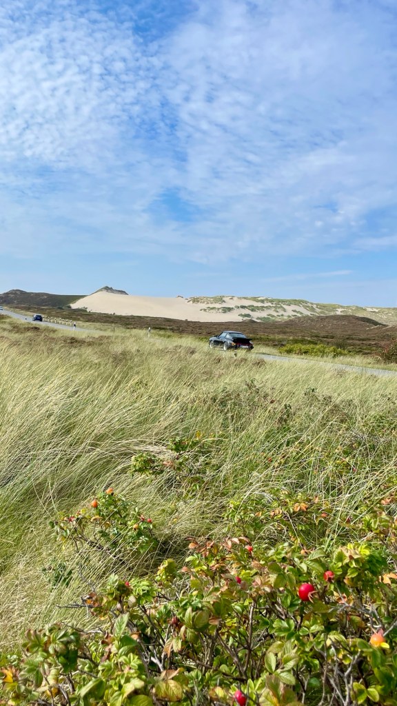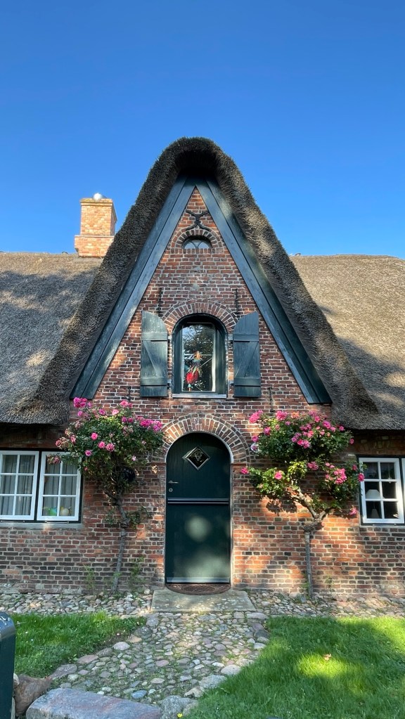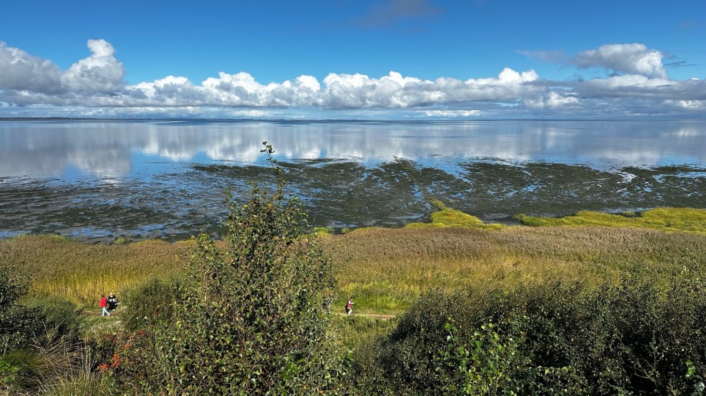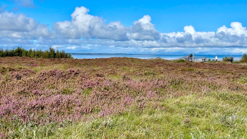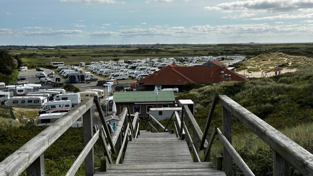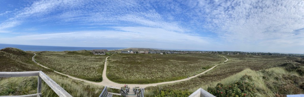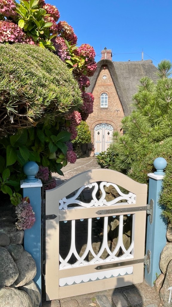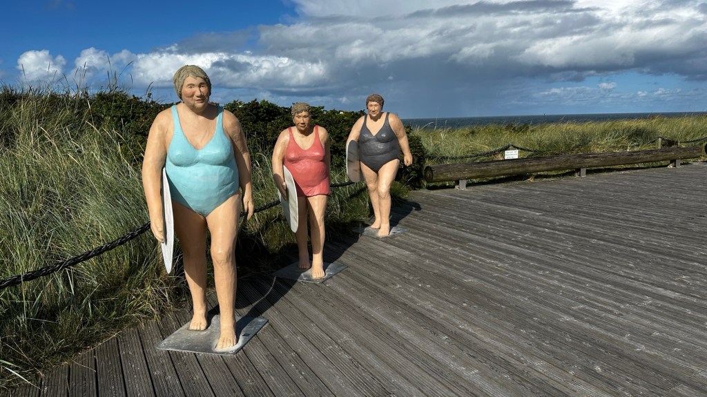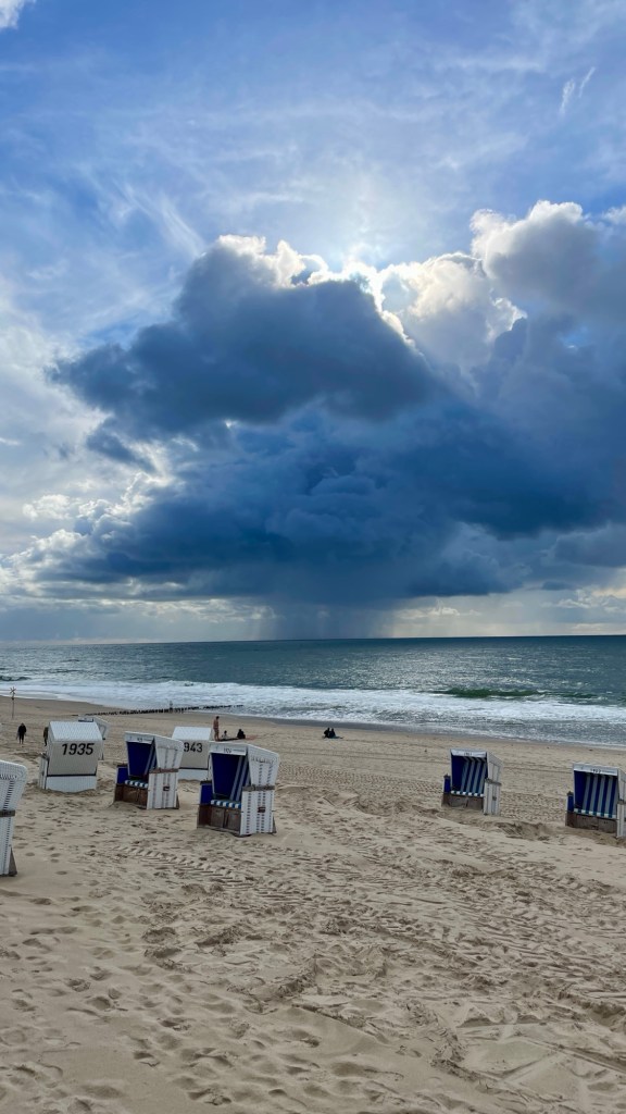 8.9.2024 Auf dem Weg nach Norden machen wir den ersten Stopp an der Weser in Bad Karlshafen. Die Hugenottenstadt hat schöne Architektur, aber der Regen schränkt den Genuss etwas ein. Stattdessen beeindruckt uns auf dem Stellplatz an der Weser ein prächtiger Regenbogen … „Jupiter ascending“.9.9.2024 Wir fahren weiter nach Hannover und verbringen einen sehr schönen Tag mit der Familie … inklusive Spielplatzbesuch.10.9.2024 Durch den Elbtunnel geht es heute nach Schafstedt am Nord-Ostsee-Kanal. Zwischen den Regenschauern machen wir eine Radtour ans Ende des Kanals und zu den Schleusen bei Brunsbüttel.11.9.2024 Nach zwei Stunden Fahrt und einer kleinen Einkaufstour bei einem Rewe-Markt erreichen wir das Nolde-Museum in Neukirchen-Seebüll, unmittelbar an der dänischen Grenze. Das Museum liegt sehr schön in der flachen Landschaft und hat einen bezaubernden Garten. Die Ausstellung mit den Werken des Expressionisten Emil Nolde gefällt uns sehr gut, insbesondere auch deshalb, weil bei aller Wertschätzung für seine Bilder seine Nähe zu den Nationalsozialisten kritisch aufgearbeitet wurde. Am späten Nachmittag fahren wir dann einen kostenfreien Stellplatz am Sportplatz in Neukirchen an. Unsere sehr netten Nachbarn dort sind Darmstädter mit einem Carthago-Wohnmobil. Bei einem Glas Wein haben wir uns viel zu erzählen.12.9.2024 Über die Autoverladung in Niebüll bringt uns der Blaue Autozug über den fast 100 Jahre alten Hindenburgdamm nach Westerland auf Sylt. Leider gibt es selbstverschuldet kleine Blessuren hinten am Wohnmobil (die wir aber dank Sekundenkleber und Panzertape weitgehend unsichtbar machen können). Das Wetter ist mäßig, der vorgebuchte Campingplatz aber sehr gut und nah am Strand gelegen. Am Abend treffen wir unsere Freunde Liane und Michel in der Osteria am Campingplatz. Hier sollten wir natürlich Fisch essen, aber die Spareribs sind trotzdem hervorragend!13.9.2024 Zu viert fahren wir eine kleine Radrunde über Wenningstedt, Braderup und Keitum. Unsere Freunde kennen sich gut aus und zeigen uns, viele Highlights dieser Insel: Wenningstedt mit dem „Gosch“, die „Surferinnen“ von Christel & Laura Lechner, die Kirche St. Severin aus dem 13. Jh., den „Fisch Blum“ in Tinnum (dort essen wir dieses Mal auch wirklich Fisch), die Sylter Schokoladenmanufaktur mit leckerem Kuchen und Einiges mehr. Nach der Radtour treffen wir uns noch auf den SunDowner beim Beach House, und dann ist der Tag auch schon geschafft … 😊😊.14.9.2024 Wir genießen einen ruhigen Tag mit Besuch der Saunalandschaft in der „Sylter Welle“ und gemeinsamem Kochen im Appartment von Liane und Michel am Abend.15.9.2024 Mit dem Auto unserer Freunde erkunden wir den Norden der Insel. Erster kurzer Halt ist in Kampen, wo die Preise den weniger Reichen weniger Vergnügen bereiten. Die Straße „Strönwai“ mit dem Lokal „Pony“, das vor ein paar Wochen durch rechtes Gegröle bekannt wurde, sieht eigentlich ganz normal aus. Eine Golferfigur besticht duch prima Haltung beim Schwung. Danach geht es weiter nach Norden, wo die sehr schöne Dünenlandschaft das Bild von Sylt bestimmt. An der nördlichsten Mautstation Deutschlands (es gibt ja nicht viele) zahlen wir 7 € für die Nutzung der Privatstraße auf den Lister Ellenbogen. Wir genießen das schöne Naturschutzgebiet und werfen einen Blick auf die dänische Nachbarinsel Rømø. Anschließend geht es weiter nach List. Wir essen leckeren Fisch beim Gosch (der Hausherr ist auch grad da), schlendern durch die Tonnenhalle (ohne etwas zu kaufen) und besuchen das „Erlebniszentrum Naturgewalten“ (sehr lehrreich 🧐). Bei der Rückfahrt werfen wir noch einen Blick auf die Wanderdüne Horst.16.9.2024 Bei sehr schönem Wetter machen wir eine Radtour in den Osten der Insel. Entlang dem Wattenmeer und vielen Schafen gelangen wir zum „Morsumer Kliff“. Das gute und erstaunlich preiswerte Mittagessen (einschließlich Quellersalat) gibt es in Morsum im Restaurant „Wie ZuHause“ und den Absacker nach der Radtour in der „Strandoase Sylt“. Die Strandoase ist übrigens Drehort beim Sylt-Krimi „Nord Nord Mord“ S01F04 🧐.17.9.2024 Unseren Hochzeitstag feiern wir zu zweit. Nach gemütlichem Start in den Tag wandern wir am Strand nach Wenningstedt und essen dort beim „Gosch“. Es ist ein sehr schöner, sonniger Tag für uns beide!18.9.2024 Wir grillen ein paar Bratwürste und verbringen den Tag mit Liane und Michel am Wohnmobil. Abends fahren wir mit dem Rad nach Wenningstedt, wo wir den Sonnenuntergang am Restaurant „Gosch“ nicht ganz allein genießen. Die Veranstaltung des Comedian Ray Cay, die wir anschließend besuchen, vergessen wir mal lieber …19.9.2024 Bei bestem Wetter radeln wir durch sehr schöne Landschaft zur Südspitze von Sylt, nach Hörnum. Wir sehen uns am Hafen um, blicken auf die Nachbarinsel Föhr, bewundern die in den Dünen versteckten Häuser, besuchen das Strandlokal „Kap-Horn“ und die Kirche St. Thomas. In dem wirklich sehr schönen Ort Hörnum laufen gerade Filmaufnahmen zu „Nord Nord Mord“. Abends kochen und essen wir gemeinsam bei unseren Freunden.20.9.2024 Morgens ist es sehr feucht und diesig, und wir starten unsere Radtour erst zur Mittagszeit in einen sonnigen Tag hinein. Es geht nach Kampen, erste Station ist das Künstlerkaffee „Kupferkanne“, sehr schön auf der Wattseite gelegen in und auf einer alten Bunkeranlage. Danach fahren wir auf die Seeseite und den wunderbaren Radweg durch die Dünenlandschaft ein gutes Stück Richtung List. Am Abend essen wir nochmal in der Osteria am Campingplatz und verabschieden uns dann von unseren Freunden, die sich morgen auf den Heimweg machen.21.9.2024 Eigentlich wollen wir über den Damm am Rantumbecken fahren, aber der ist wegen der Blauzungenkrankheit der dort weidenden Schafe gesperrt. Auf inzwischen fast vertrauten Wegen fahren wir dann trotzdem zunächst nach Tinnum zum Essen beim „Fisch Blum“ und dann nach Keitum, um dort das Syl