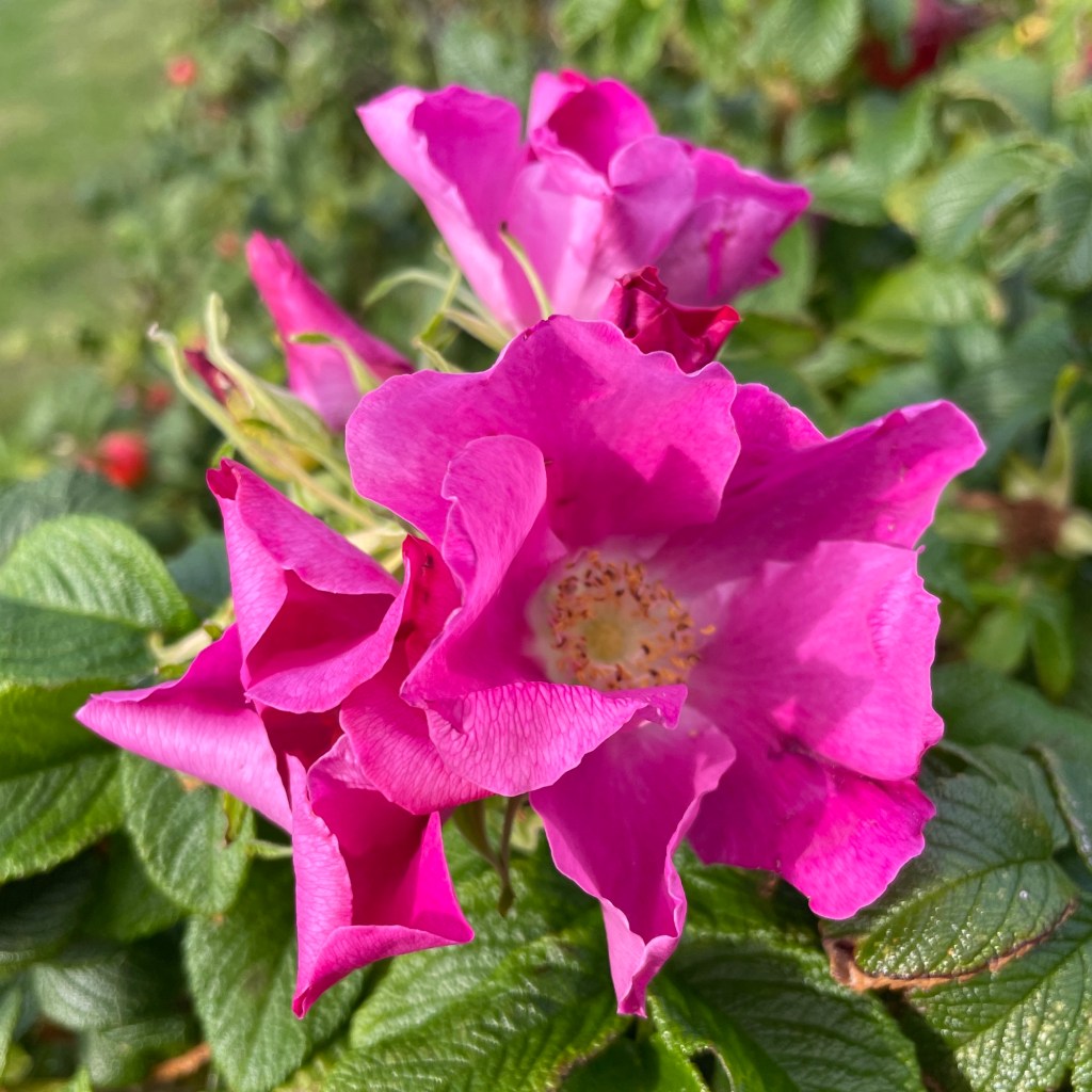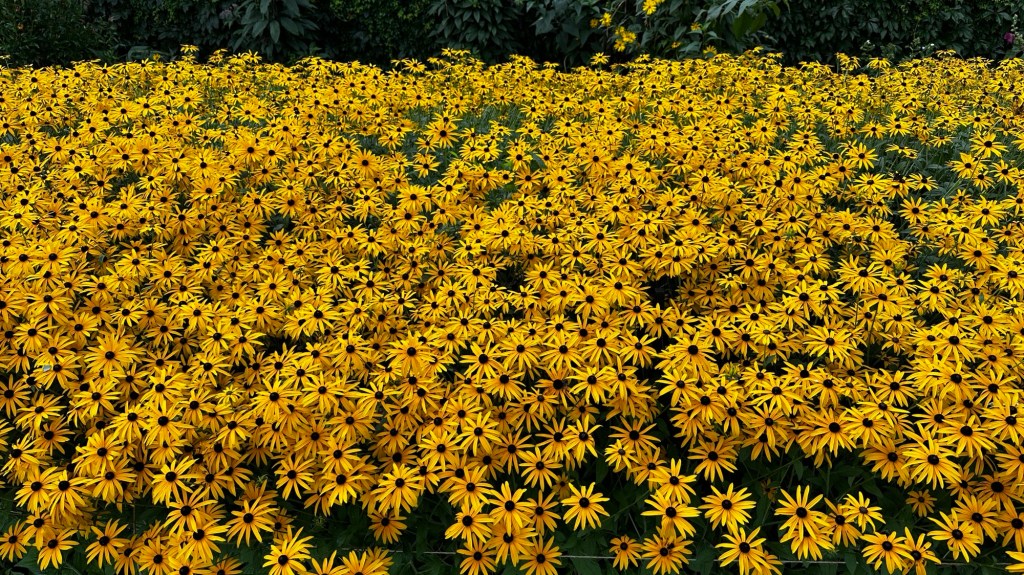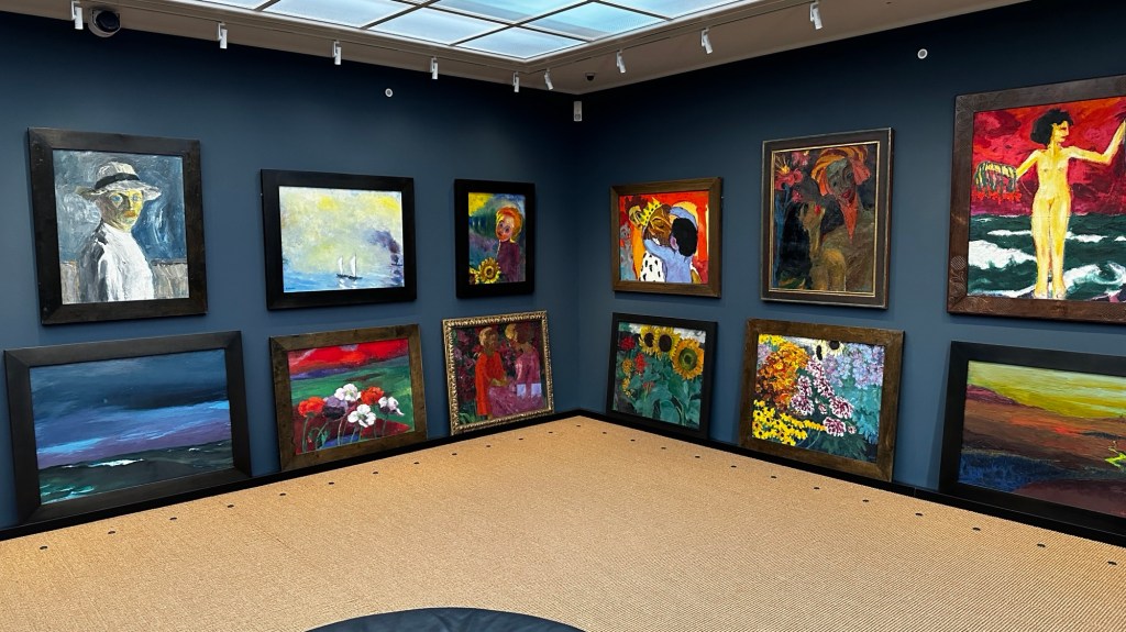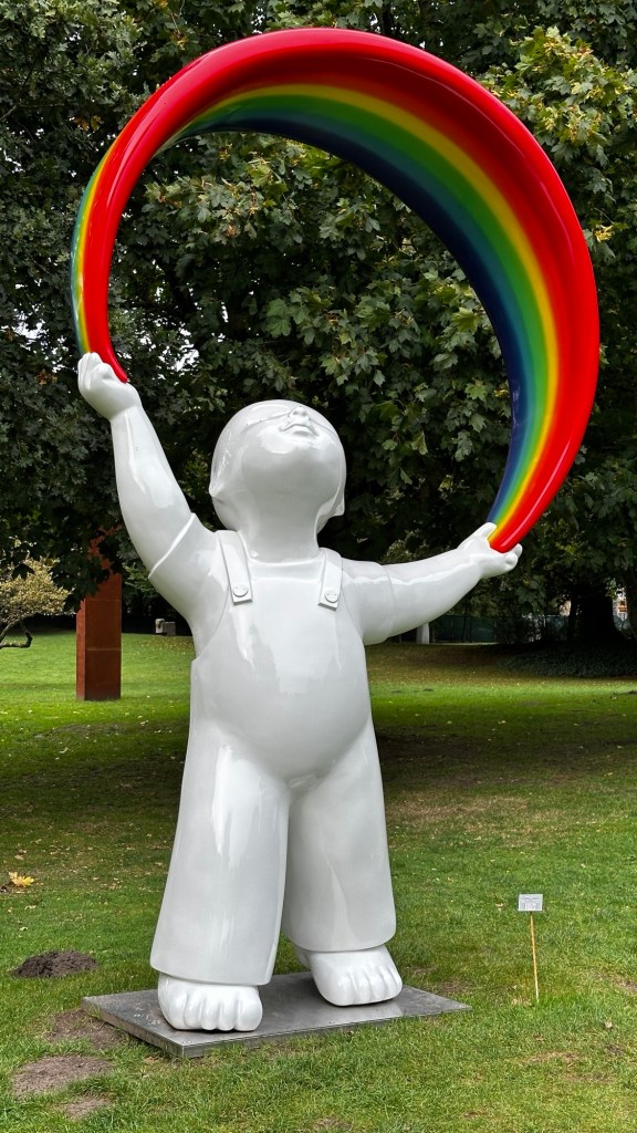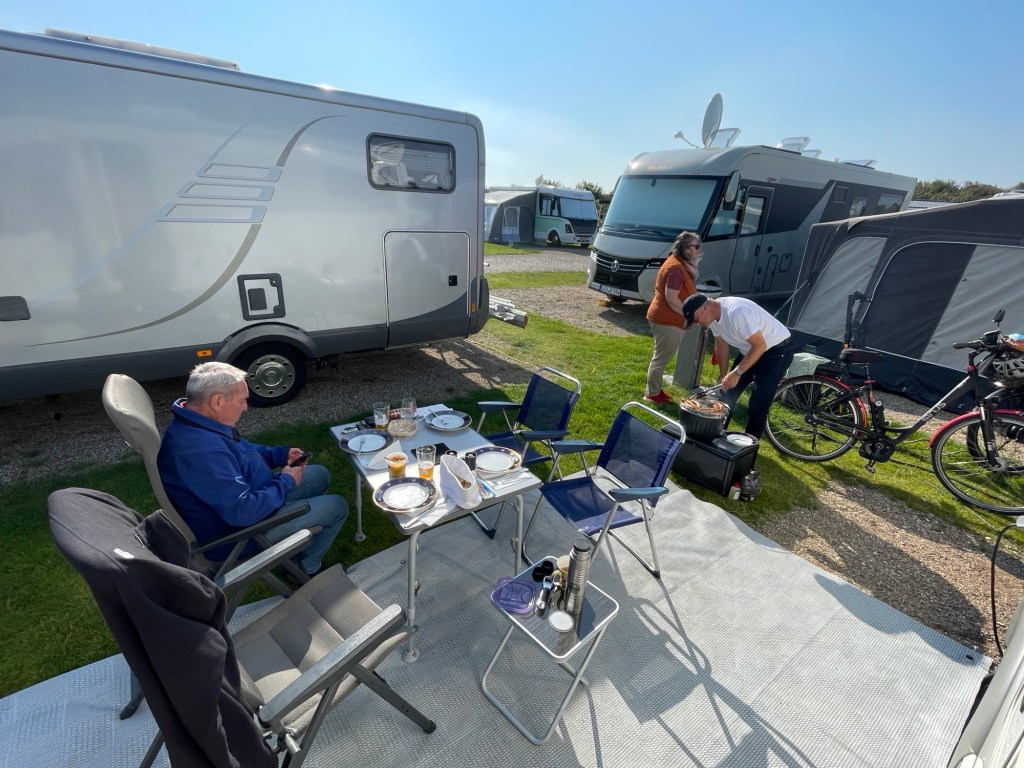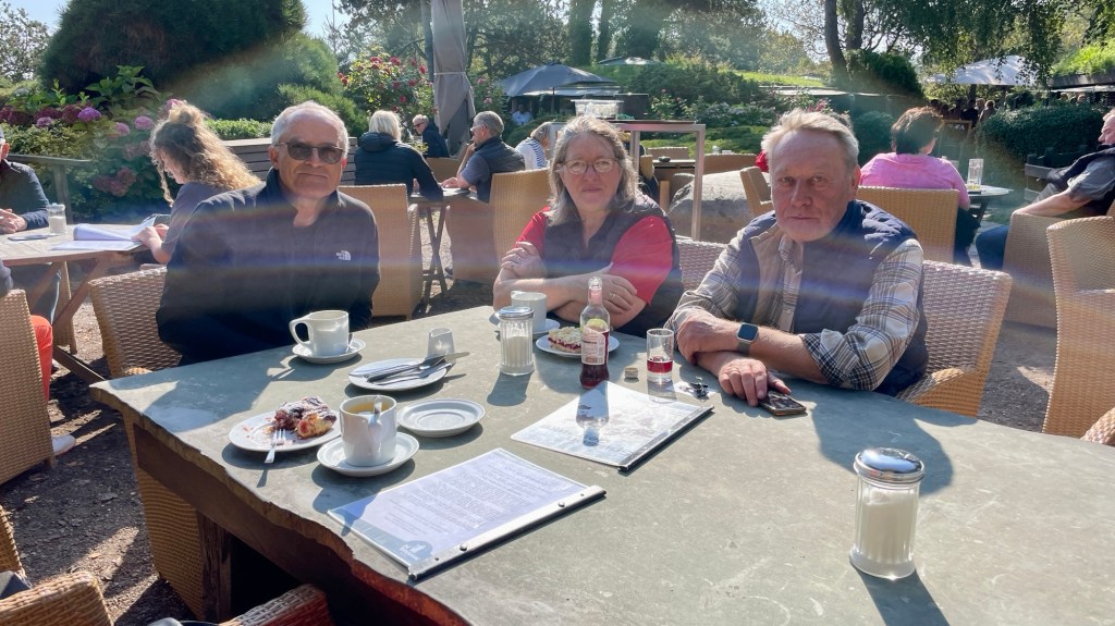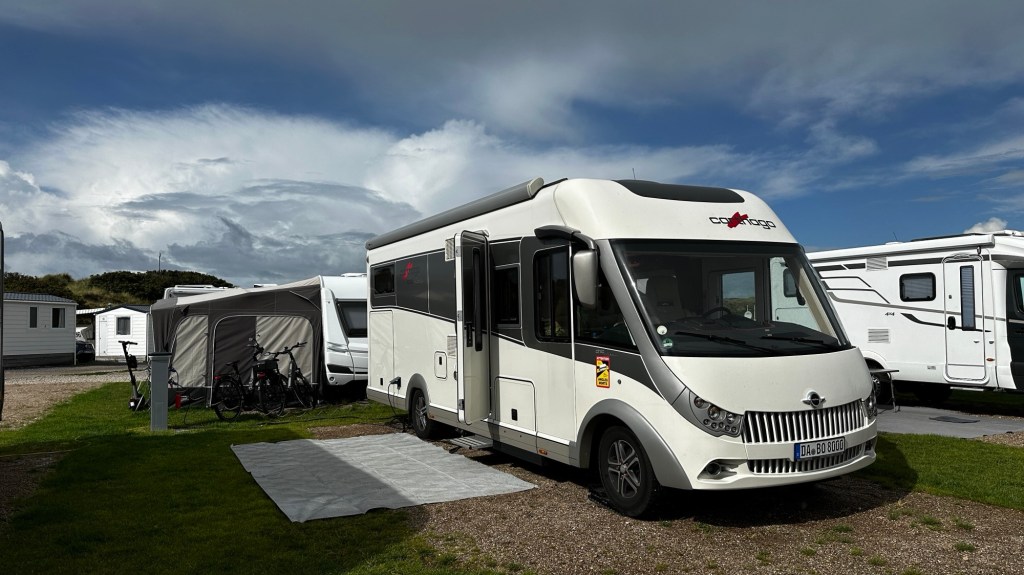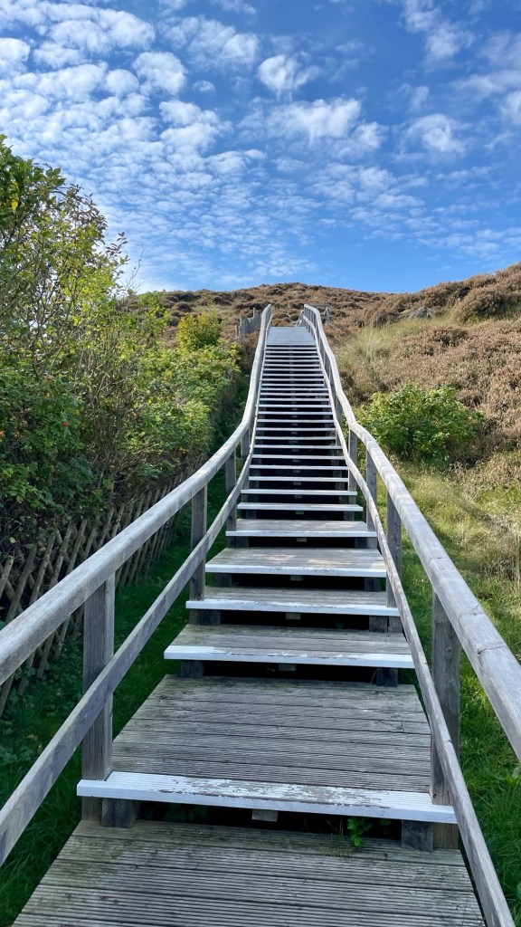 8.9.2024 Auf dem Weg nach Norden machen wir den ersten Stopp an der Weser in Bad Karlshafen. Die Hugenottenstadt hat schöne Architektur, aber der Regen schränkt den Genuss etwas ein. Stattdessen beeindruckt uns auf dem Stellplatz an der Weser ein prächtiger Regenbogen … „Jupiter ascending“.9.9.2024 Wir fahren weiter nach Hannover und verbringen einen sehr schönen Tag mit der Familie … inklusive Spielplatzbesuch.10.9.2024 Durch den Elbtunnel geht es heute nach Schafstedt am Nord-Ostsee-Kanal. Zwischen den Regenschauern machen wir eine Radtour ans Ende des Kanals und zu den Schleusen bei Brunsbüttel.11.9.2024 Nach zwei Stunden Fahrt und einer kleinen Einkaufstour bei einem Rewe-Markt erreichen wir das Nolde-Museum in Neukirchen-Seebüll, unmittelbar an der dänischen Grenze. Das Museum liegt sehr schön in der flachen Landschaft und hat einen bezaubernden Garten. Die Ausstellung mit den Werken des Expressionisten Emil Nolde gefällt uns sehr gut, insbesondere auch deshalb, weil bei aller Wertschätzung für seine Bilder seine Nähe zu den Nationalsozialisten kritisch aufgearbeitet wurde. Am späten Nachmittag fahren wir dann einen kostenfreien Stellplatz am Sportplatz in Neukirchen an. Unsere sehr netten Nachbarn dort sind Darmstädter mit einem Carthago-Wohnmobil. Bei einem Glas Wein haben wir uns viel zu erzählen.12.9.2024 Über die Autoverladung in Niebüll bringt uns der Blaue Autozug über den fast 100 Jahre alten Hindenburgdamm nach Westerland auf Sylt. Leider gibt es selbstverschuldet kleine Blessuren hinten am Wohnmobil (die wir aber dank Sekundenkleber und Panzertape weitgehend unsichtbar machen können). Das Wetter ist mäßig, der vorgebuchte Campingplatz aber sehr gut und nah am Strand gelegen. Am Abend treffen wir unsere Freunde Liane und Michel in der Osteria am Campingplatz. Hier sollten wir natürlich Fisch essen, aber die Spareribs sind trotzdem hervorragend!13.9.2024 Zu viert fahren wir eine kleine Radrunde über Wenningstedt, Braderup und Keitum. Unsere Freunde kennen sich gut aus und zeigen uns, viele Highlights dieser Insel: Wenningstedt mit dem „Gosch“, die „Surferinnen“ von Christel & Laura Lechner, die Kirche St. Severin aus dem 13. Jh., den „Fisch Blum“ in Tinnum (dort essen wir dieses Mal auch wirklich Fisch), die Sylter Schokoladenmanufaktur mit leckerem Kuchen und Einiges mehr. Nach der Radtour treffen wir uns noch auf den SunDowner beim Beach House, und dann ist der Tag auch schon geschafft … 😊😊.14.9.2024 Wir genießen einen ruhigen Tag mit Besuch der Saunalandschaft in der „Sylter Welle“ und gemeinsamem Kochen im Appartment von Liane und Michel am Abend.15.9.2024 Mit dem Auto unserer Freunde erkunden wir den Norden der Insel. Erster kurzer Halt ist in Kampen, wo die Preise den weniger Reichen weniger Vergnügen bereiten. Die Straße „Strönwai“ mit dem Lokal „Pony“, das vor ein paar Wochen durch rechtes Gegröle bekannt wurde, sieht eigentlich ganz normal aus. Eine Golferfigur besticht duch prima Haltung beim Schwung. Danach geht es weiter nach Norden, wo die sehr schöne Dünenlandschaft das Bild von Sylt bestimmt. An der nördlichsten Mautstation Deutschlands (es gibt ja nicht viele) zahlen wir 7 € für die Nutzung der Privatstraße auf den Lister Ellenbogen. Wir genießen das schöne Naturschutzgebiet und werfen einen Blick auf die dänische Nachbarinsel Rømø. Anschließend geht es weiter nach List. Wir essen leckeren Fisch beim Gosch (der Hausherr ist auch grad da), schlendern durch die Tonnenhalle (ohne etwas zu kaufen) und besuchen das „Erlebniszentrum Naturgewalten“ (sehr lehrreich 🧐). Bei der Rückfahrt werfen wir noch einen Blick auf die Wanderdüne Horst.16.9.2024 Bei sehr schönem Wetter machen wir eine Radtour in den Osten der Insel. Entlang dem Wattenmeer und vielen Schafen gelangen wir zum „Morsumer Kliff“. Das gute und erstaunlich preiswerte Mittagessen (einschließlich Quellersalat) gibt es in Morsum im Restaurant „Wie ZuHause“ und den Absacker nach der Radtour in der „Strandoase Sylt“. Die Strandoase ist übrigens Drehort beim Sylt-Krimi „Nord Nord Mord“ S01F04 🧐.17.9.2024 Unseren Hochzeitstag feiern wir zu zweit. Nach gemütlichem Start in den Tag wandern wir am Strand nach Wenningstedt und essen dort beim „Gosch“. Es ist ein sehr schöner, sonniger Tag für uns beide!18.9.2024 Wir grillen ein paar Bratwürste und verbringen den Tag mit Liane und Michel am Wohnmobil. Abends fahren wir mit dem Rad nach Wenningstedt, wo wir den Sonnenuntergang am Restaurant „Gosch“ nicht ganz allein genießen. Die Veranstaltung des Comedian Ray Cay, die wir anschließend besuchen, vergessen wir mal lieber …19.9.2024 Bei bestem Wetter radeln wir durch sehr schöne Landschaft zur Südspitze von Sylt, nach Hörnum. Wir sehen uns am Hafen um, blicken auf die Nachbarinsel Föhr, bewundern die in den Dünen versteckten Häuser, besuchen das Strandlokal „Kap-Horn“ und die Kirche St. Thomas. In dem wirklich sehr schönen Ort Hörnum laufen gerade Filmaufnahmen zu „Nord Nord Mord“. Abends kochen und essen wir gemeinsam bei unseren Freunden.20.9.2024 Morgens ist es sehr feucht und diesig, und wir starten unsere Radtour erst zur Mittagszeit in einen sonnigen Tag hinein. Es geht nach Kampen, erste Station ist das Künstlerkaffee „Kupferkanne“, sehr schön auf der Wattseite gelegen in und auf einer alten Bunkeranlage. Danach fahren wir auf die Seeseite und den wunderbaren Radweg durch die Dünenlandschaft ein gutes Stück Richtung List. Am Abend essen wir nochmal in der Osteria am Campingplatz und verabschieden uns dann von unseren Freunden, die sich morgen auf den Heimweg machen.21.9.2024 Eigentlich wollen wir über den Damm am Rantumbecken fahren, aber der ist wegen der Blauzungenkrankheit der dort weidenden Schafe gesperrt. Auf inzwischen fast vertrauten Wegen fahren wir dann trotzdem zunächst nach Tinnum zum Essen beim „Fisch Blum“ und dann nach Keitum, um dort das Syl